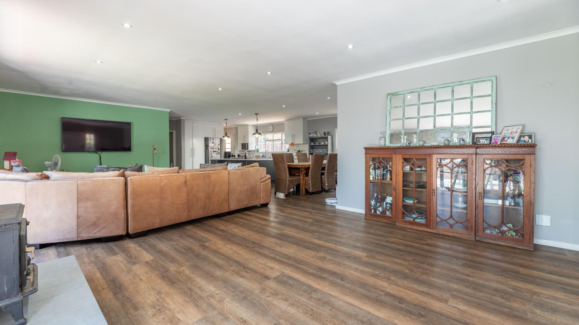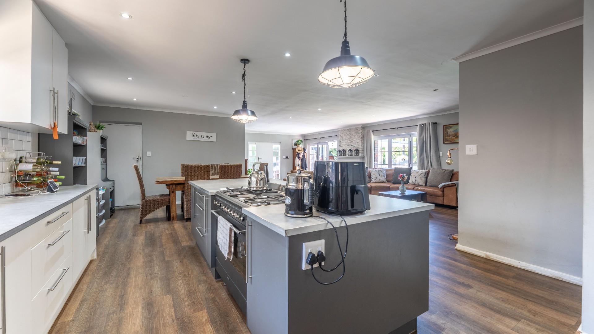 The home features a spacious lounge with durable vinyl flooring that flows into a modern open-plan kitchen. The kitchen is equipped with a premium SMEG gas hob, electric oven, and a separate scullery to manage household clutter.