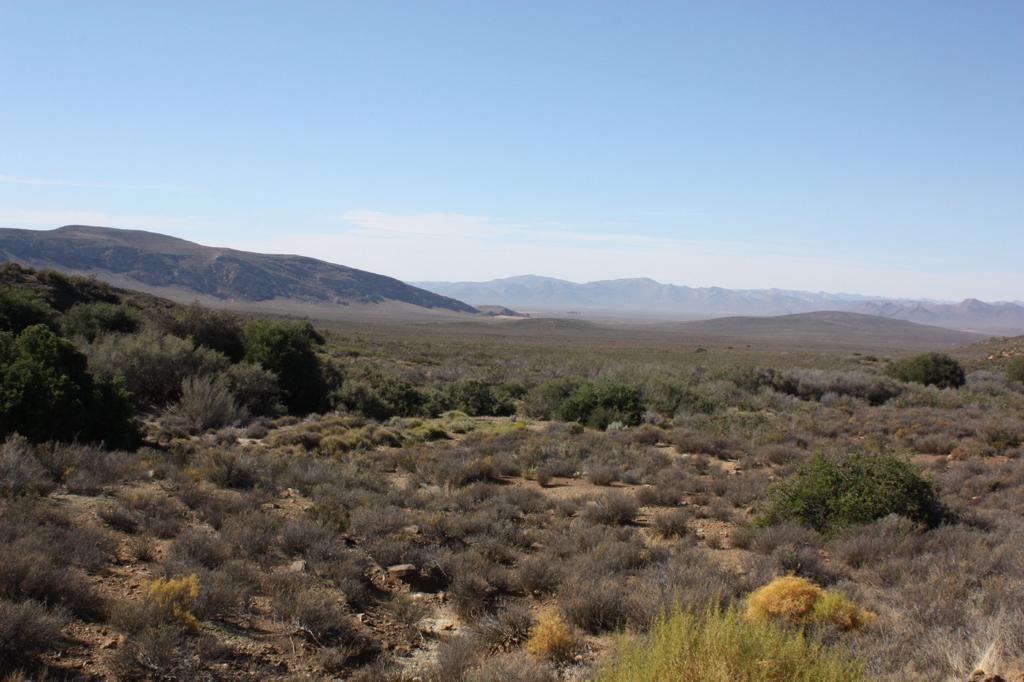 Tipiese karooveld met kleinwild wat vry rondloop. Daar kan met kleinvee op die eiendom geboer word.
