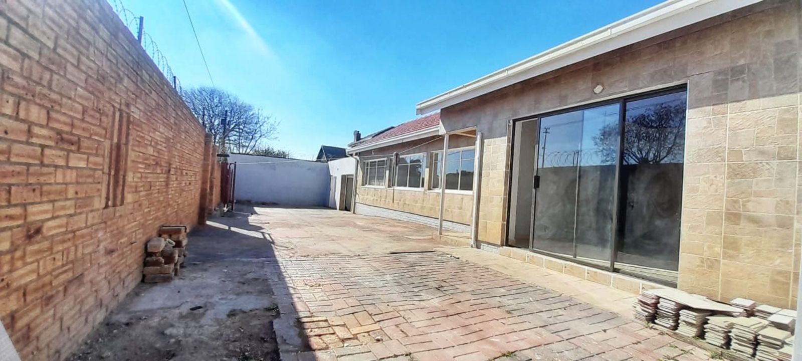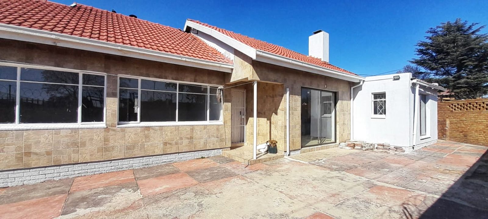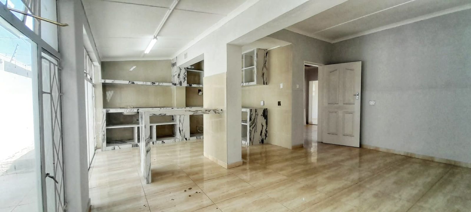 The home boasts a stylish kitchen with sleek stone countertops, four versatile living areas, and a cozy fireplace—perfect for family gatherings or entertaining guests. Ceramic tiles are laid throughout the entire house, offering a clean, contemporary look.