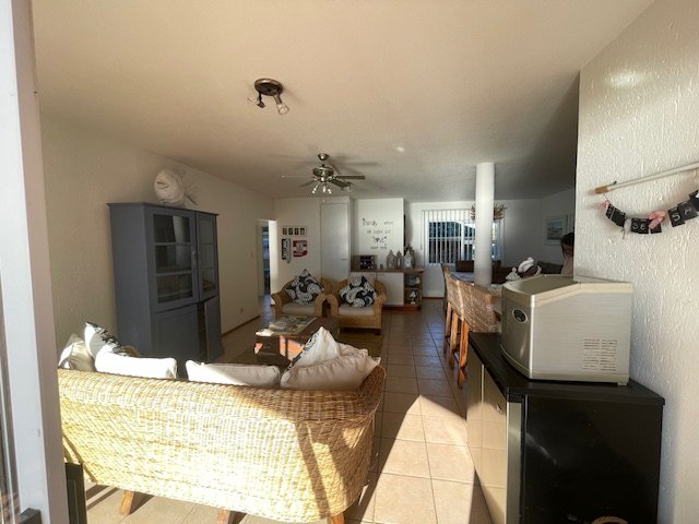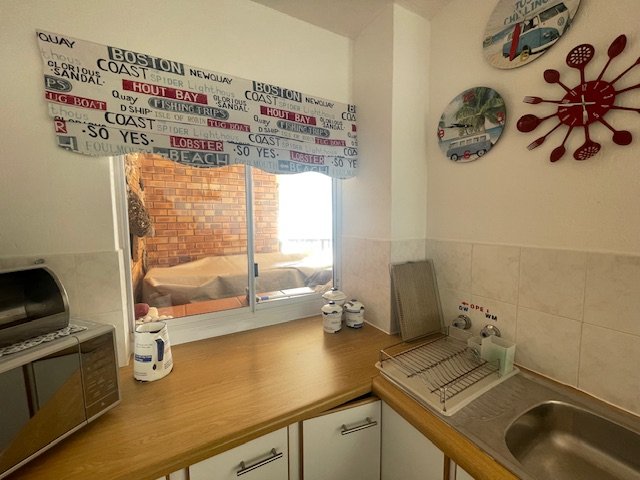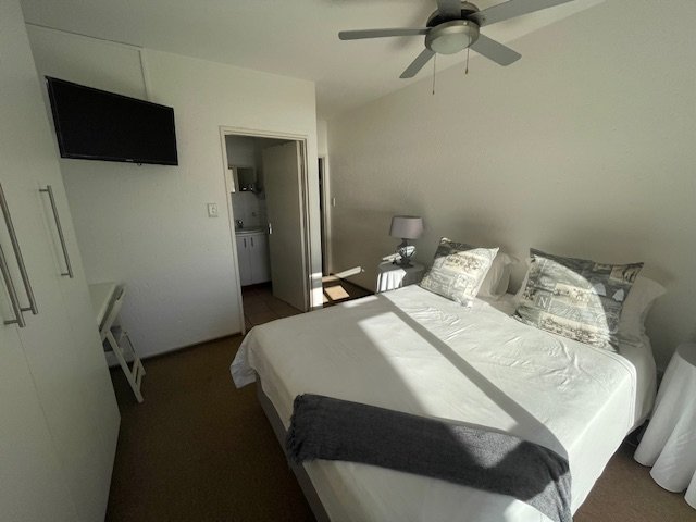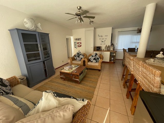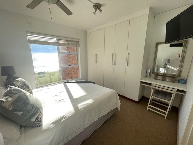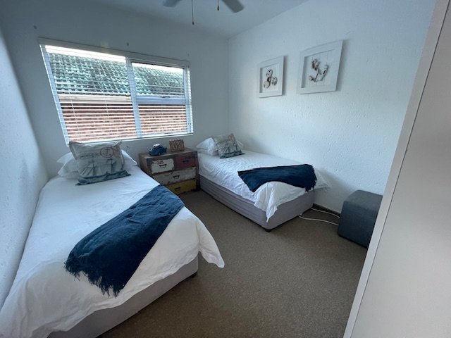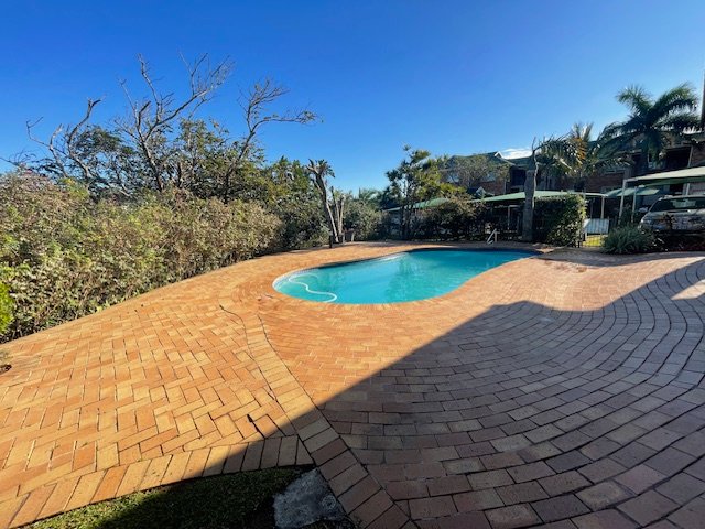 This unit is sold with an exclusive-use under-shade cloth parking bay, providing convenient and secure vehicle storage. The complex is exceptionally well maintained, offering manicured gardens, a sparkling communal pool, a braai area, and a peaceful atmosphere just 220m from the blue-flag Trafalgar Beach.