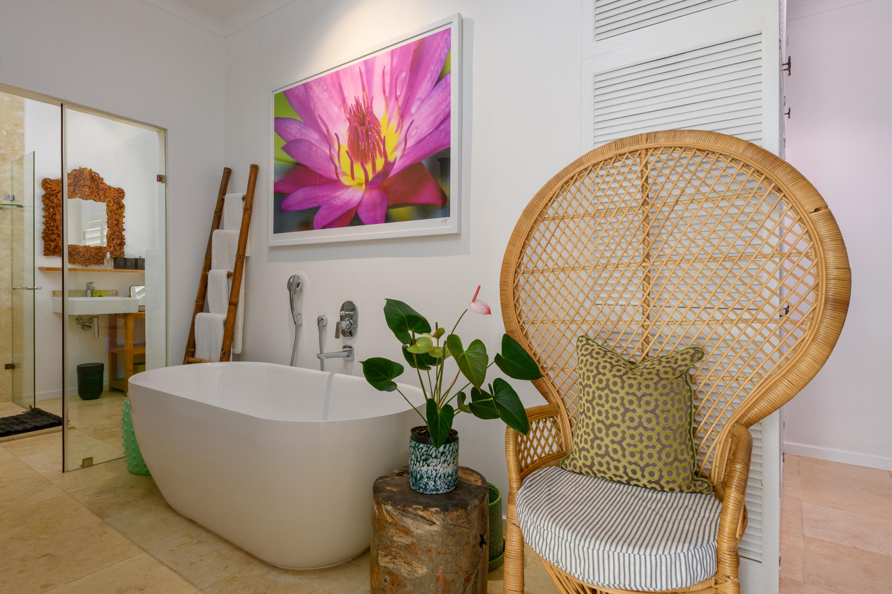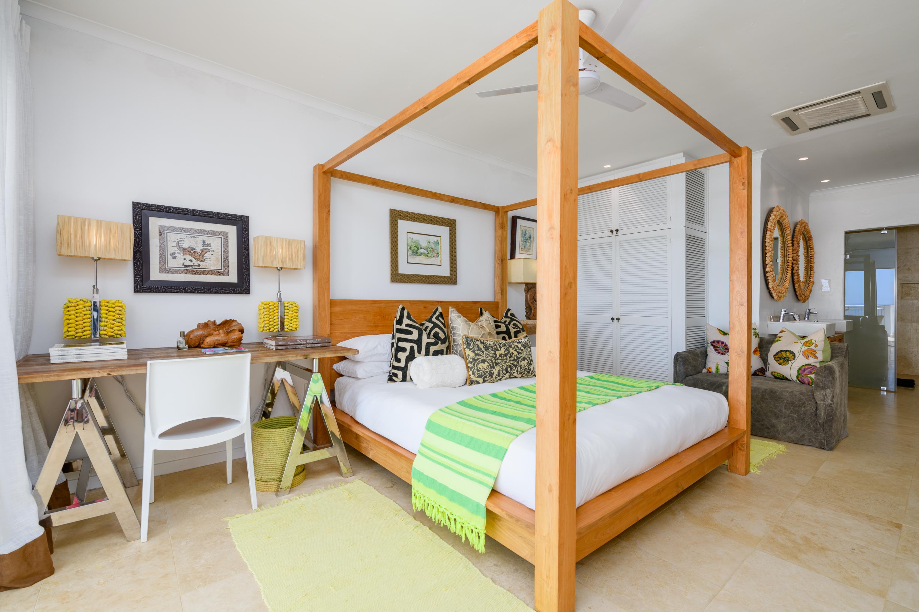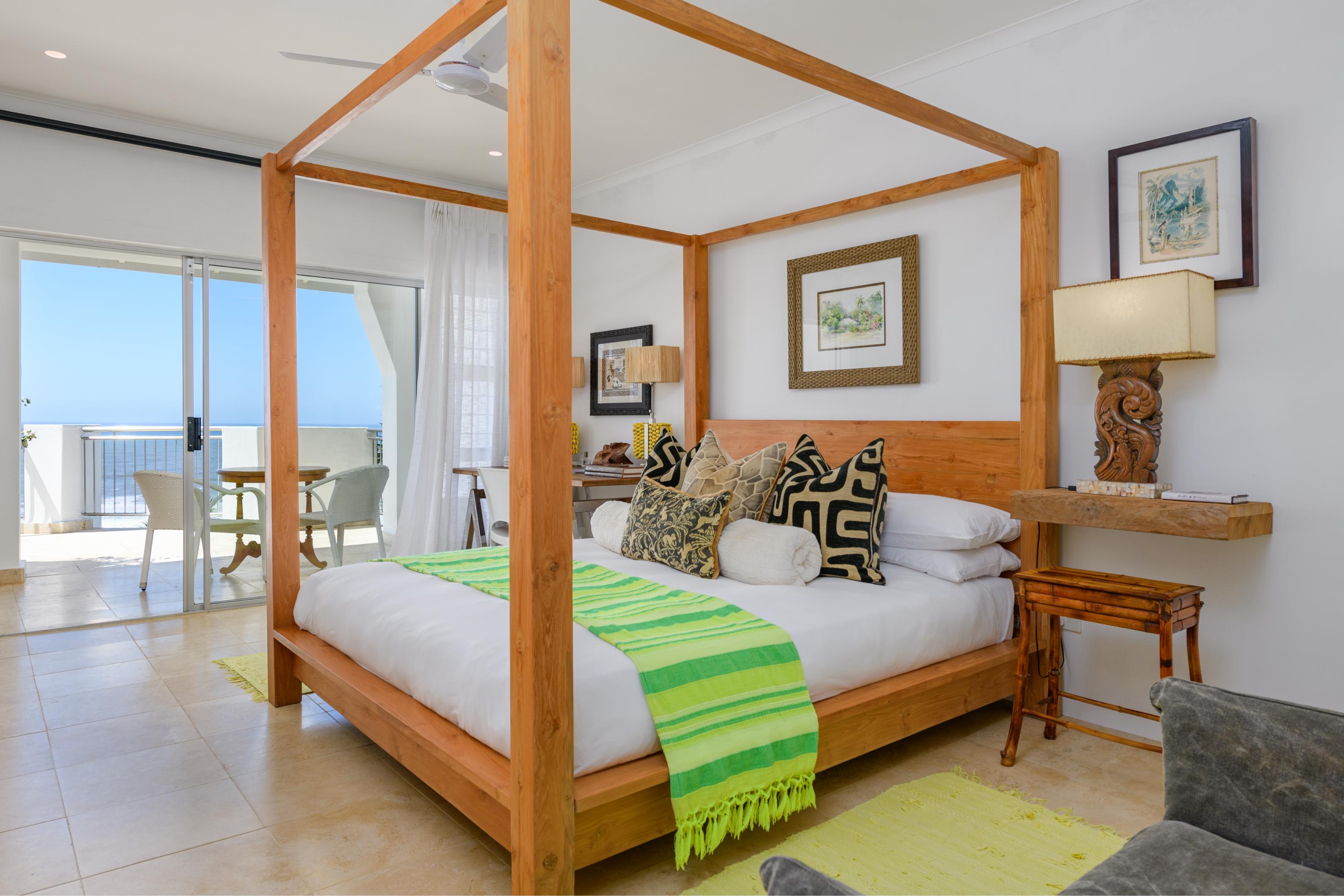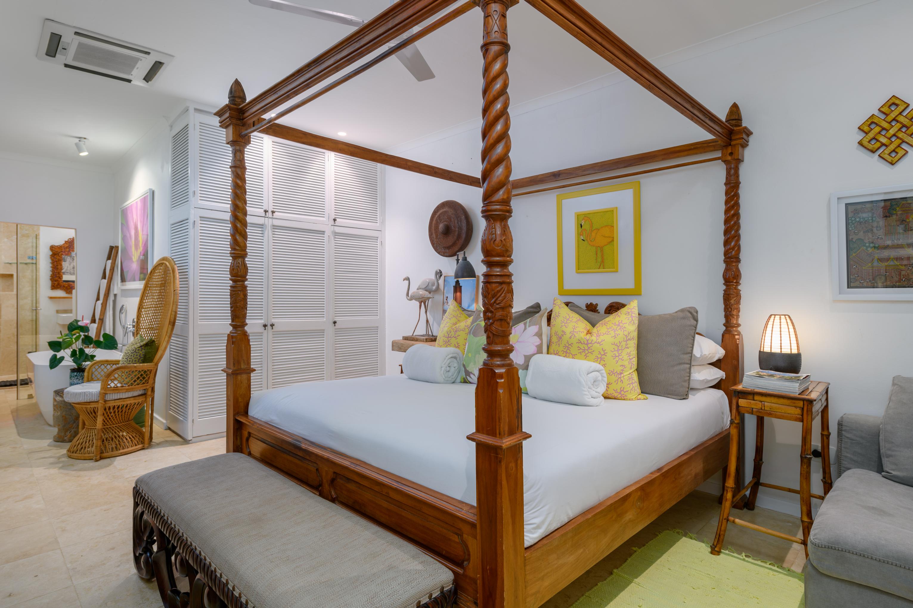 - Eight en-suite air-conditioned bedrooms, all with patios and stunning ocean views. One bedroom features its own kitchen, while another boasts an outdoor courtyard garden with a shower and Javanese Gazebo lounge. Each room is elegantly furnished and appointed.