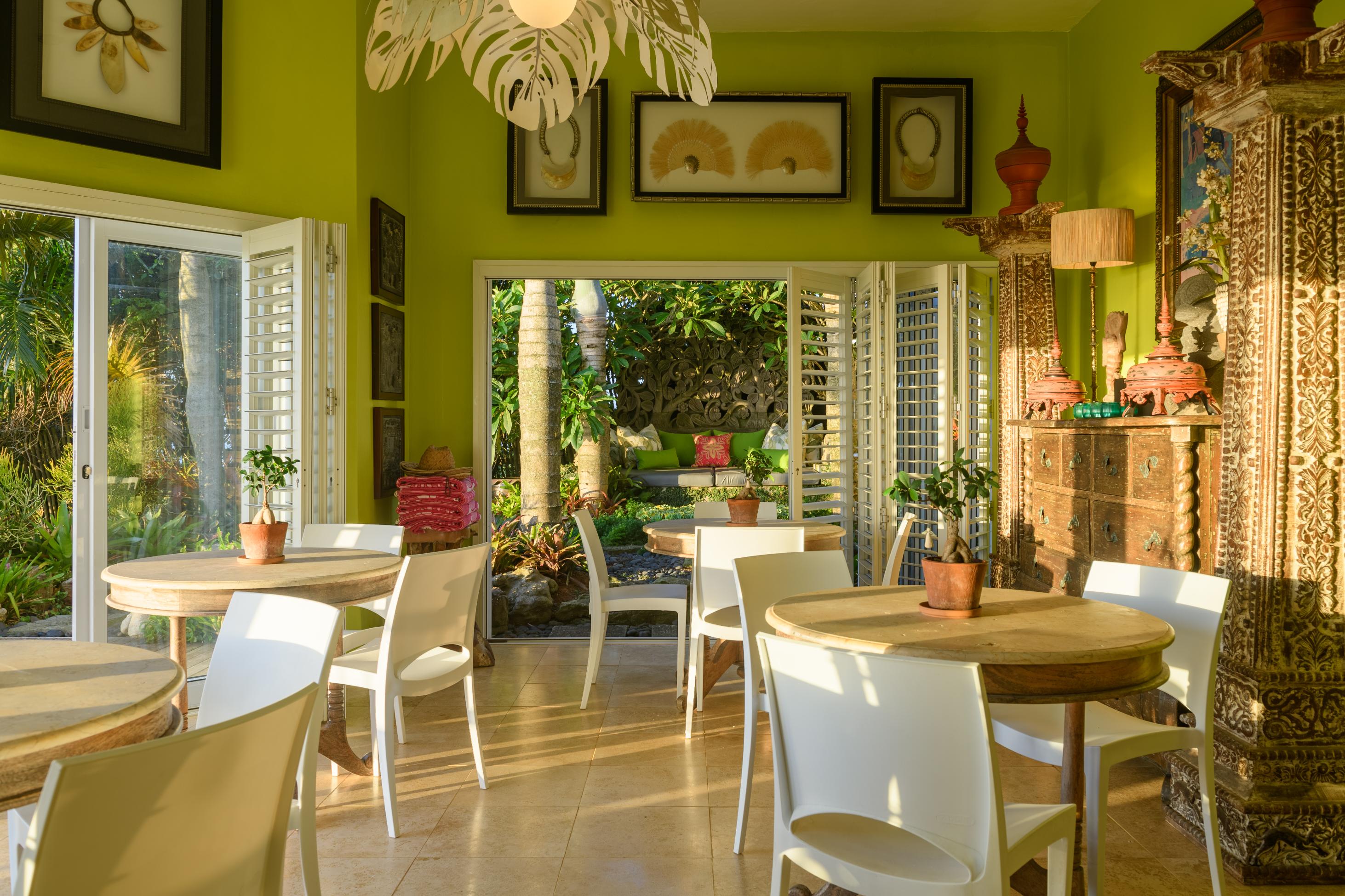 - A spacious breakfast room overlooking the pool.