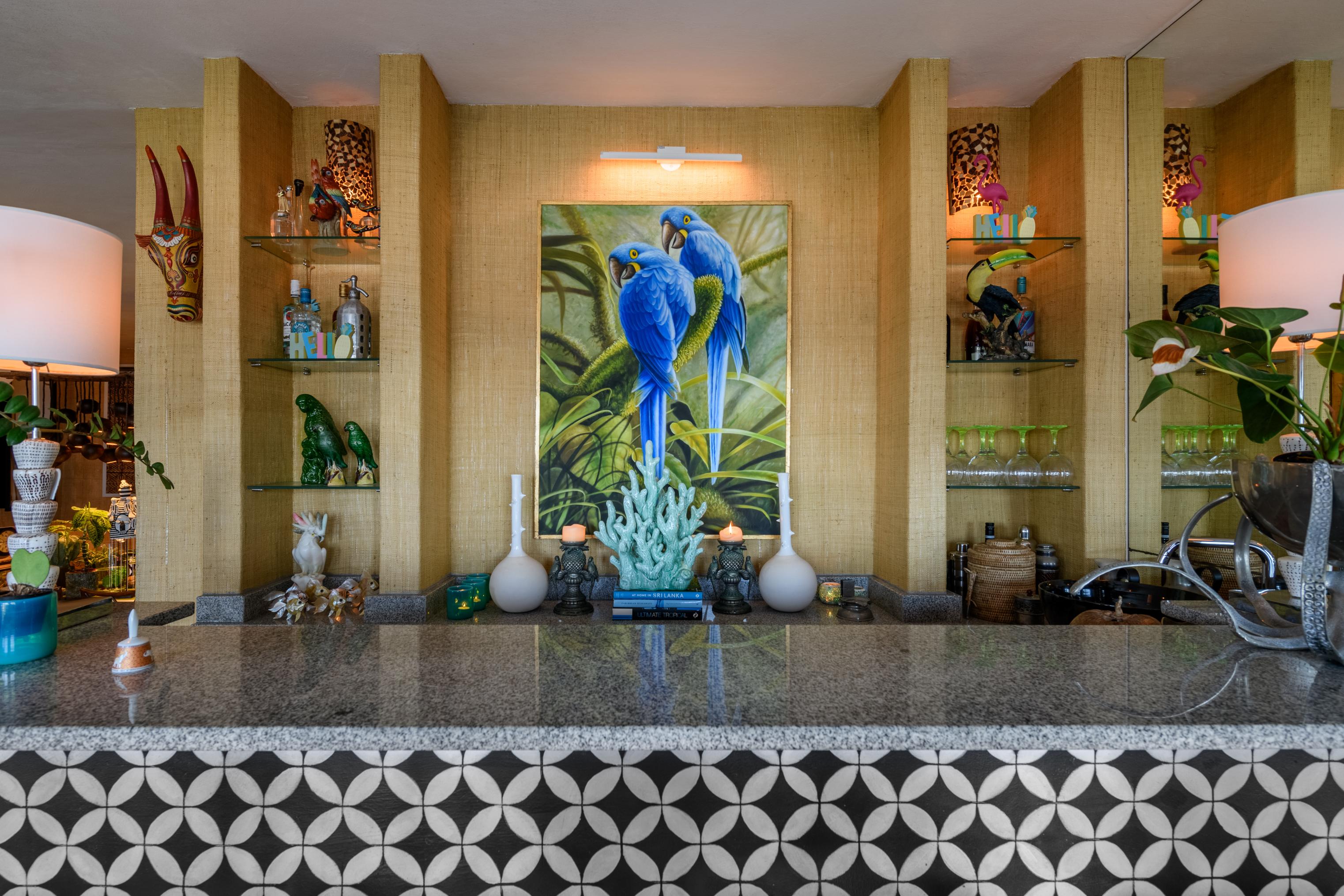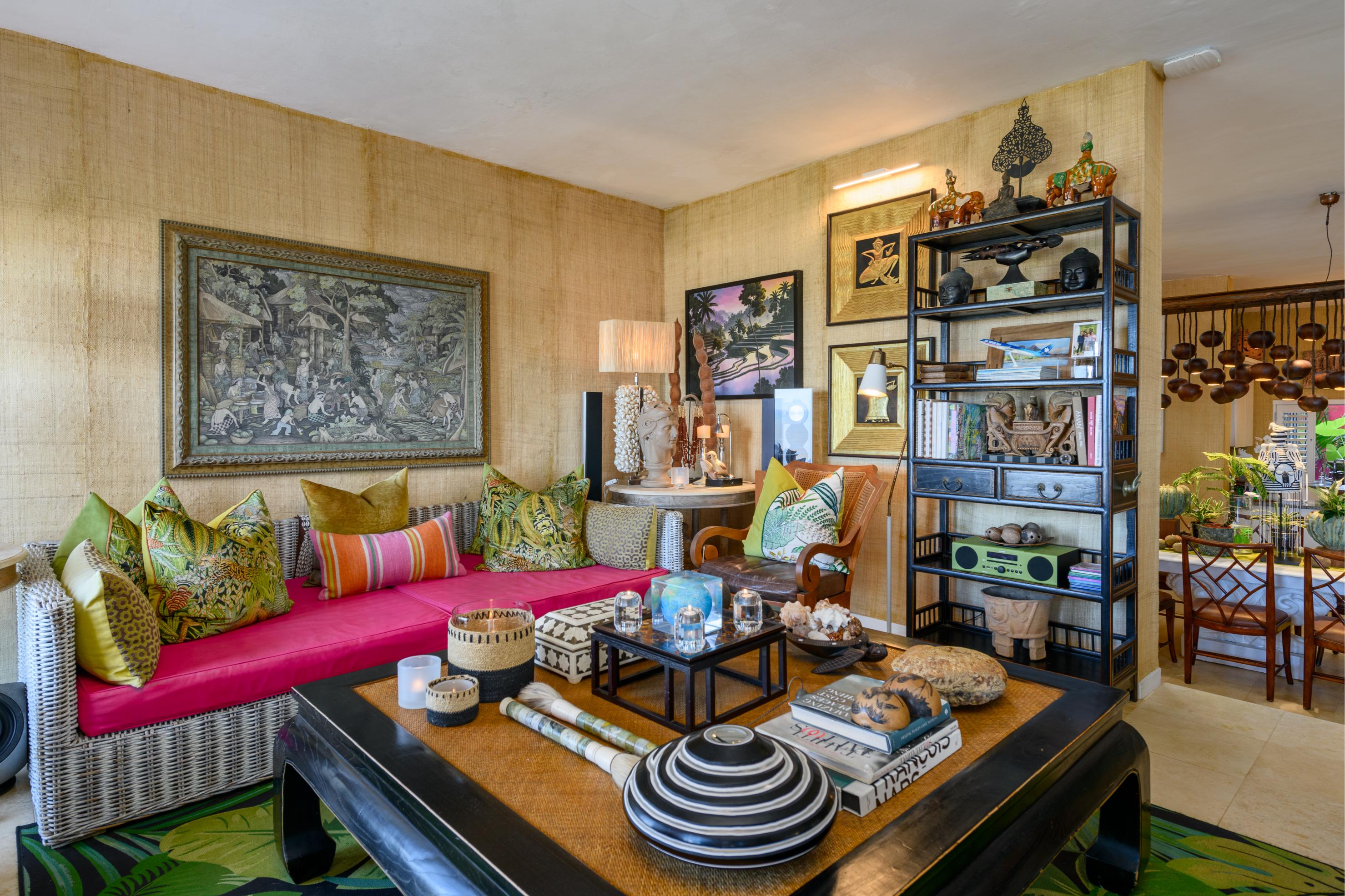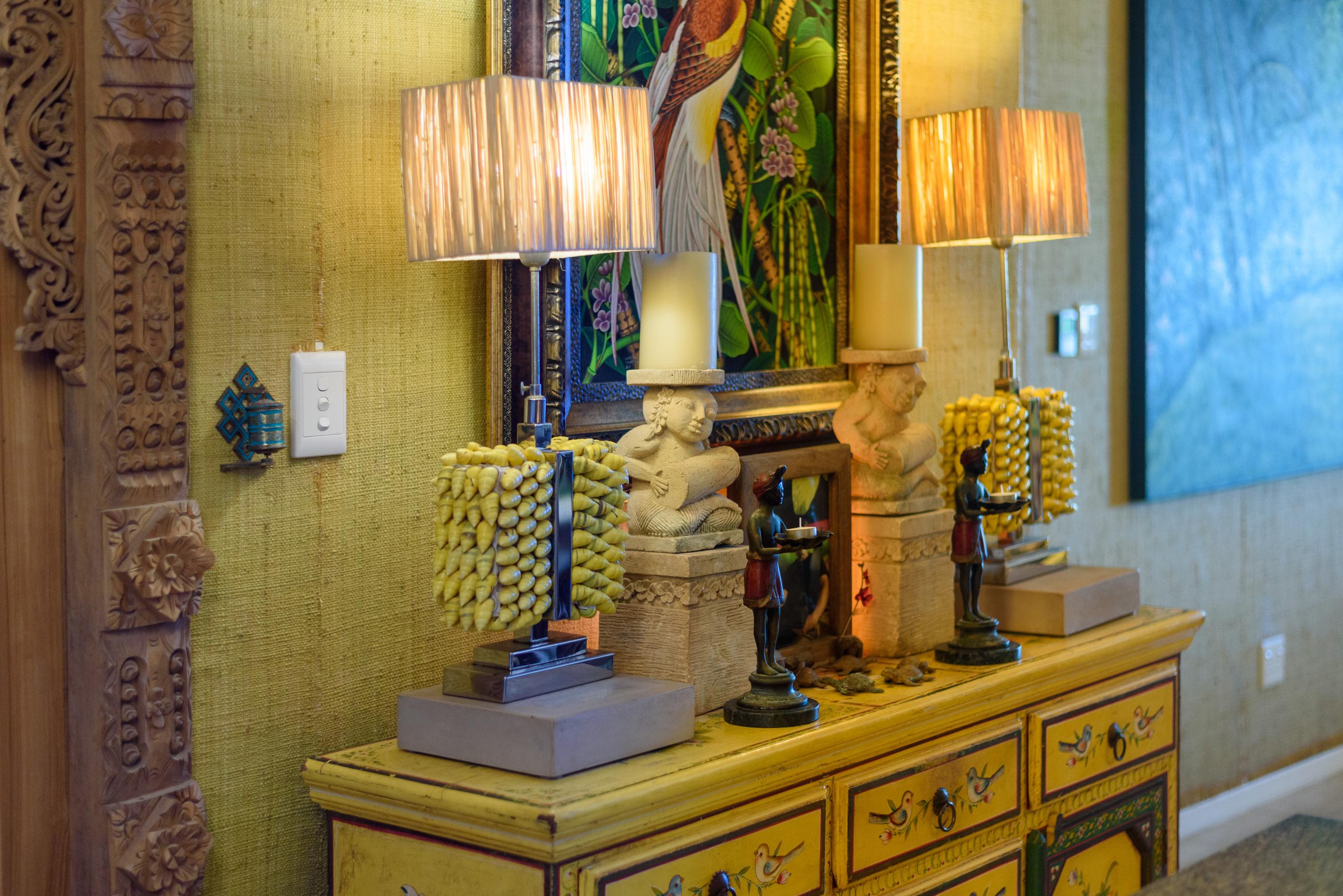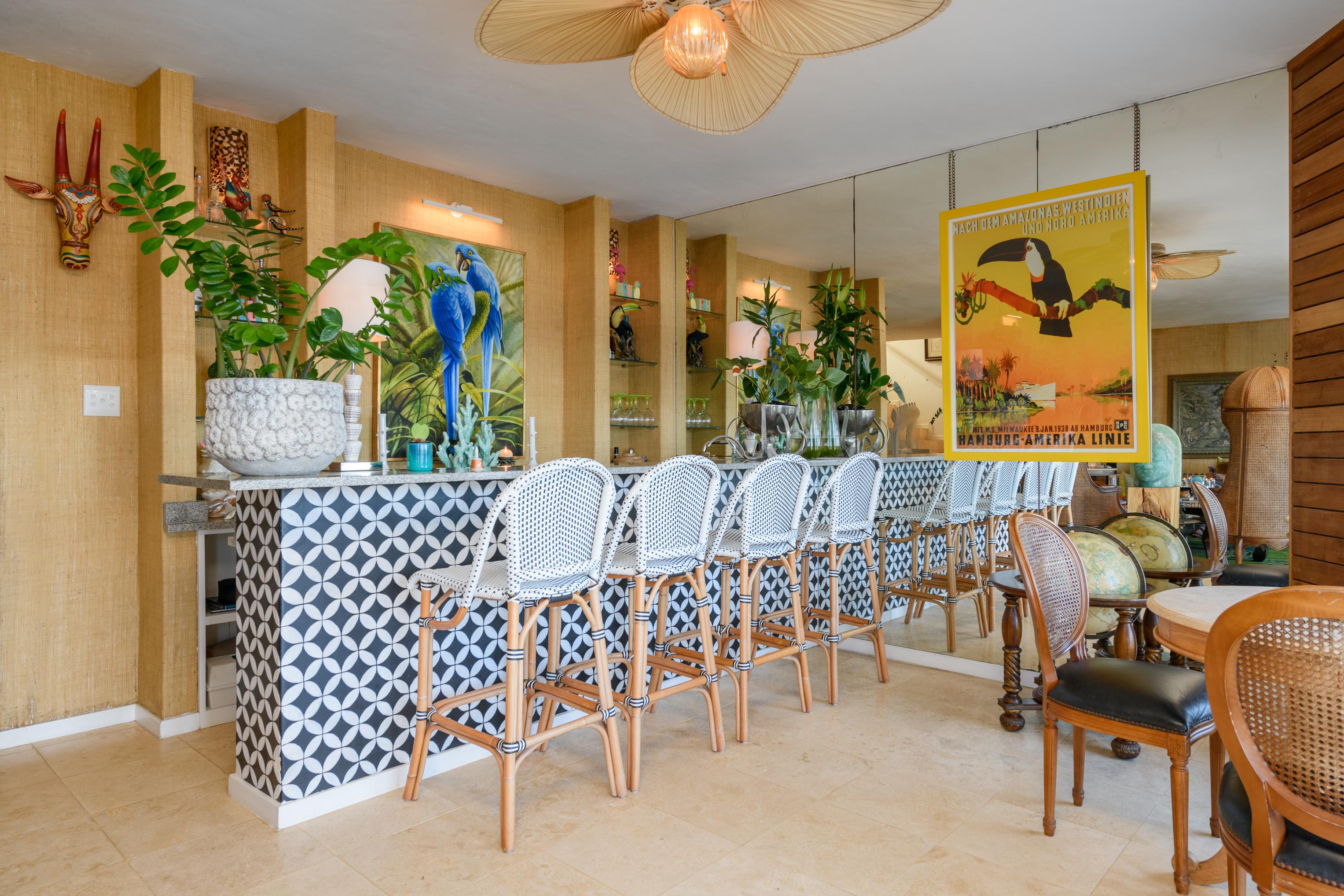This exquisite property features beautifully landscaped gardens and a custom-designed interior adorned with original furnishings, decor, and artwork sourced from spectacular tropical destinations around the globe. You must see this unique tropical retreat in person to fully appreciate the intricate details and dedication that have gone into creating this haven. From the striking hand-carved Javanese doors in the kitchens to the stunning artworks and distinctive pieces from Polynesia, Thailand, and beyond, every view in the home and garden inspires tranquility.