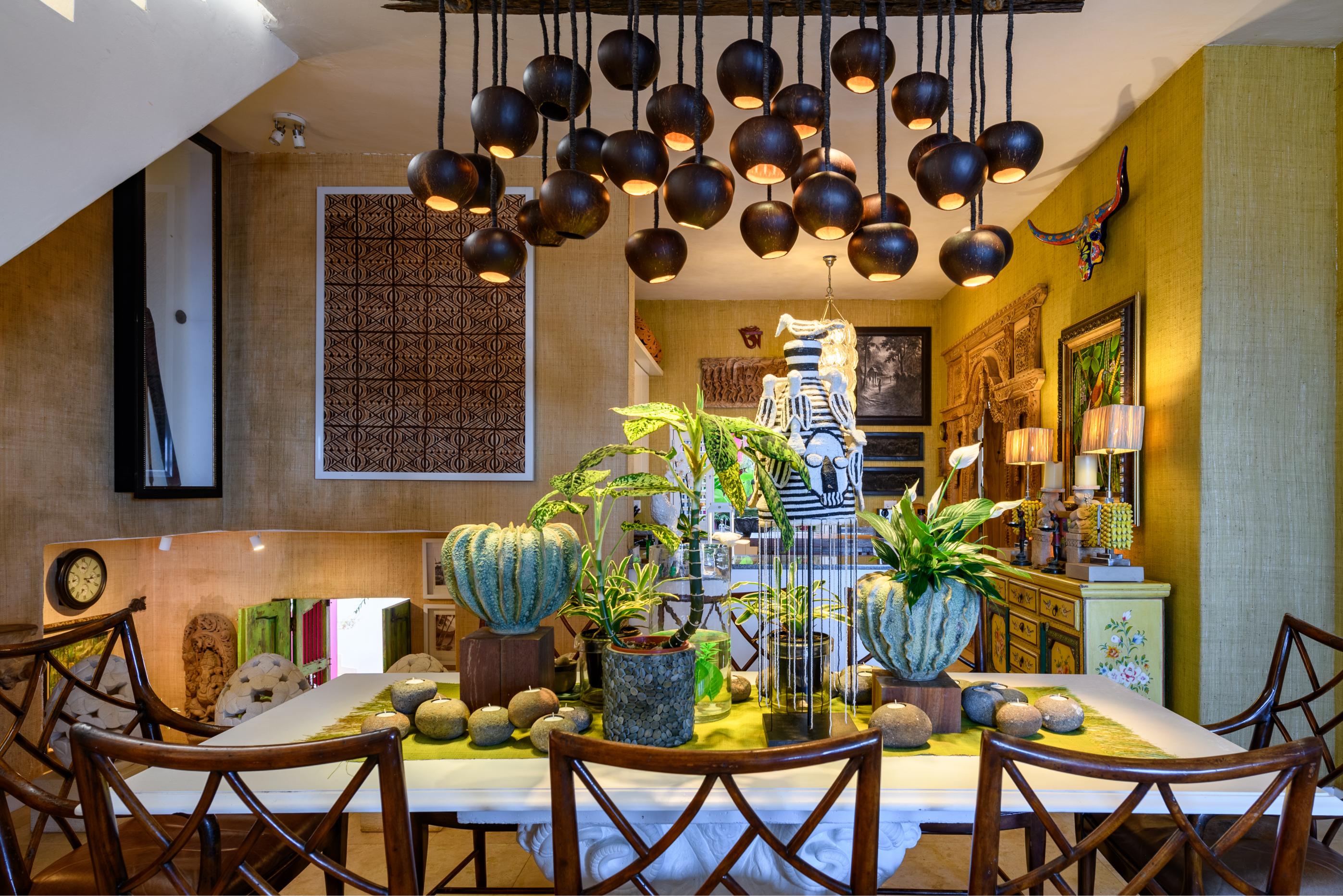 - An eight-seater open-plan dining room adjacent to the main kitchen, highlighted by a spectacular handmade coconut chandelier from Sulawesi, creating the perfect ambiance for fine dining.