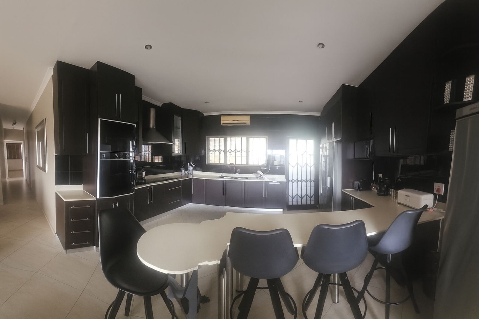 Discover the perfect blend of style and comfort in this immaculate freehold property located in the quiet suburb of Treasure Beach. The home features a seamless open-plan design where the living and dining areas merge effortlessly with a sophisticated kitchen. This culinary space is equipped with sleek dark cabinetry, built-in appliances, and a breakfast nook that is ideal for casual family meals. Tiled flooring throughout the living areas enhances the sense of space and reflects the natural light to create a bright and welcoming atmosphere.