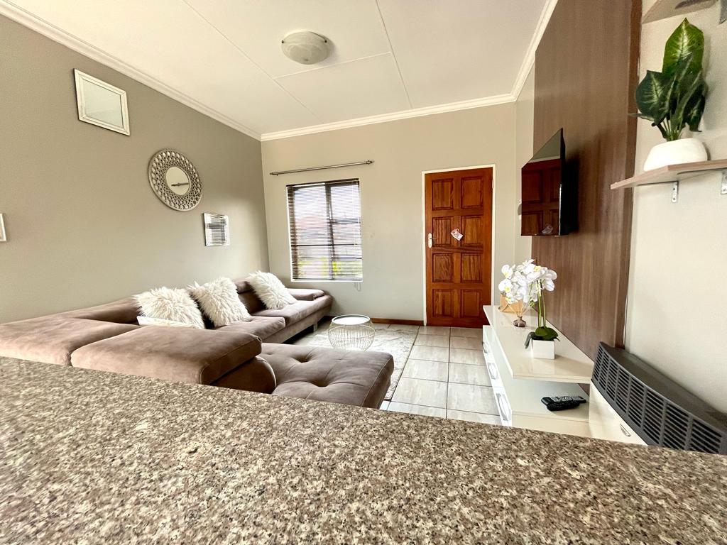 Nestled within a meticulously maintained complex, this immaculate townhouse offers an ideal residence in an environment unaffected by power disruptions. The residence boasts a seamless open-plan design, featuring a contemporary kitchen adorned with sleek melamine cupboards, granite countertops, and equipped with a gas stove and oven-embracing both style and functionality.