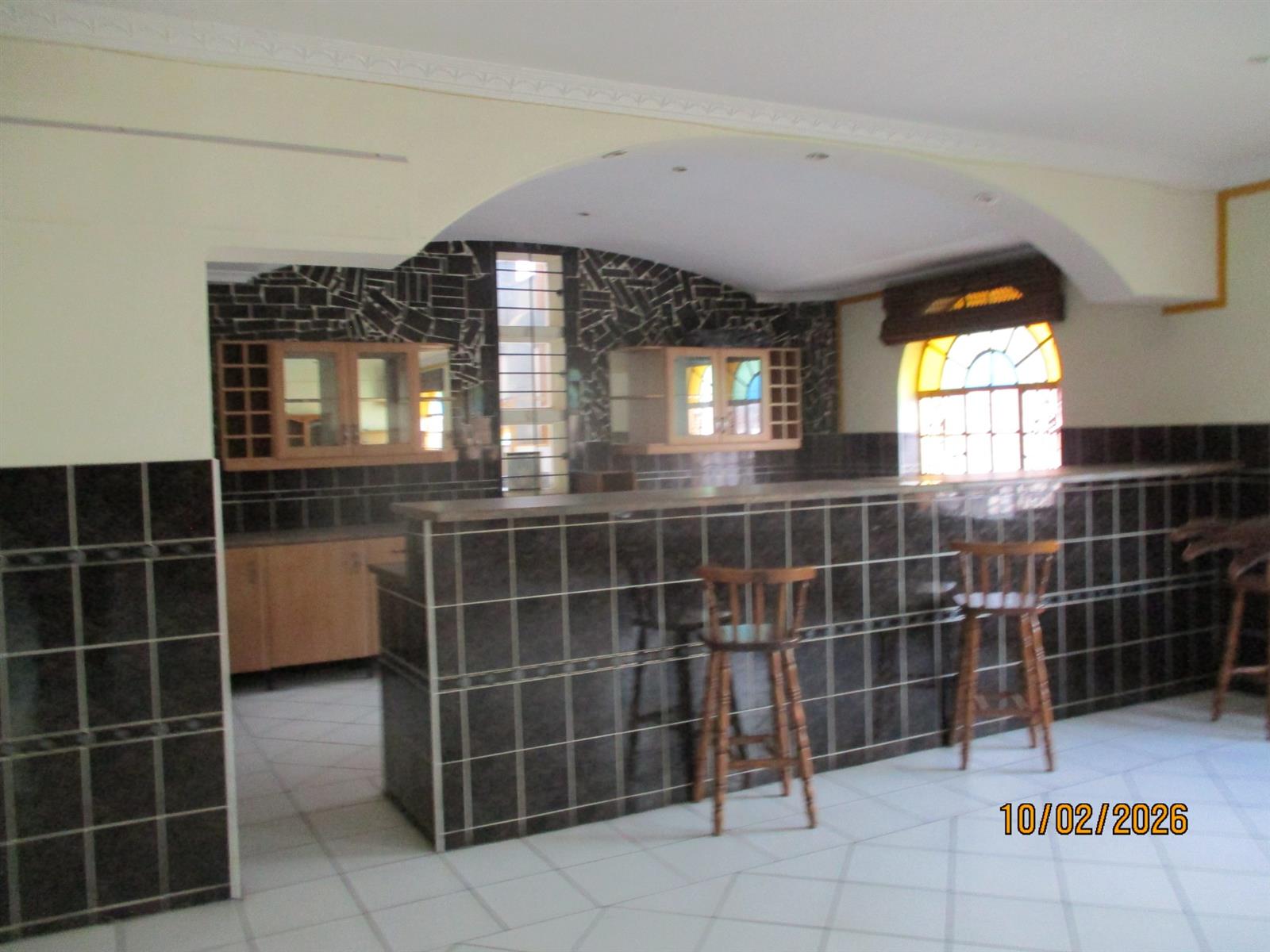 Security and comfort are paramount in this property, featuring air conditioning and an advanced alarm system for peace of mind. The building is totally fenced and walled, with additional security features including burglar bars, security gates, and a safe for your valuables. The property also has steel windows and is adorned with tiled floors throughout, enhancing its modern appeal.