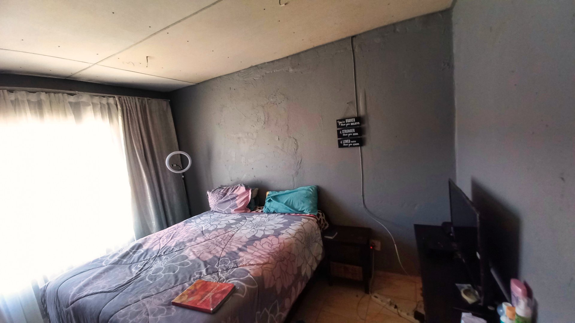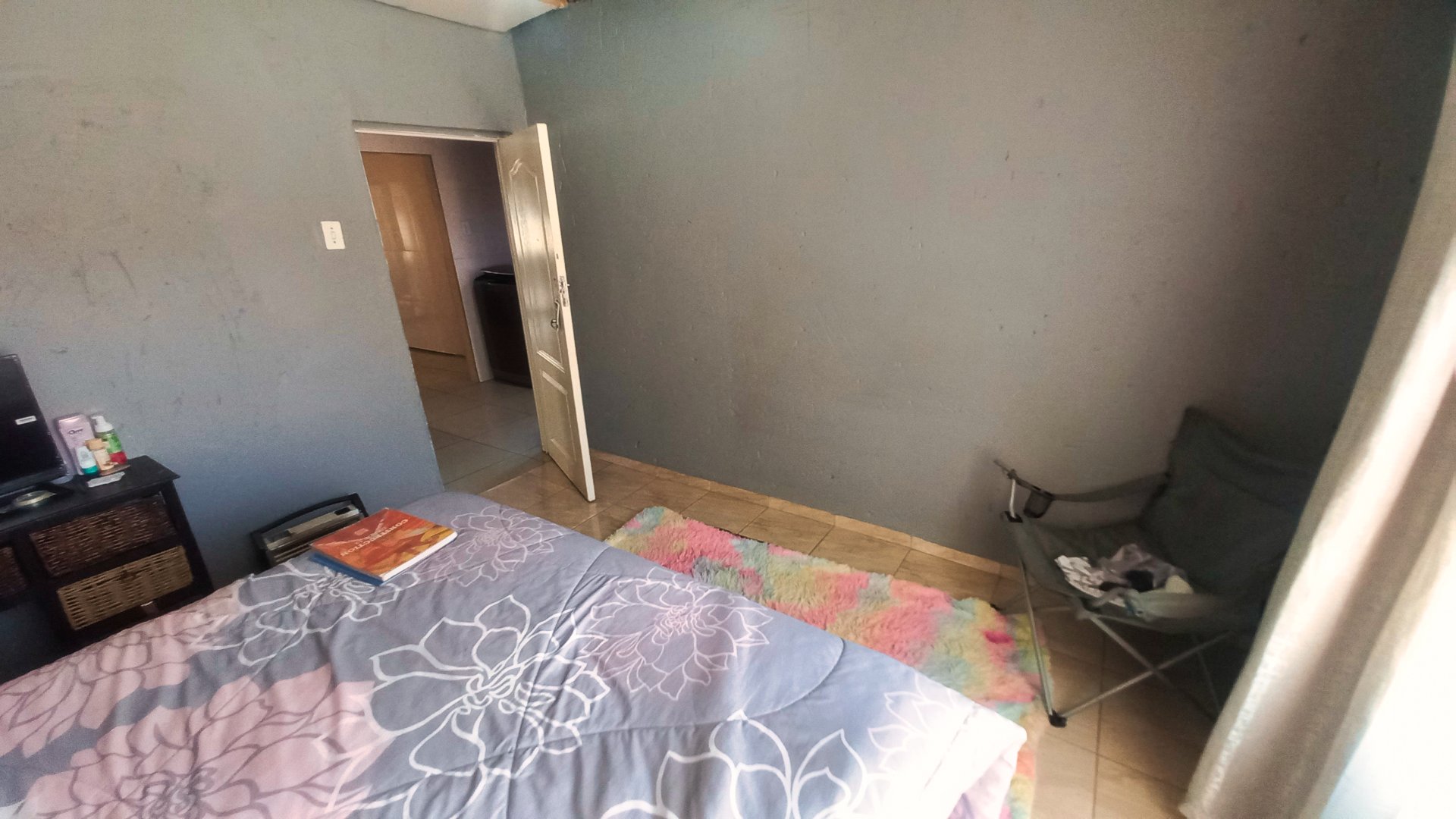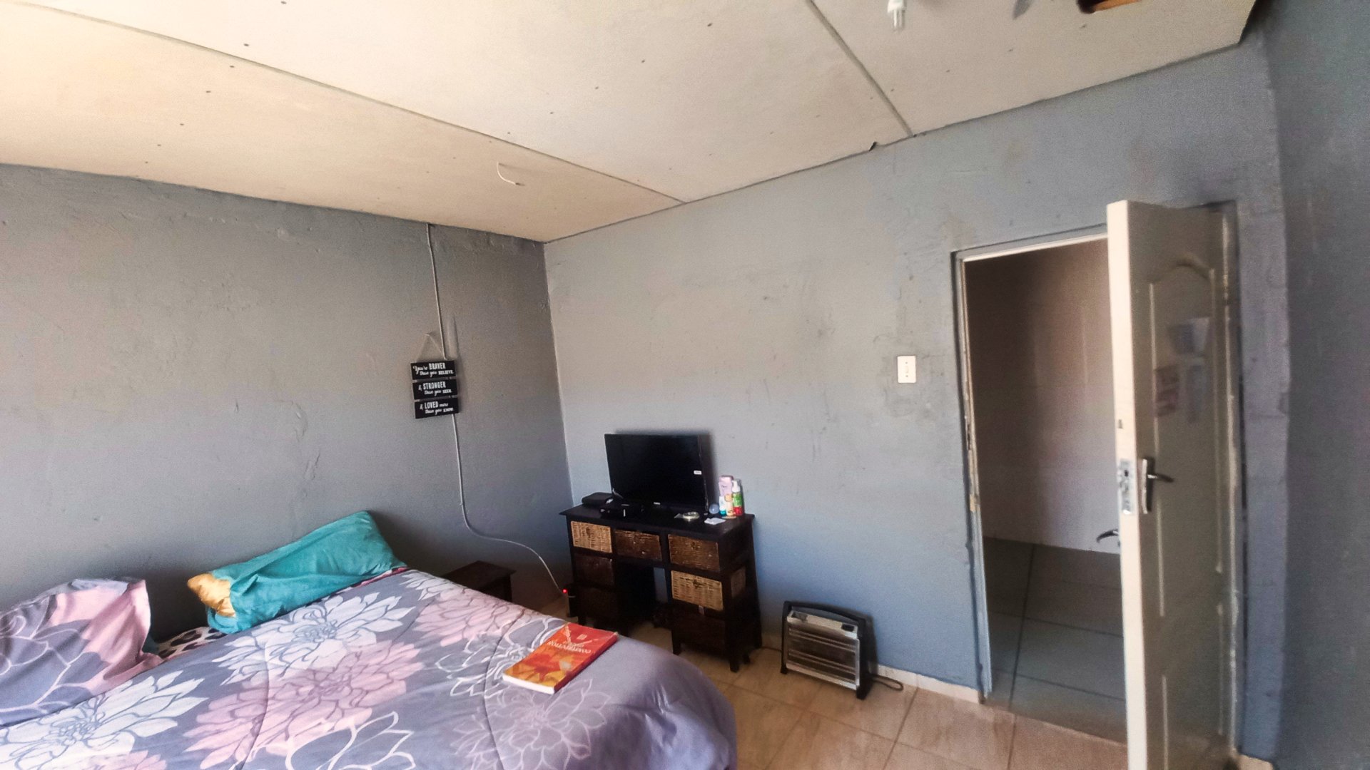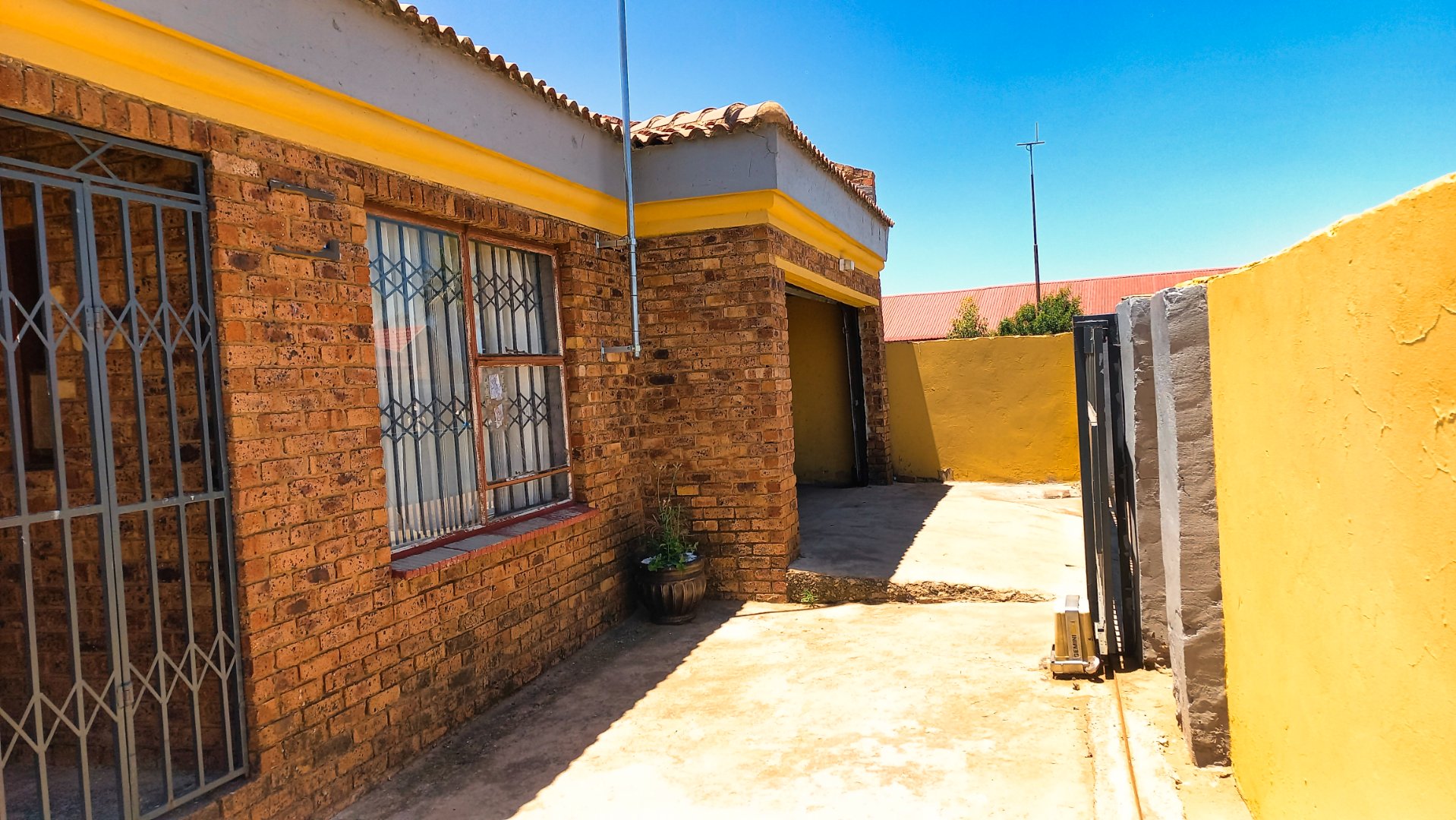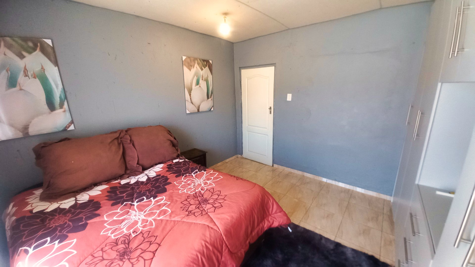 Two of the three bedrooms are equipped with built-in cupboards, maximizing storage space. A well-appointed bathroom serves the household. For added security, the entire property is fully burglar barred, and all windows are protected by Trellidor guards. The perimeter is fully fenced, providing a safe environment for children and pets.