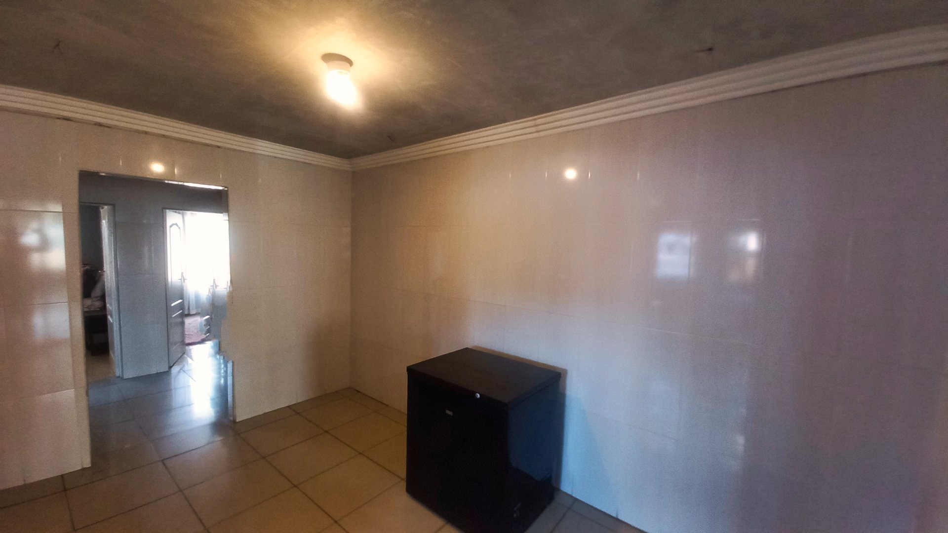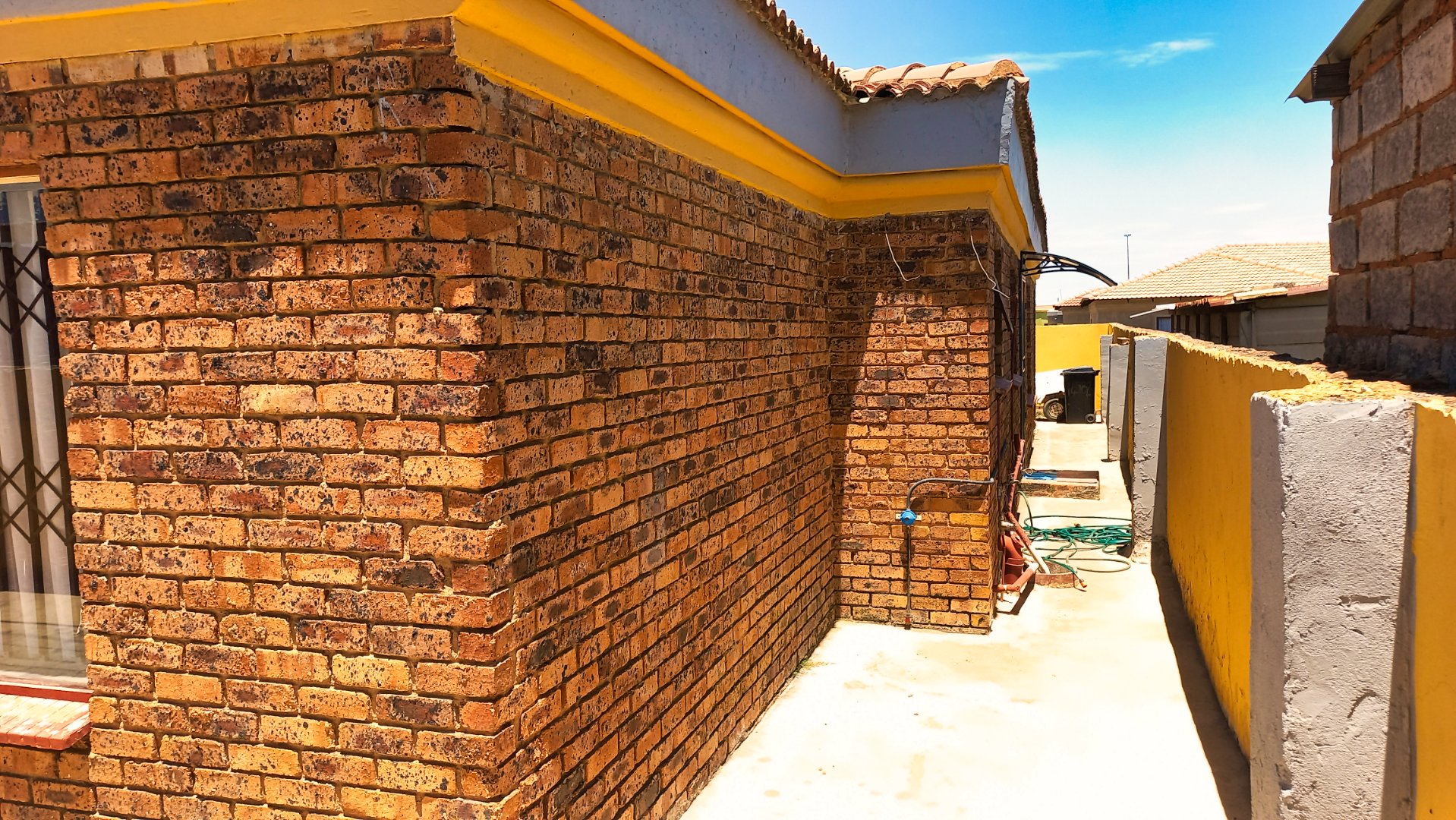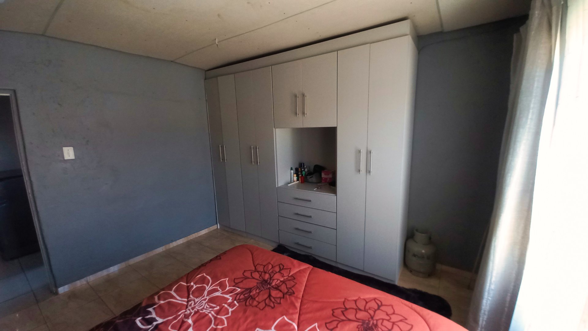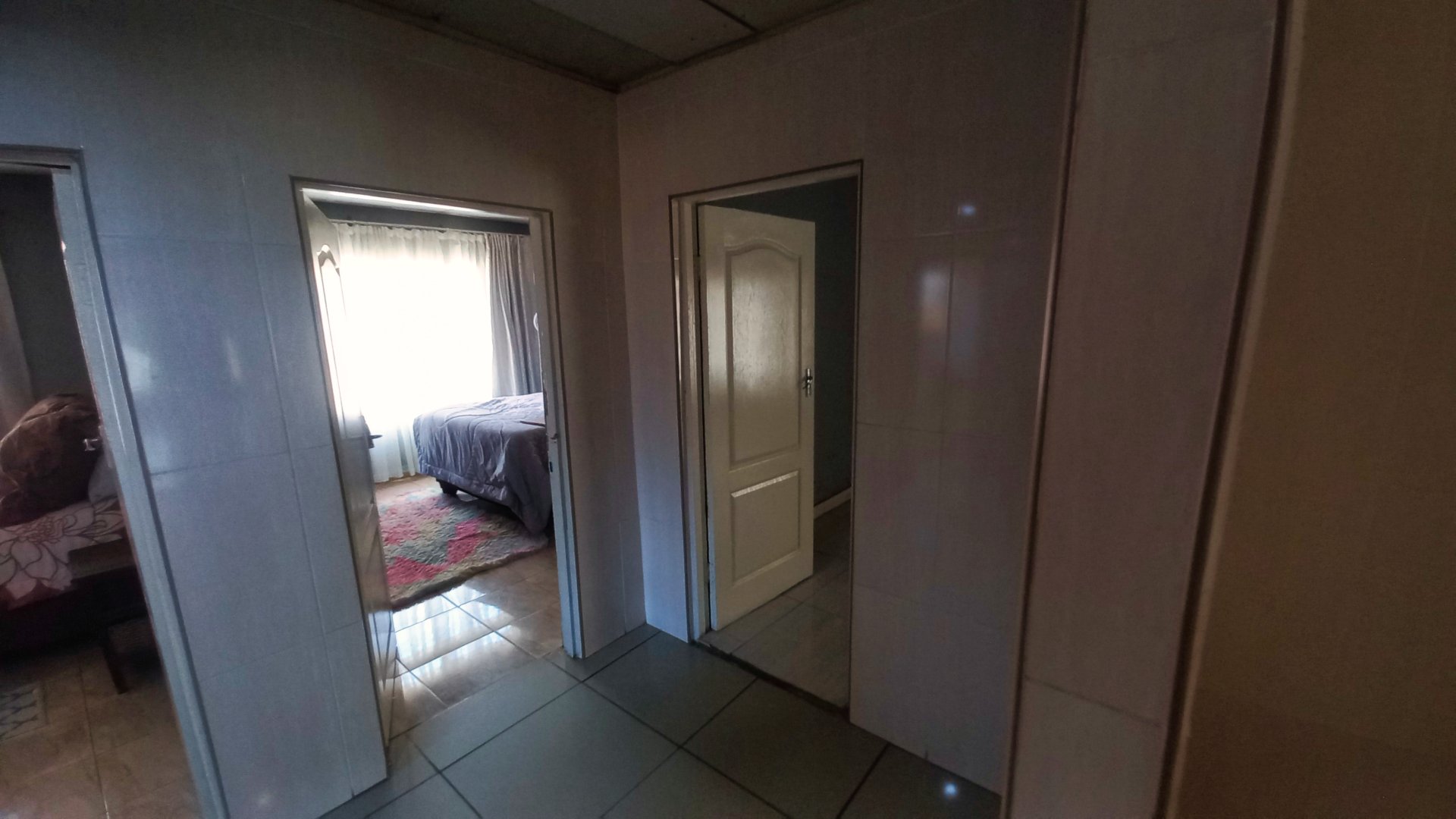 Two of the three bedrooms are equipped with built-in cupboards, maximizing storage space. A well-appointed bathroom serves the household. For added security, the entire property is fully burglar barred, and all windows are protected by Trellidor guards. The perimeter is fully fenced, providing a safe environment for children and pets.