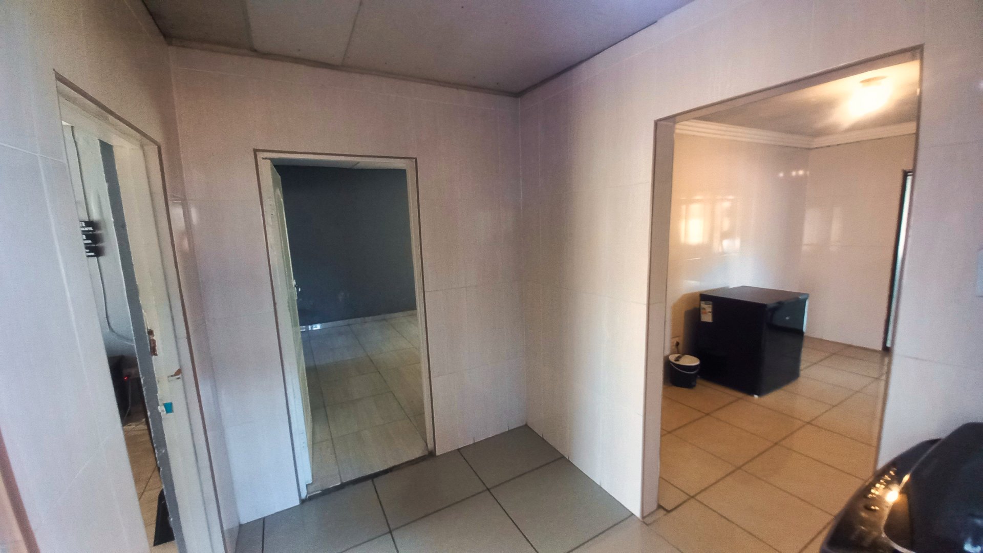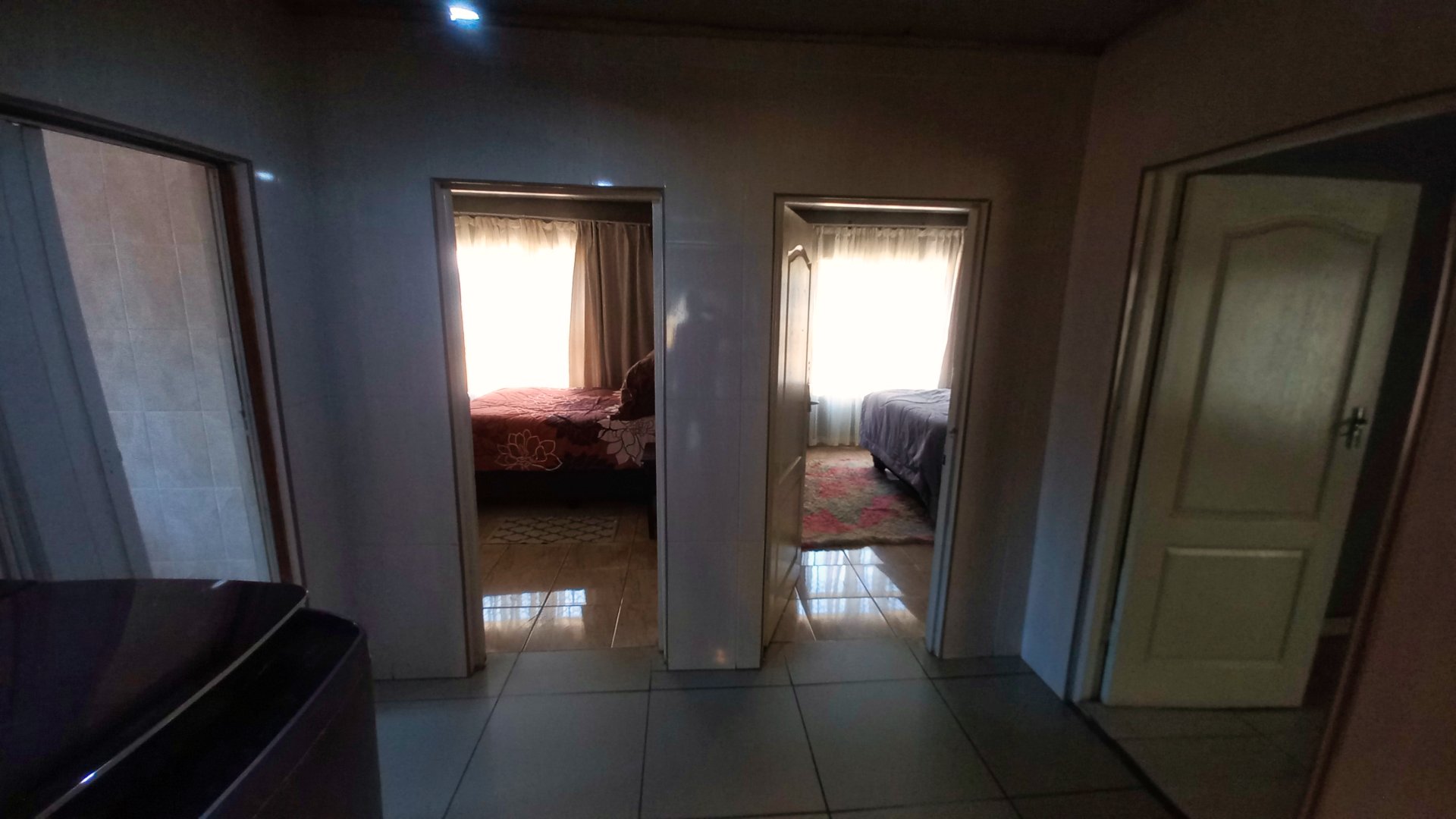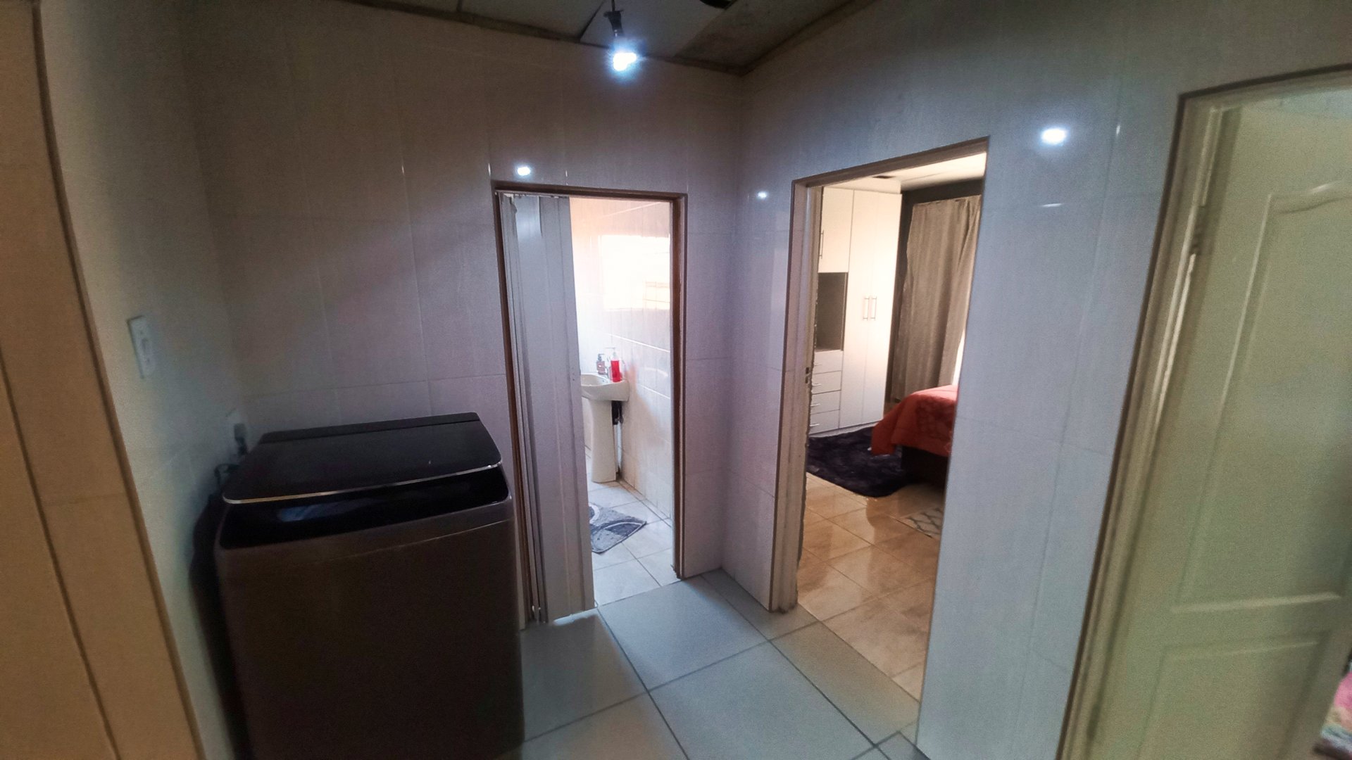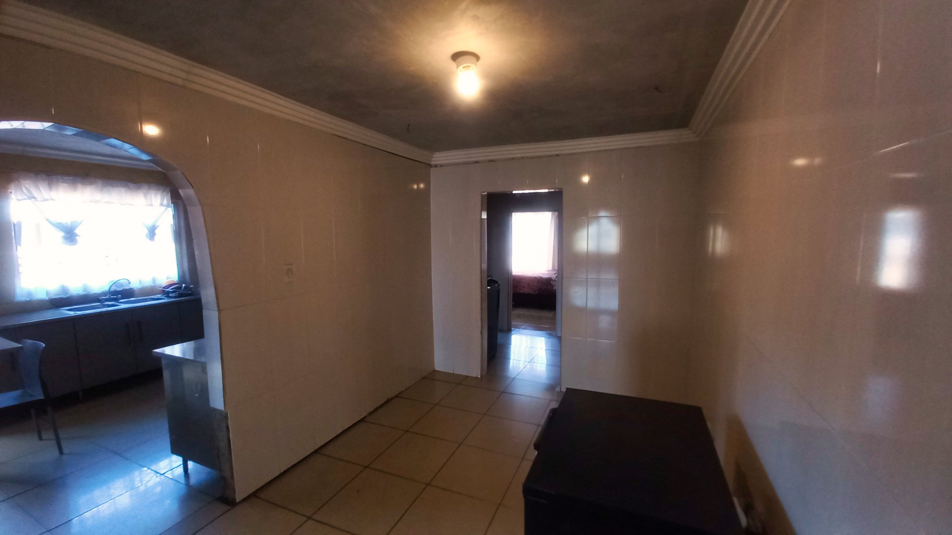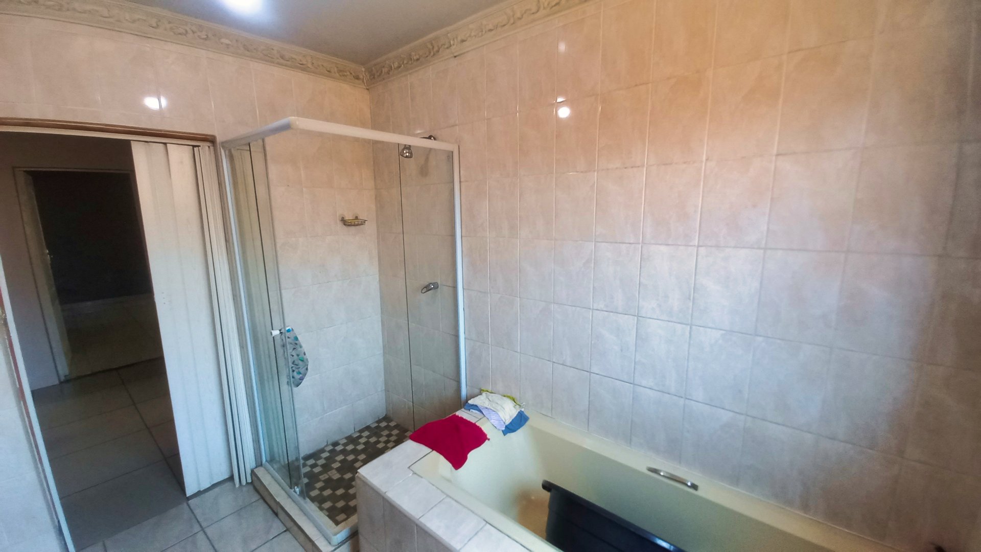 Two of the three bedrooms are equipped with built-in cupboards, maximizing storage space. A well-appointed bathroom serves the household. For added security, the entire property is fully burglar barred, and all windows are protected by Trellidor guards. The perimeter is fully fenced, providing a safe environment for children and pets.