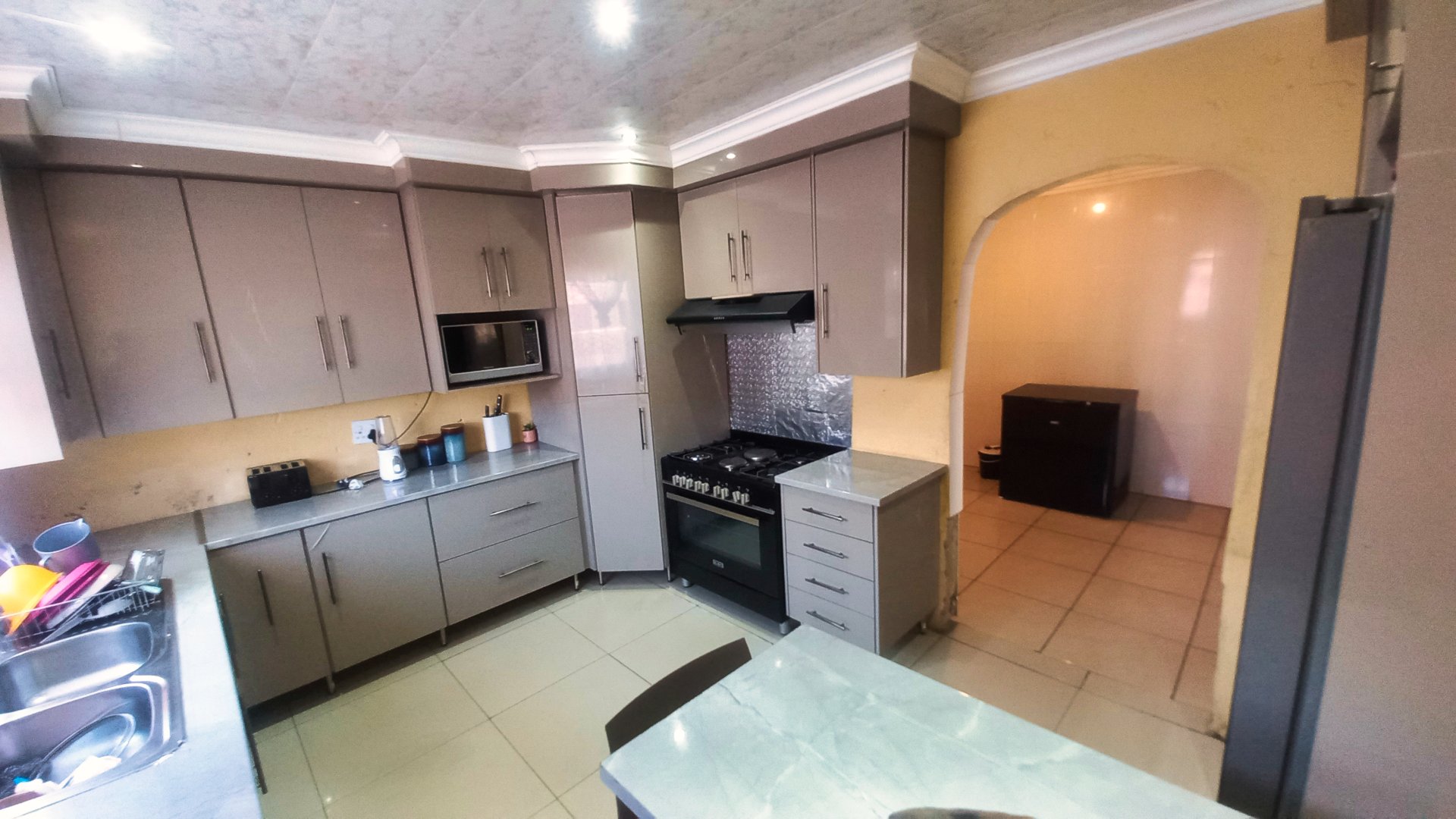 This beautifully maintained 3-bedroom home in Tsakane Ext 5 offers modern living and peace of mind. The heart of the home is a newly fitted kitchen featuring sleek built-in cupboards, a gas stove for efficient cooking, and an additional electric stove for flexibility. The spacious lounge, complete with a sliding door, seamlessly flows into the dining room, creating an ideal space for family gatherings and entertaining.