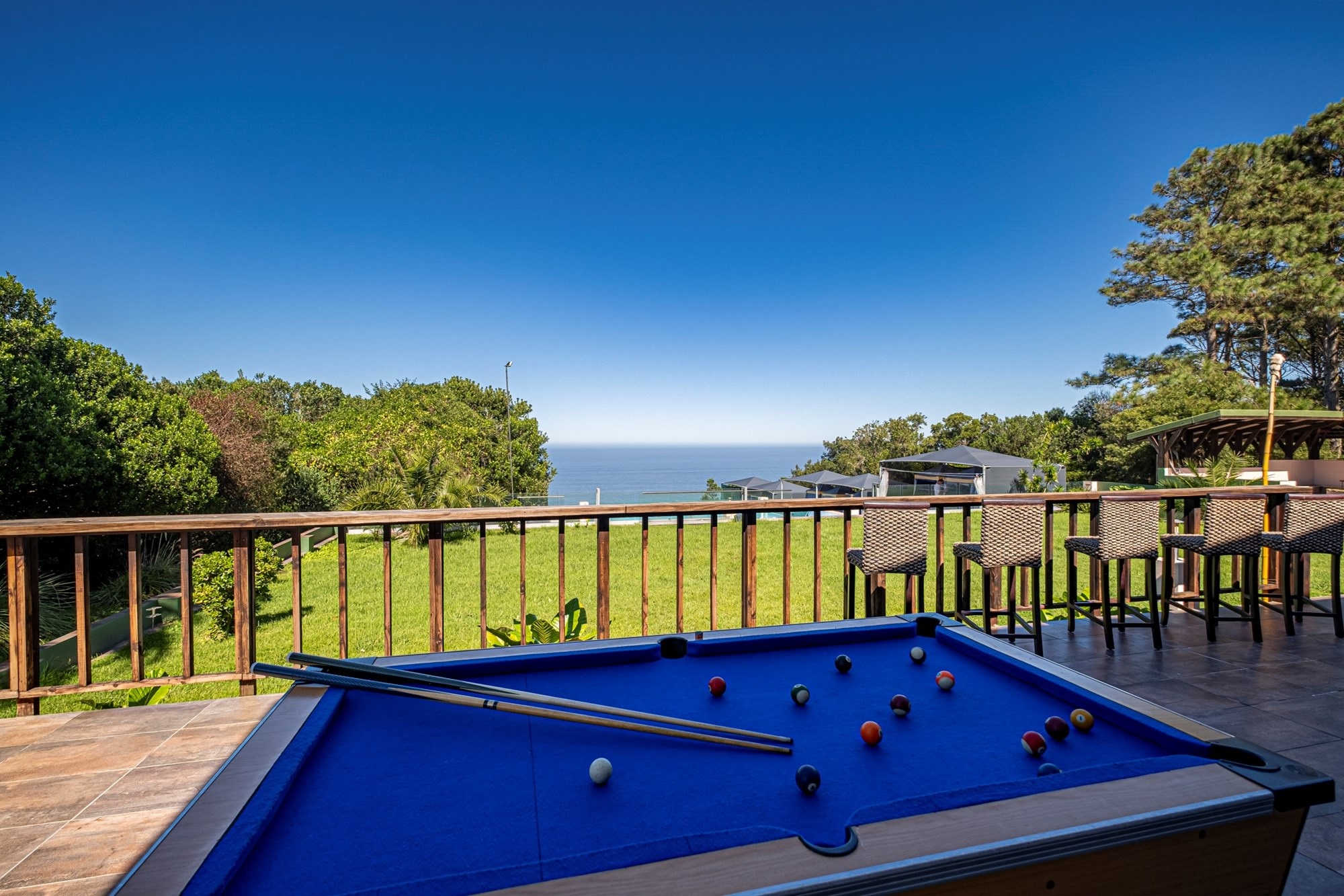At the heart of the estate stands a striking four level lodge with six opulent suites. This architectural statement is gracefully perched on rolling slopes that lead toward the Indian Ocean, offering nearly 180 degrees of uninterrupted sea views. From the golden hues of sunrise to the soft glow of sunset, every moment here is framed by nature’s grandest artistry, with the majestic Tsitsikamma Mountains rising in the distance.