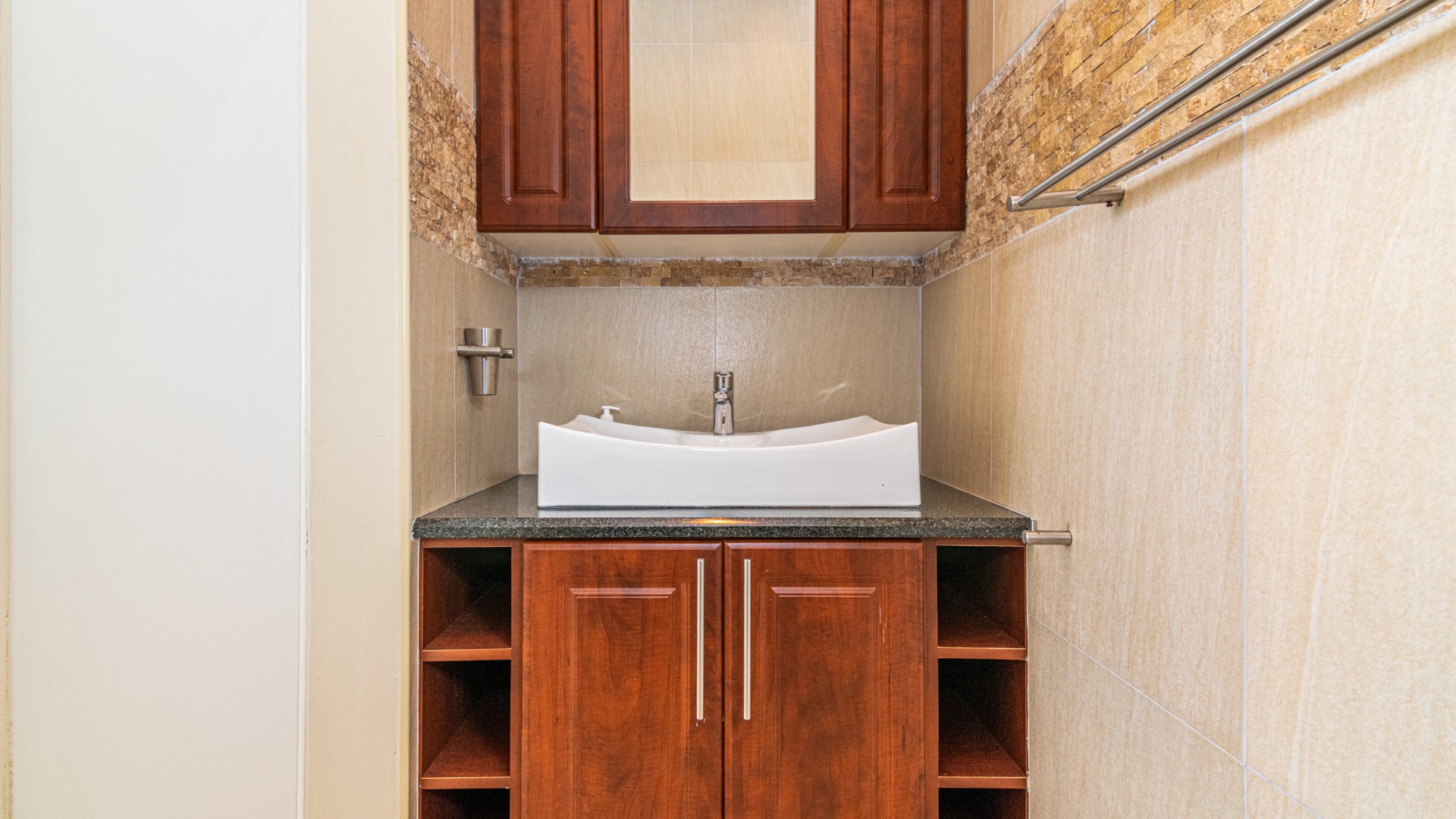 The smaller interleading flatlet has 2 bedrooms, one of which has its own en-suite, its own open plan kitchen and lounge, and separate entry access as well as its own access on to the deck. The en-suite bedroom has a beautiful sea view.