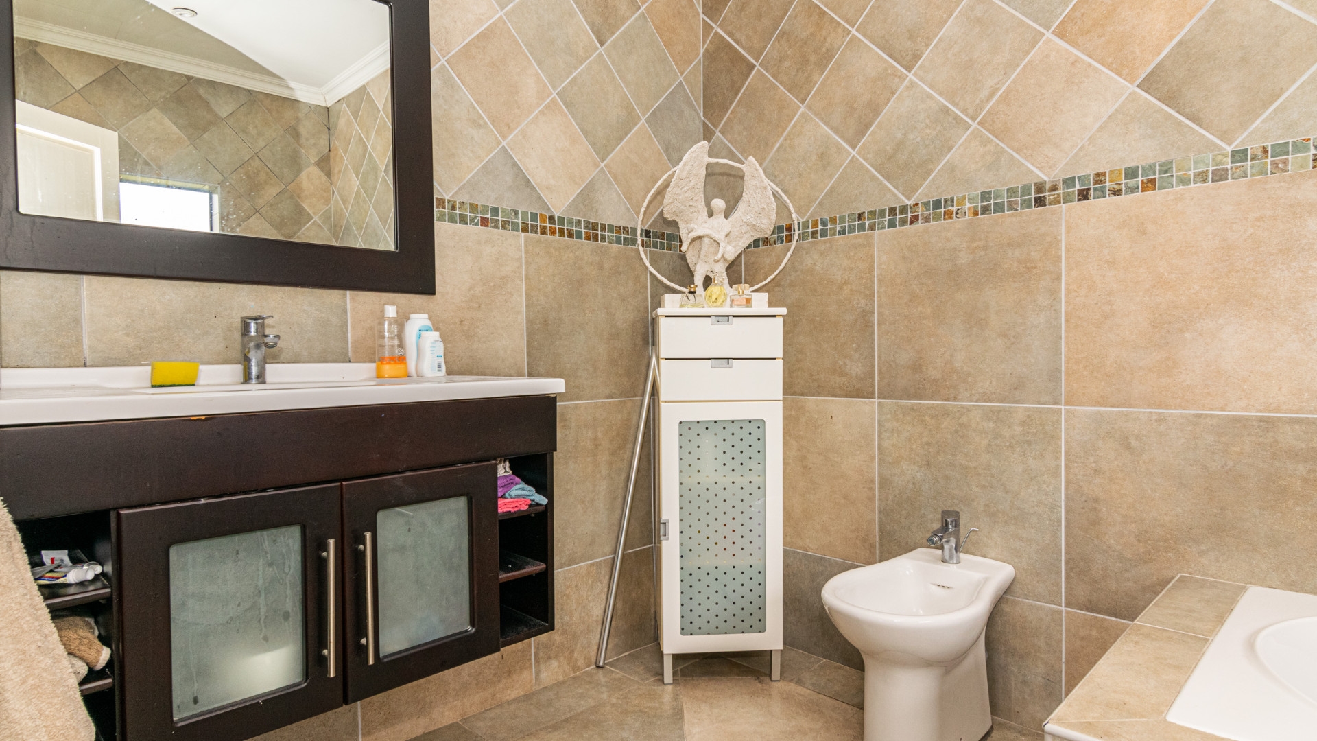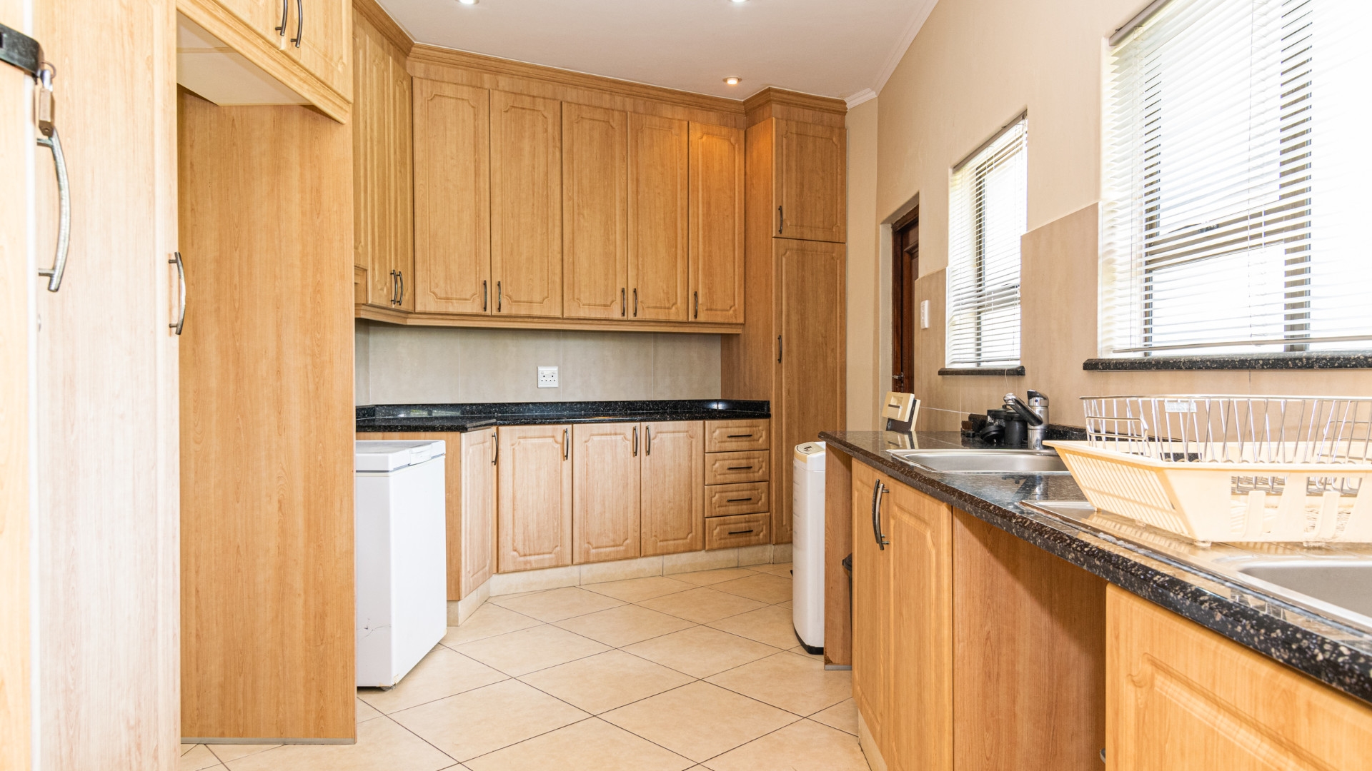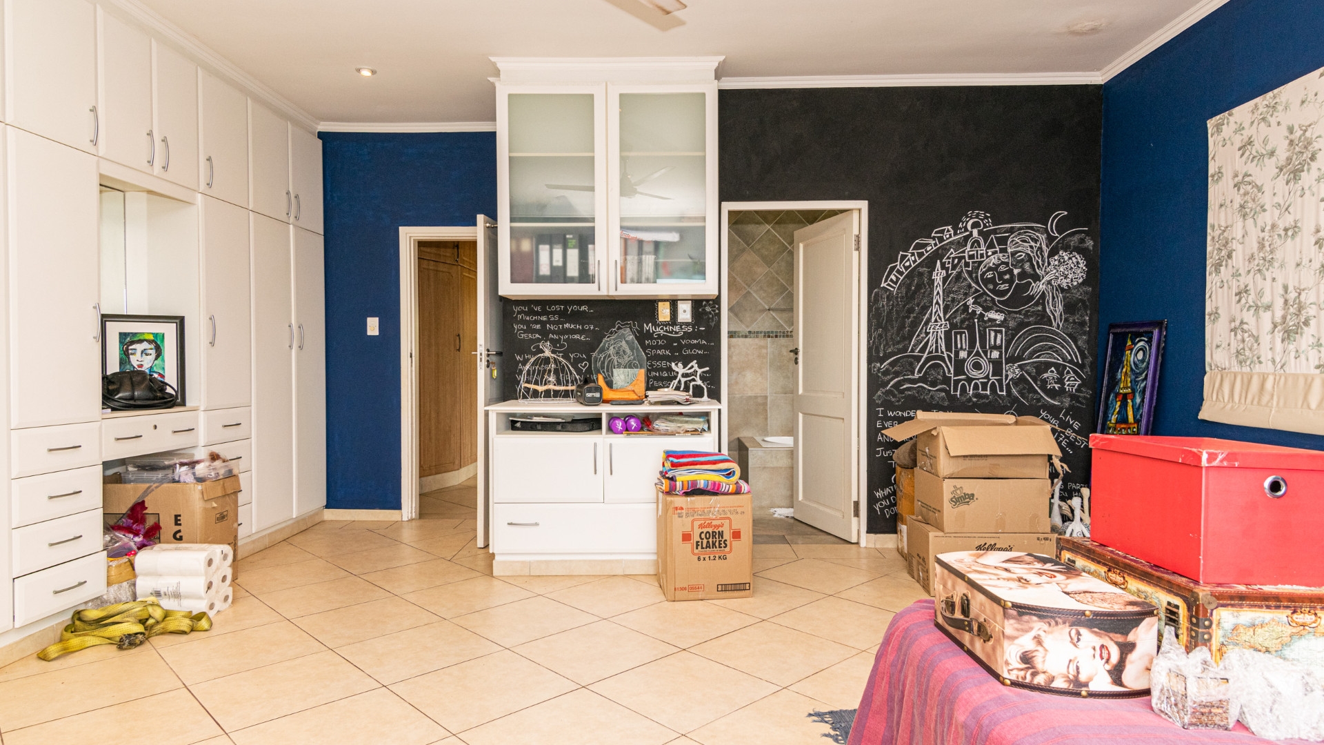 There is a large 25kva generator on standby and the house is fitted with solar geysers. There is a JOJO tank for emergency water needs. There is an old swimming pool which has been buried and converted into and underground water reservoir where all rain water is diverted for your garden needs. The house is fully walled with an electric fence and a entrance motorised gate. There are garden alarm beams around the house and the house and garage have an alarm connected to a local security company.
