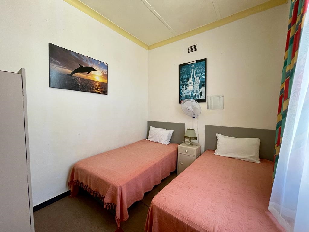 The residence features six spacious bedrooms, two well-appointed bathrooms, and an open-plan living area that seamlessly integrates with a fully equipped kitchen. The kitchen includes three deep freezers and two refrigerators, ideal for extended stays or hosting guests.