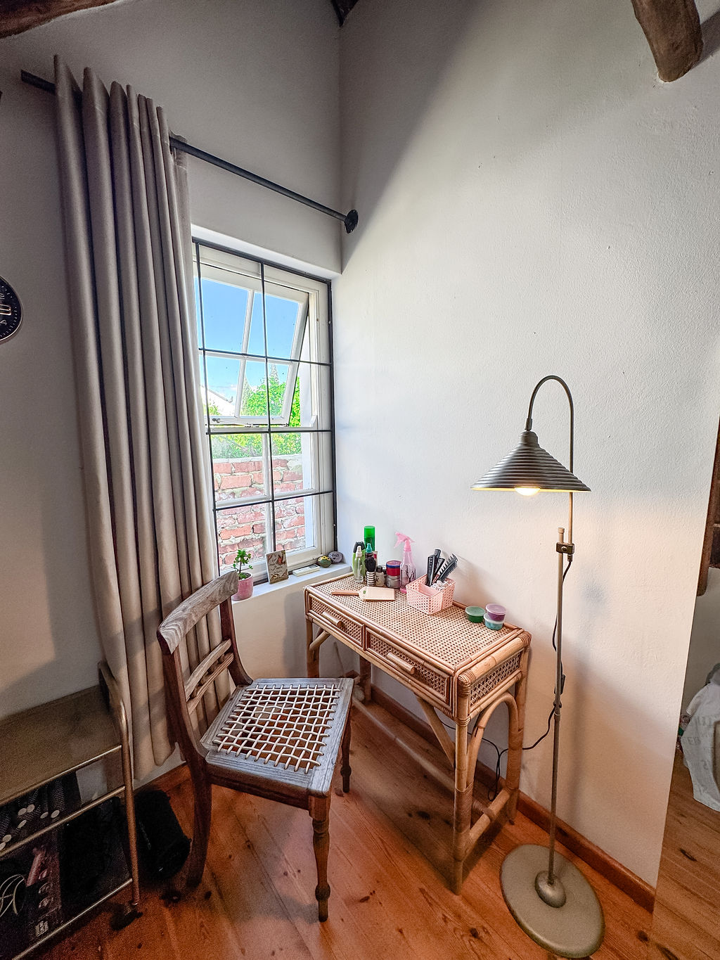 This beautifully preserved one-bedroom heritage home retains its original windows and character features while offering modern conveniences for comfortable living. A wooden staircase leads to the upstairs bedroom overlooking the garden, complete with an en-suite bathroom fitted with a shower, basin, and toilet. The loft area offers flexible use as a second bedroom, home office, study, or additional storage.