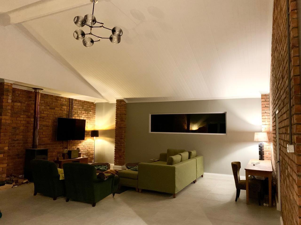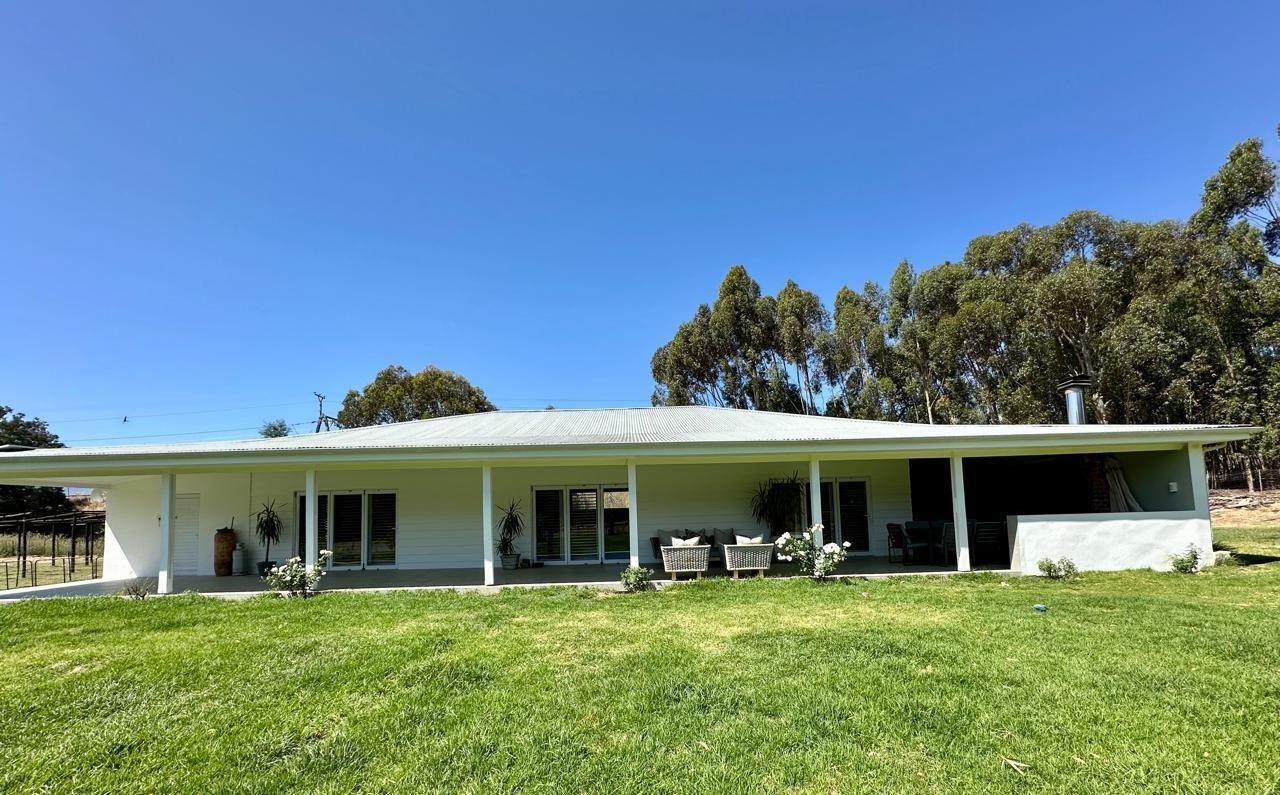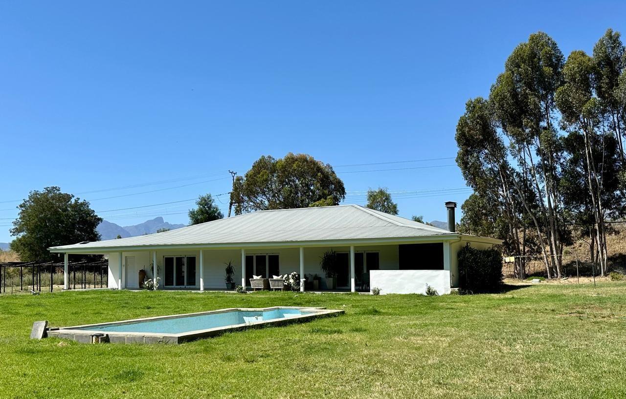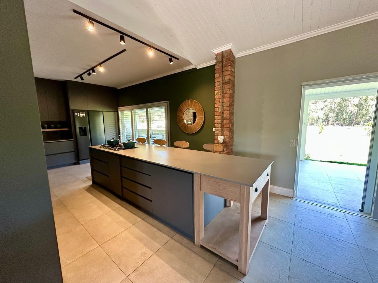 At the heart of the property lies a beautifully modernised farmhouse, where country living meets contemporary design. A vast, roofed veranda welcomes you in, flowing into a double-volume living area flooded with natural light. The kitchen is both stylish and practical, featuring Caesarstone worktops, excellent carpentry, and a separate scullery to keep things running smoothly behind the scenes.