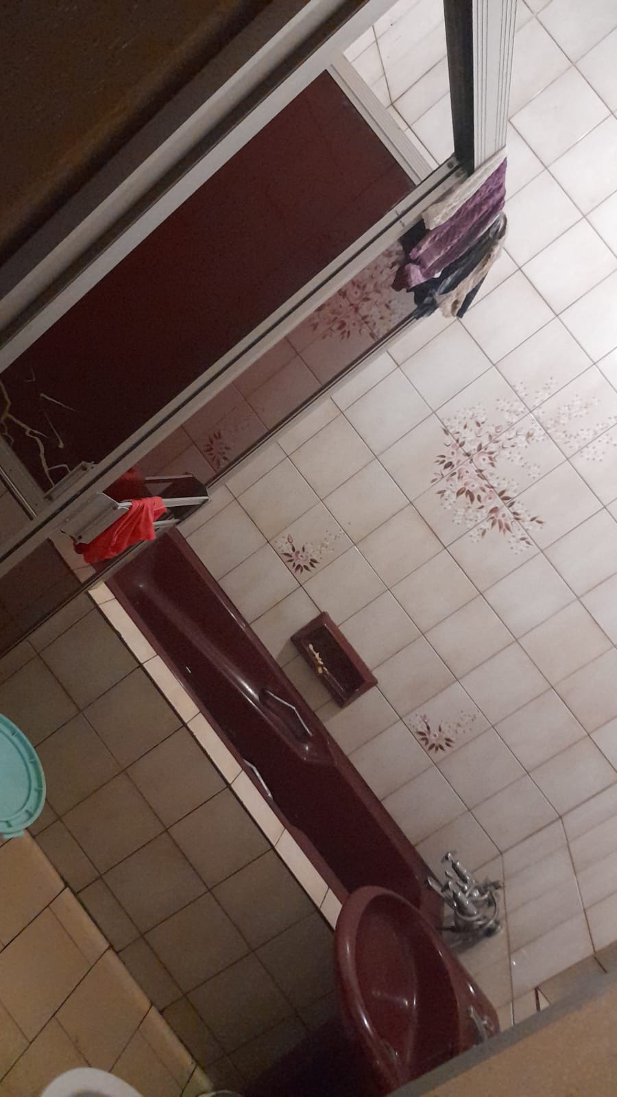 Room 1: A spacious Large room equipped with 1 toilets and shower. It is tiled for easy use and convenient for the outside tenant or guest to use.