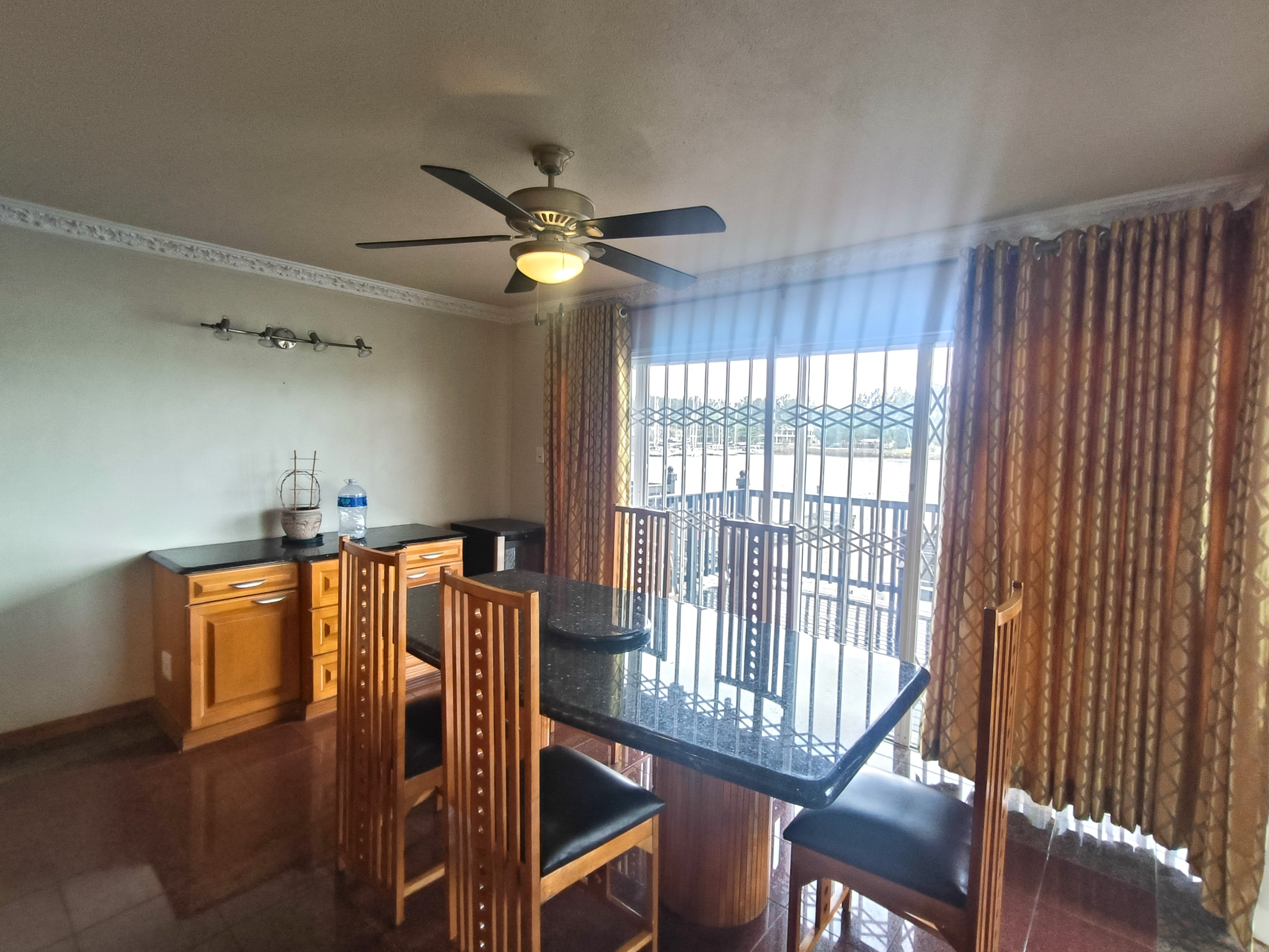 Experience the best of coastal elegance with this fully furnished three-bedroom townhouse, perfectly positioned on the prestigious Mzingazi Waterfront. Enjoy panoramic harbour views and direct access to a private beach area, enhanced by your own private jetty and dual balconies on both levels of the eastern side of the home. The open-plan lounge and dining space flows effortlessly into a beautifully finished kitchen with granite countertops and selected granite floor tiles, offering a cool and sophisticated touch. A separate scullery provides added functionality, with space for all your laundry appliances.