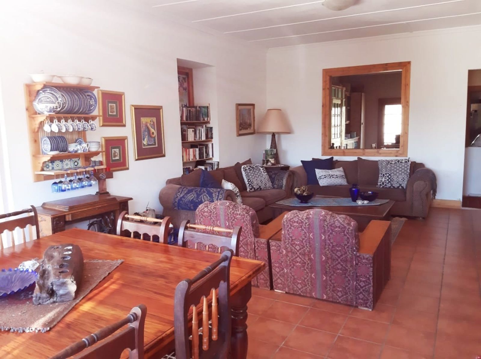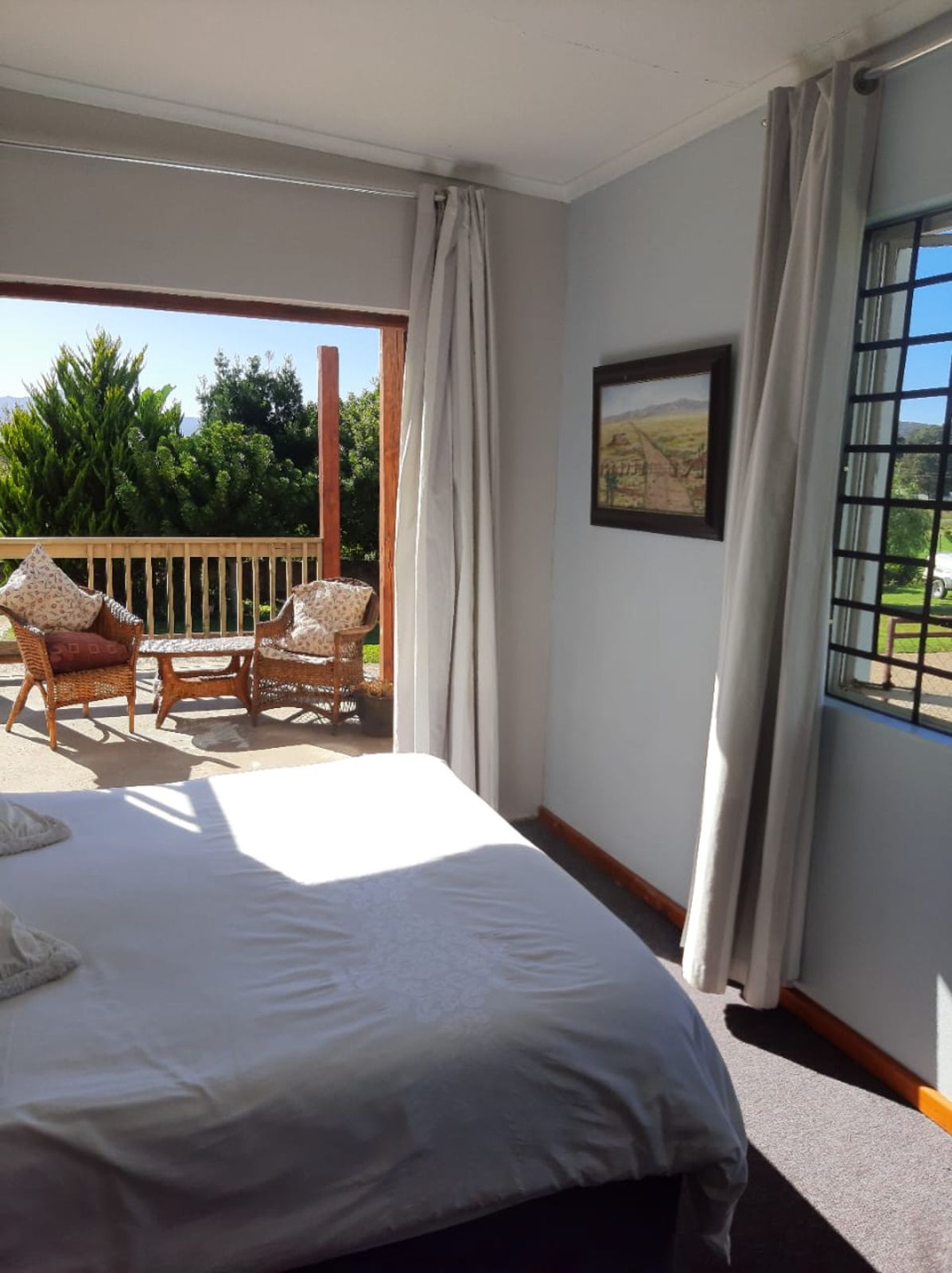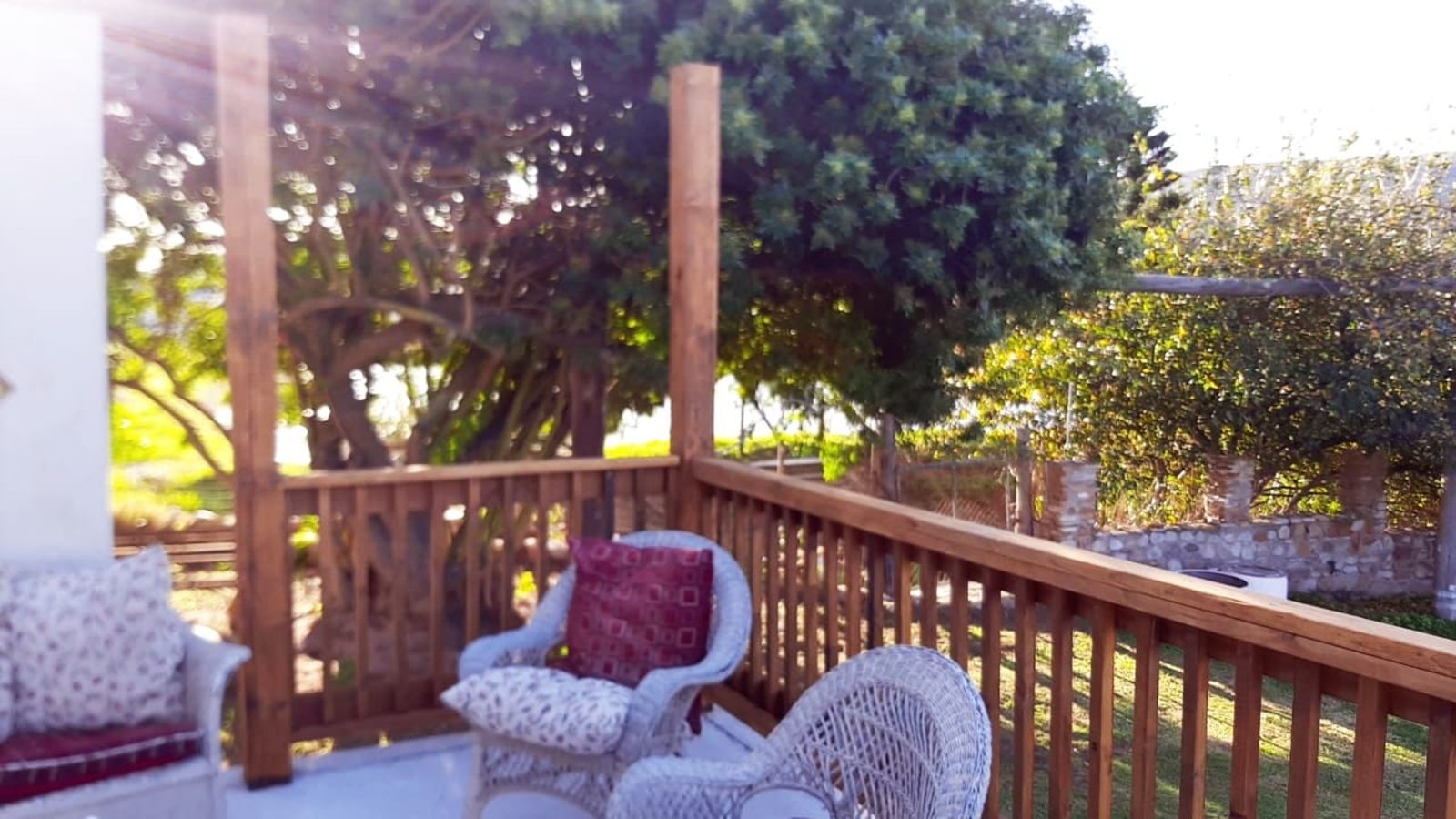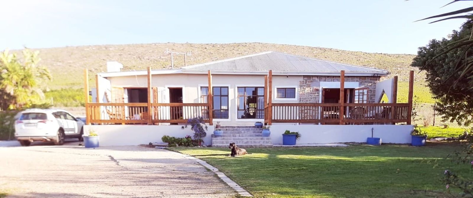 This sunny Main house consists of 4 bedrooms, kitchen, dining, lounge and braai area, surrounded by beautifully kept lawns and verandas accessible from various rooms.