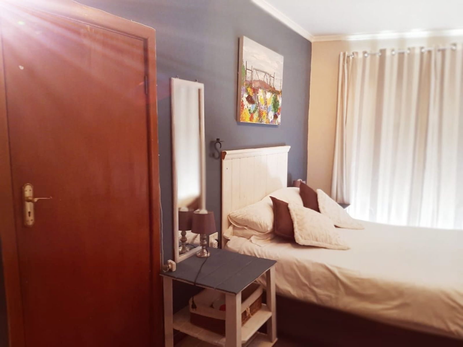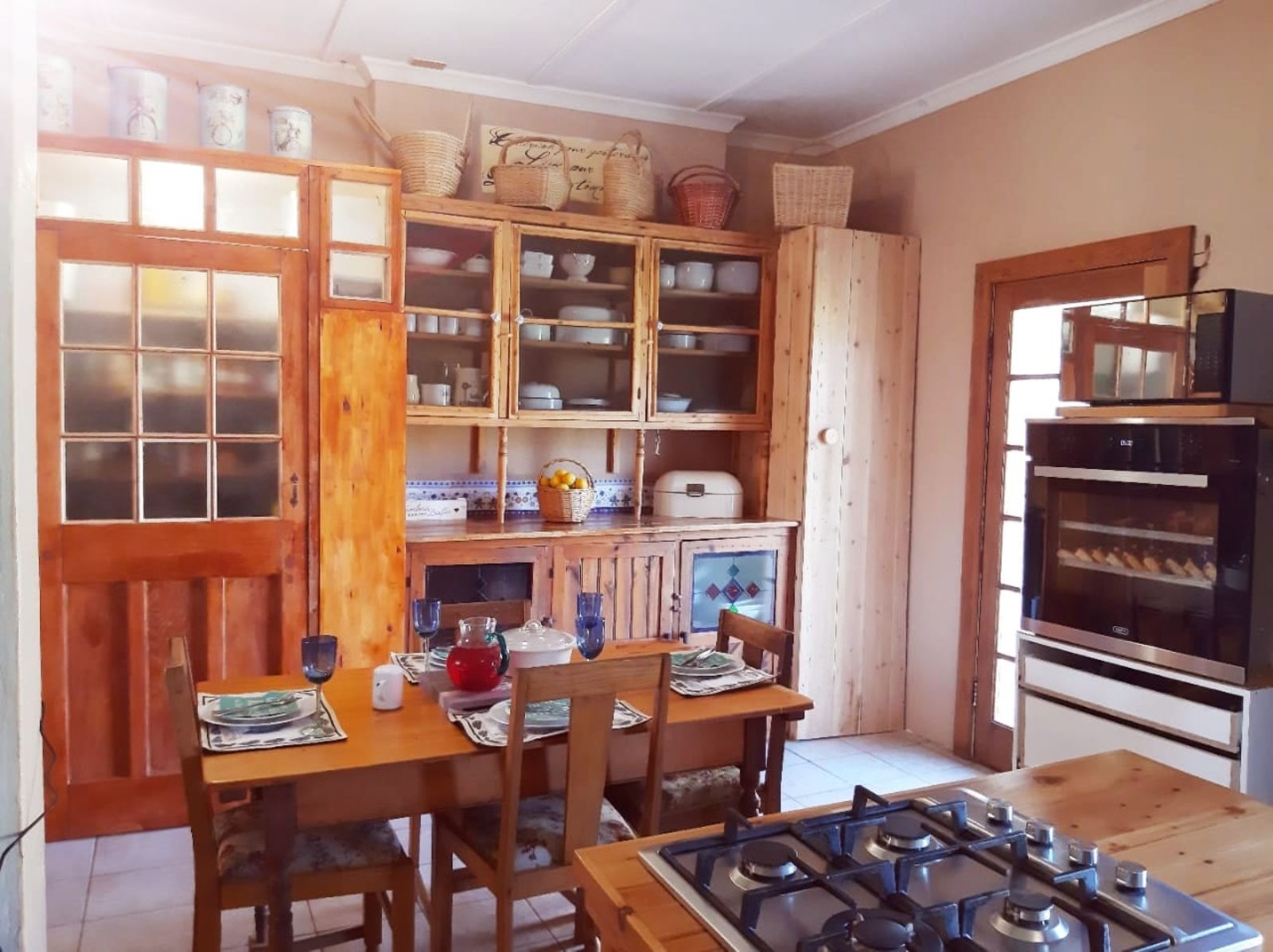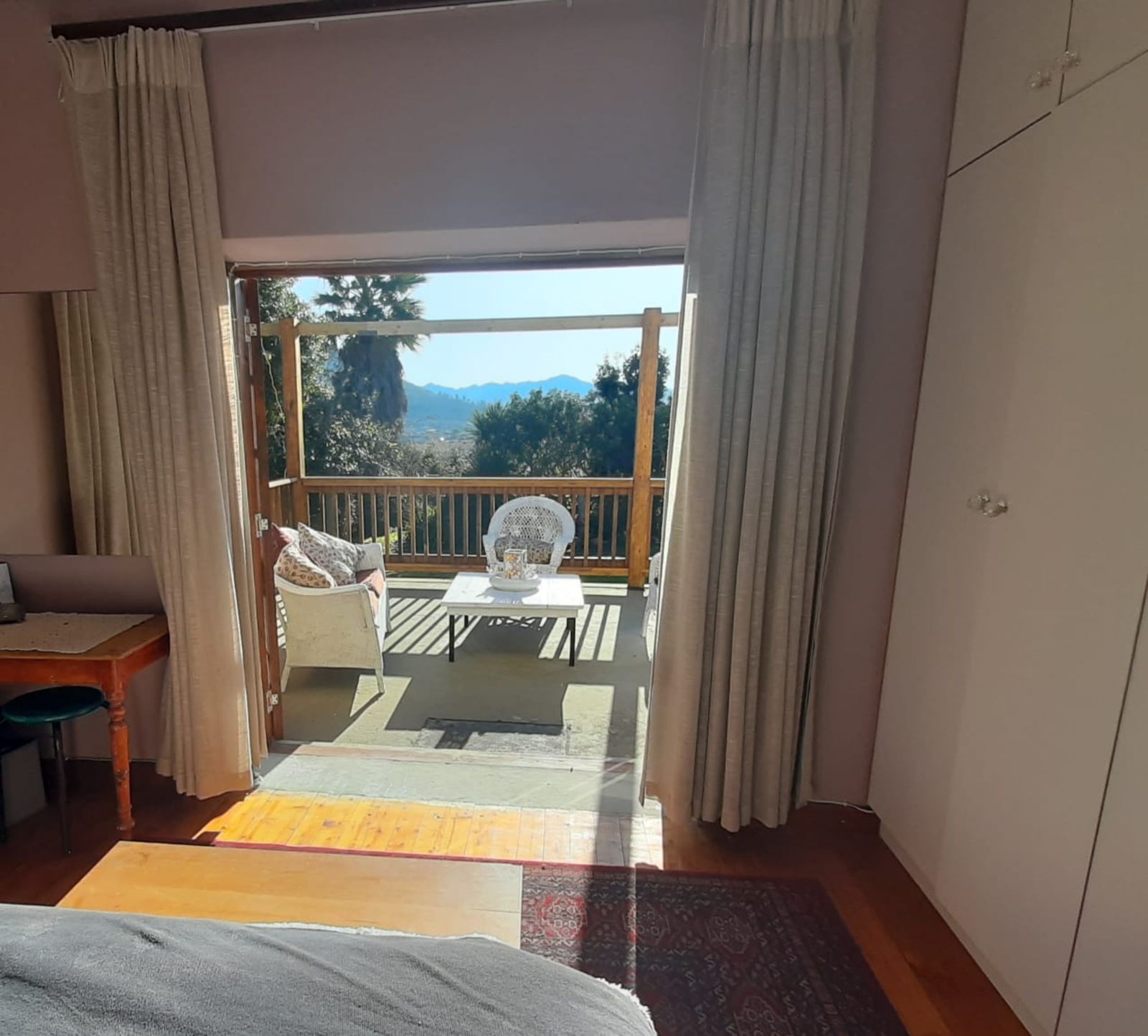 This sunny Main house consists of 4 bedrooms, kitchen, dining, lounge and braai area, surrounded by beautifully kept lawns and verandas accessible from various rooms.