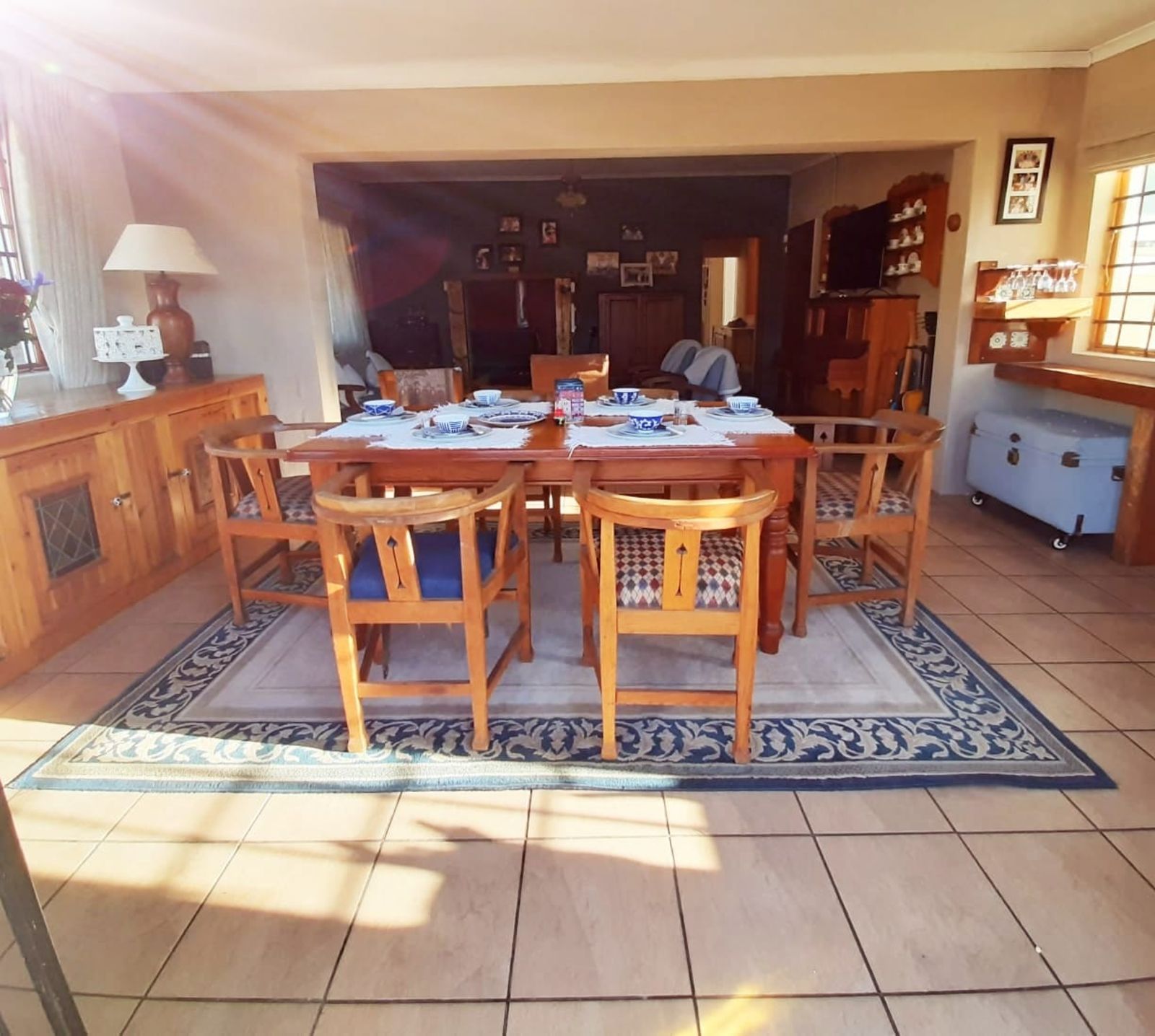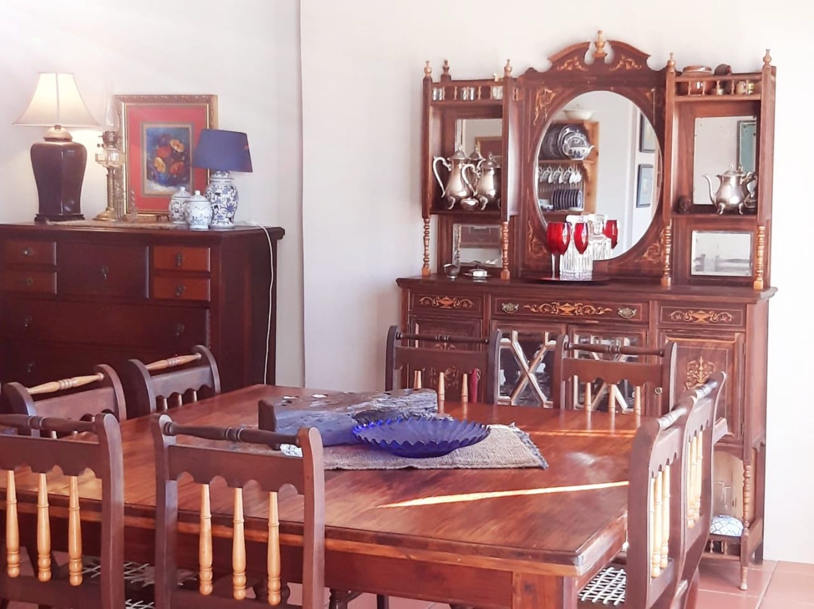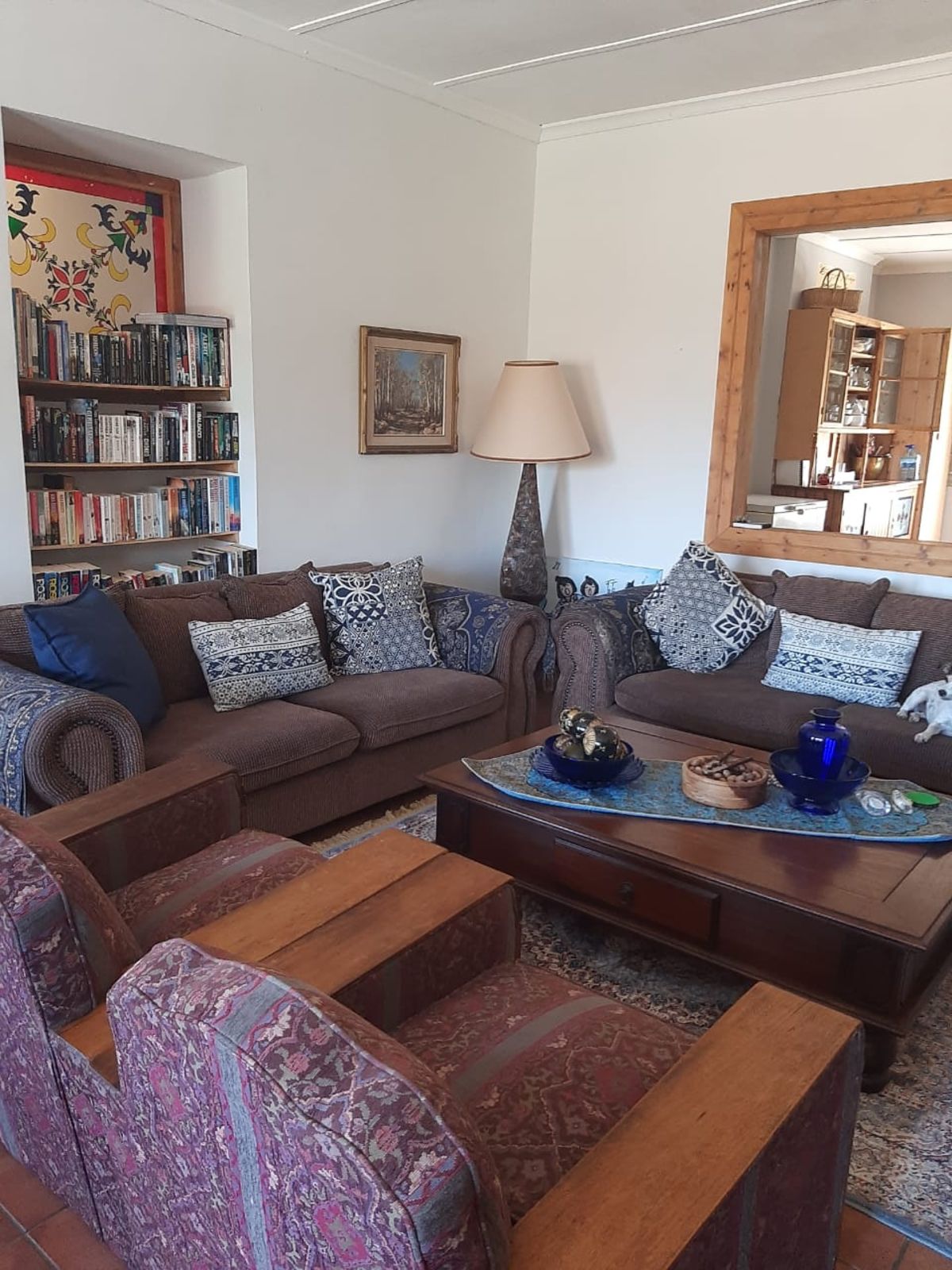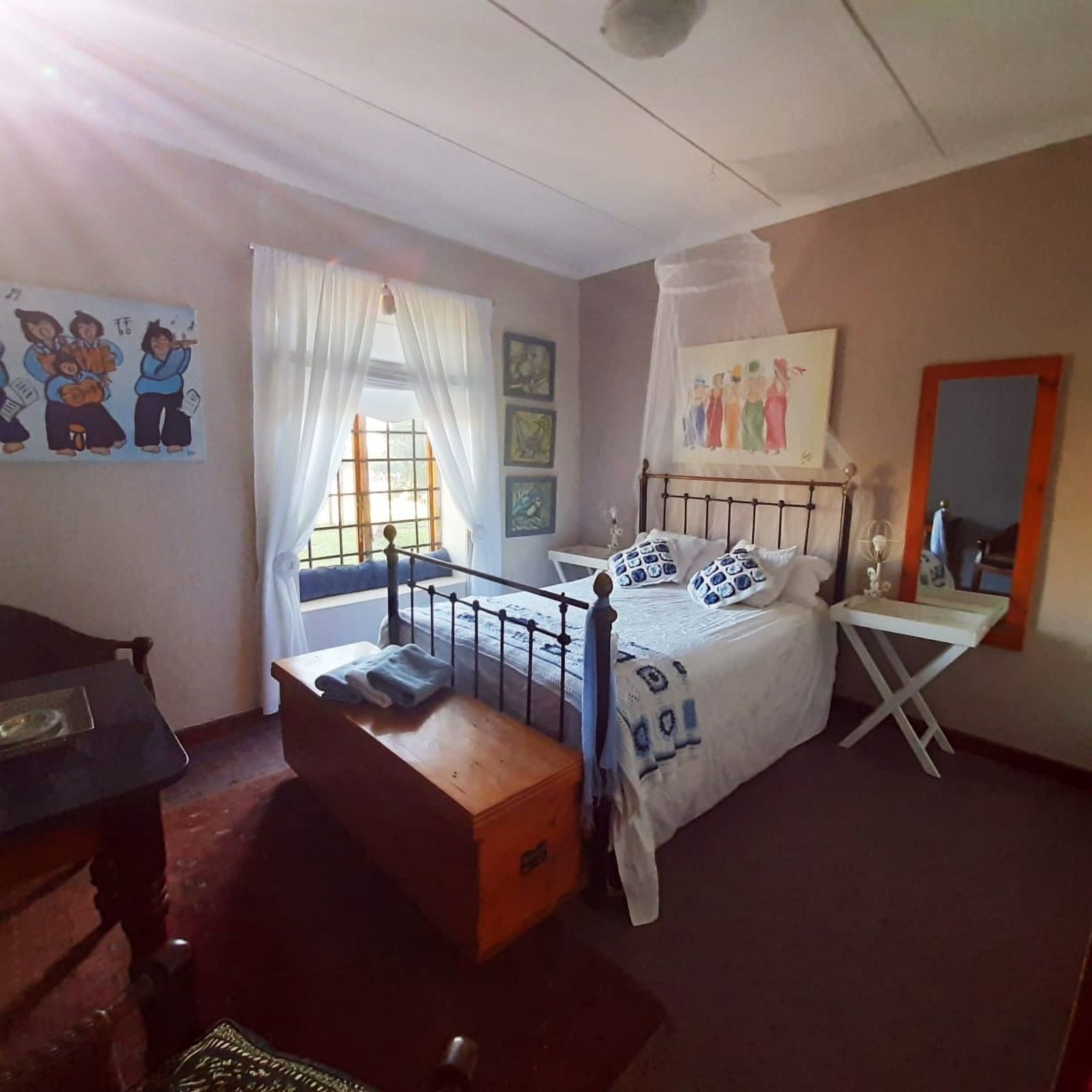 This sunny Main house consists of 4 bedrooms, kitchen, dining, lounge and braai area, surrounded by beautifully kept lawns and verandas accessible from various rooms.
