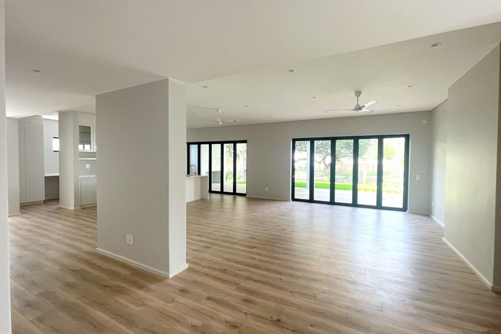 From the moment you arrive, you’ll notice how light, space, and thoughtful design define this home. The open-plan living, dining, and kitchen area is designed for easy living and effortless entertaining. Full-height sliding-folding doors dissolve the boundaries between indoors and out, extending your living space to a large, covered entertainment patio with a built-in braai – perfect for relaxed evenings with family or friends.
