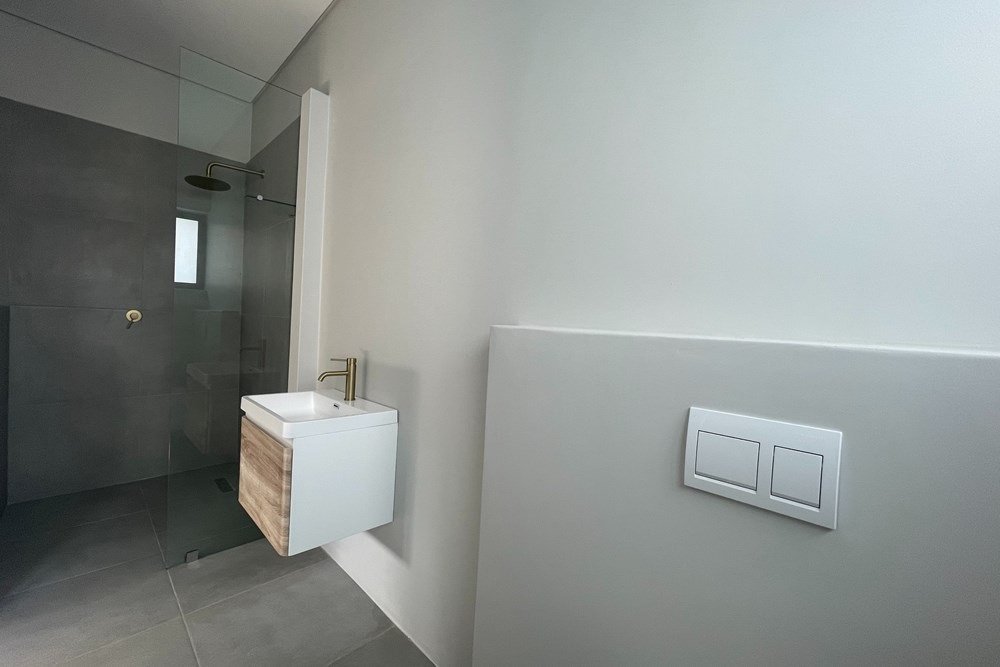 The kitchen is sleek yet practical, fitted with premium finishes, ample cabinetry, and a hidden scullery to keep everyday life organised and uncluttered.
