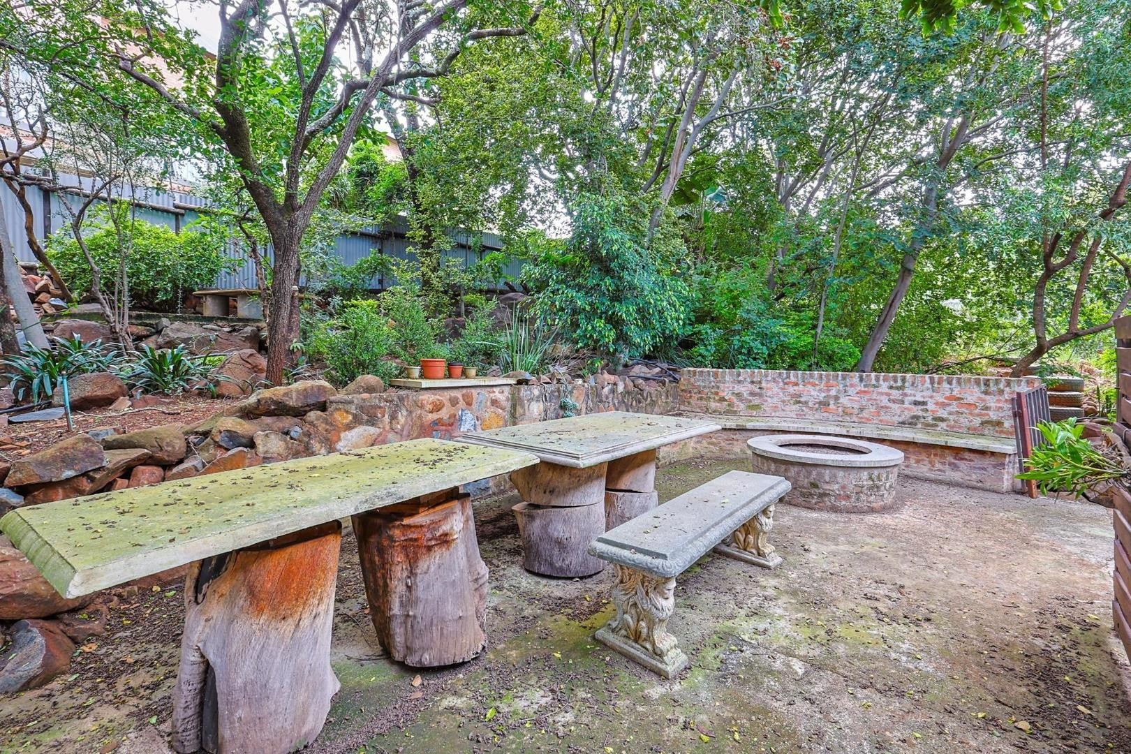 The heart of the home features an open-plan TV/family room, dining area, and kitchen, all flowing seamlessly onto a covered patio with a built-in braai, perfect for entertaining while enjoying views of the pool and garden. The garden also includes a jungle gym and a boma area, making it ideal for family living.