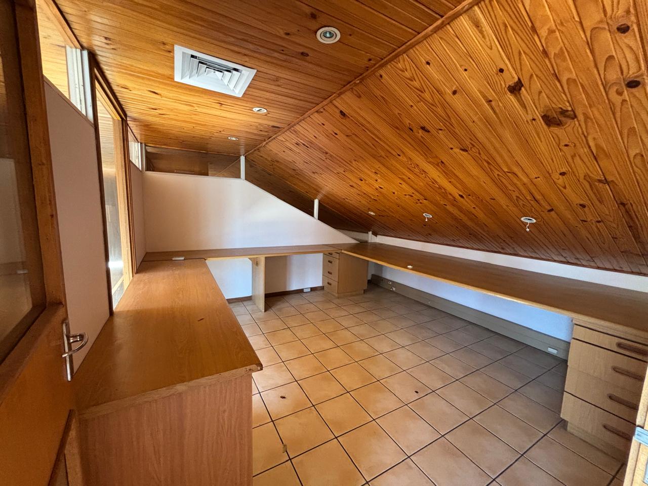 The space features a welcoming reception area that creates a professional first impression, complemented by multiple private offices ideal for management or meeting rooms. A spacious open-plan work area provides flexibility for collaborative teams, while the loft design enhances natural light and creates a modern, airy working environment.