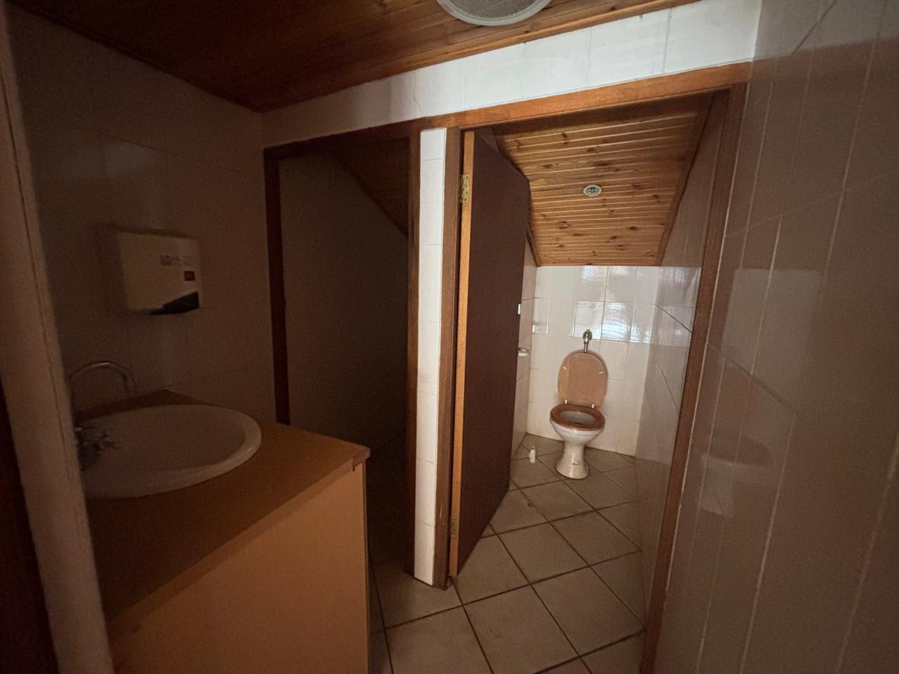 Additional amenities include a convenient kitchenette for staff use and two well-appointed bathrooms, ensuring practicality and comfort for daily operations.