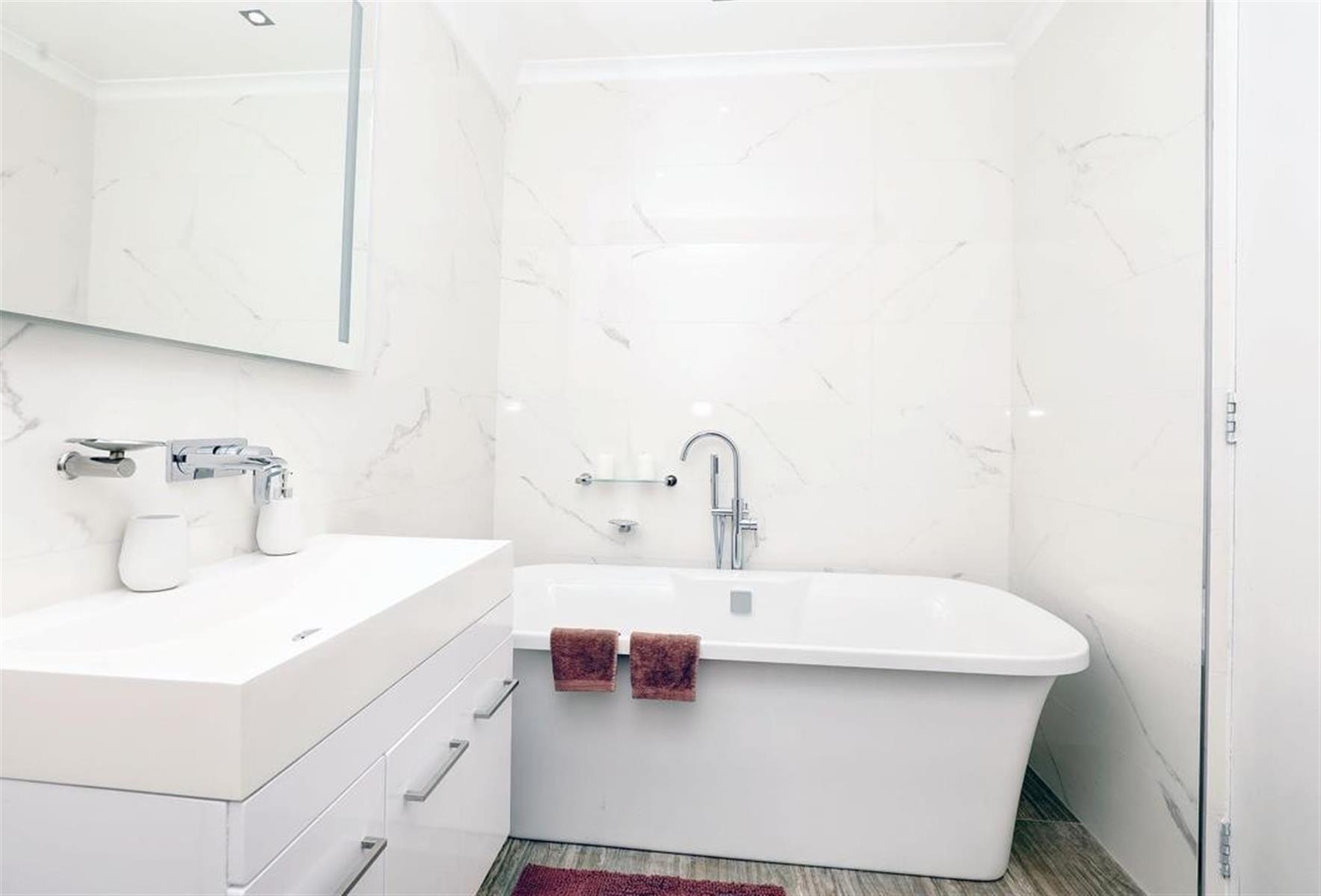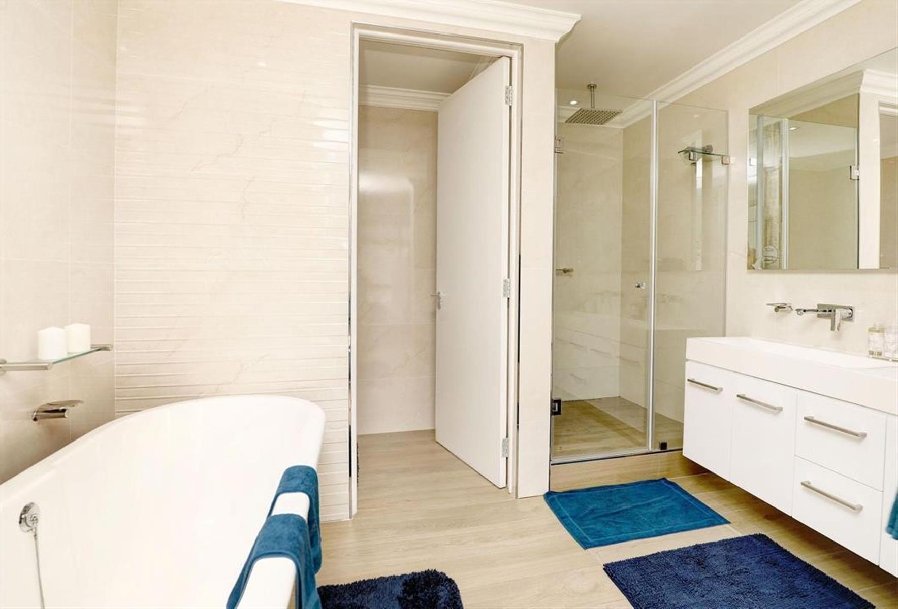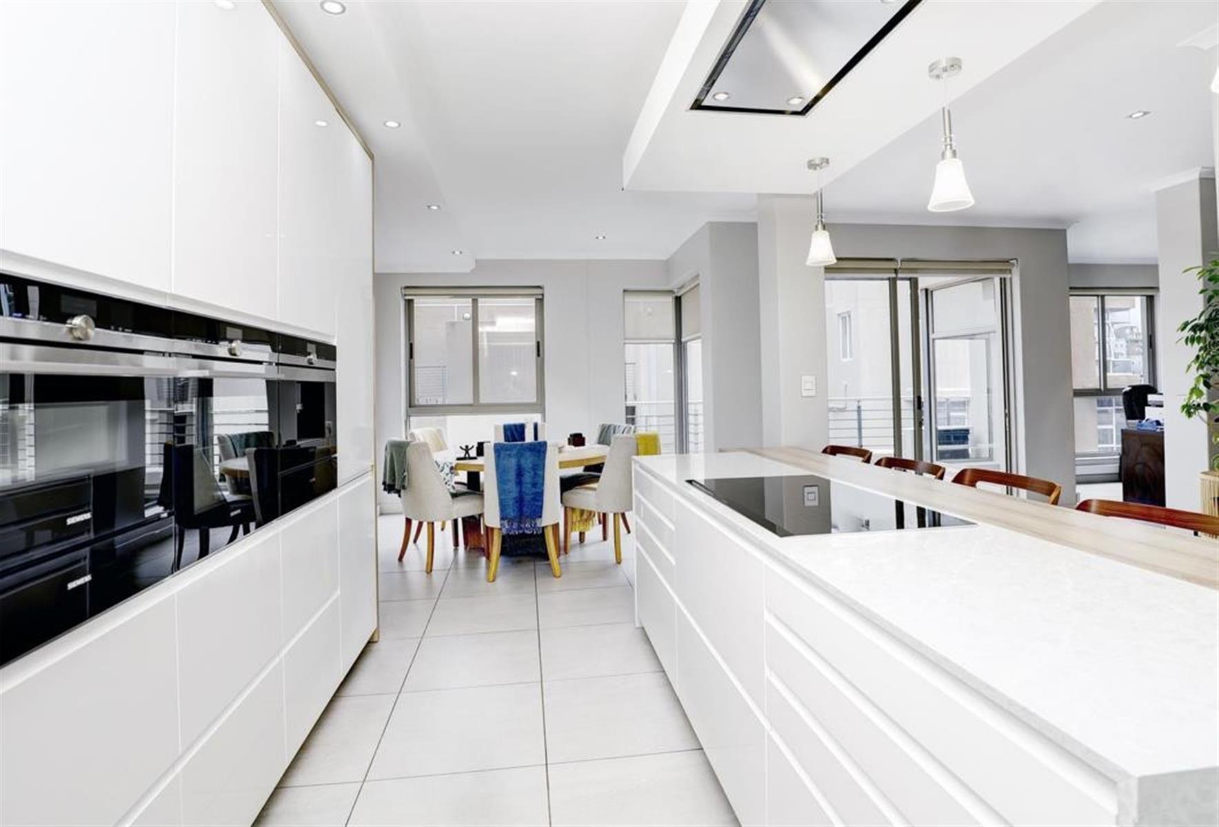 Quality is the name of the game in this lovely apartment - the kitchen is upmarket and uniquely designed - all cupboards are fitted with soft close hinges - appliances masked and hidden with front forming part of the clean look and cupboard finish. The kitchen is totally open plan and provides more than sufficient counter space. Eye level oven, coffee machine and microwave all fitted. The spacious unit has designated dining area, wonderful lounge area fitted with SONOFF sound. there is a seperate study desk / office section.