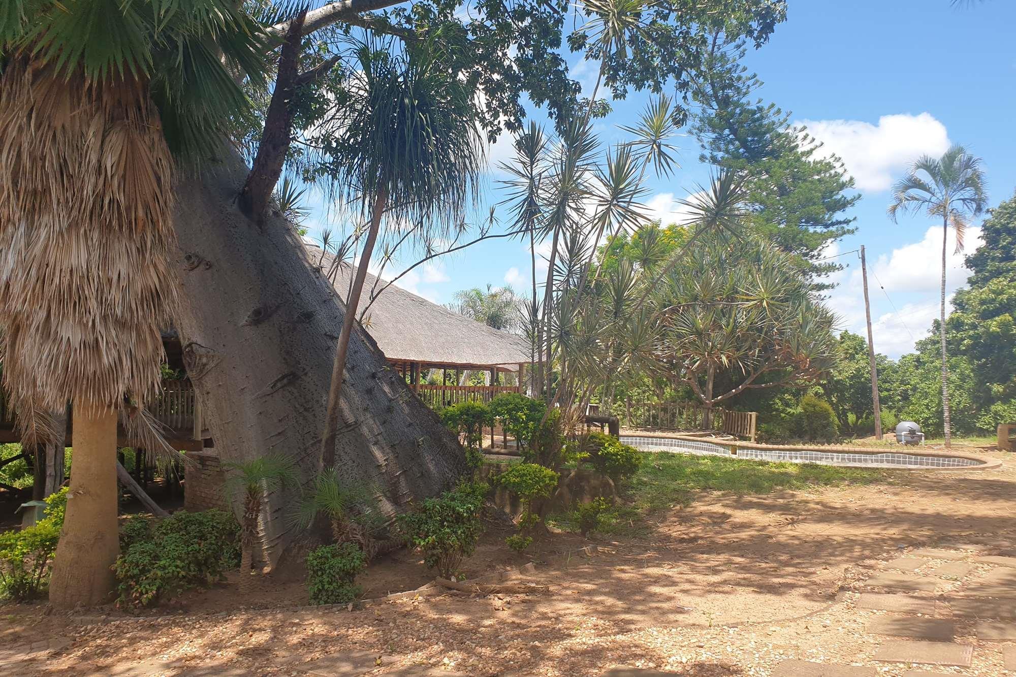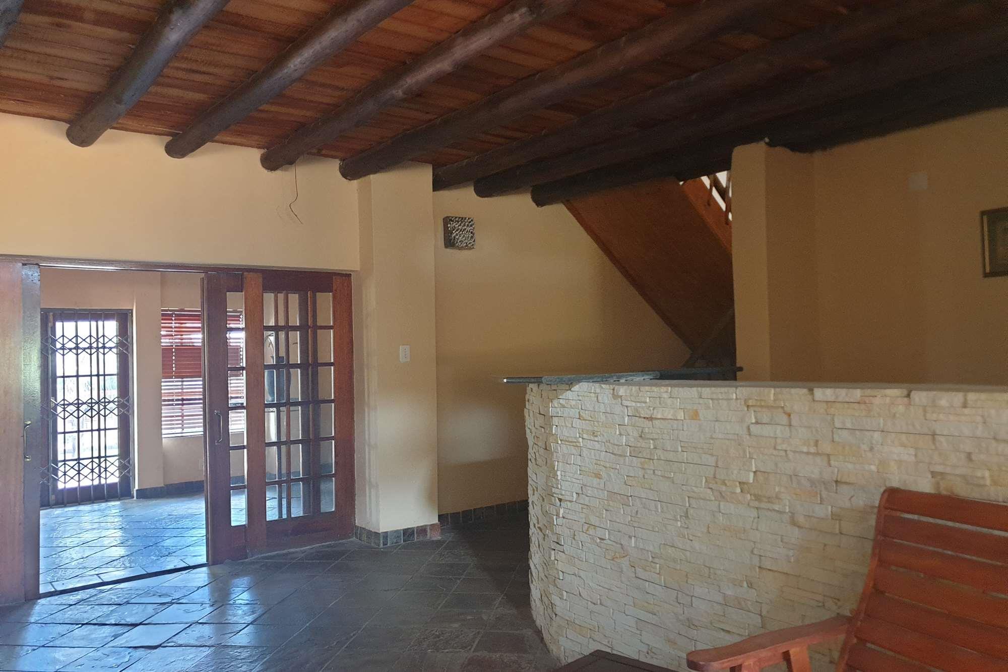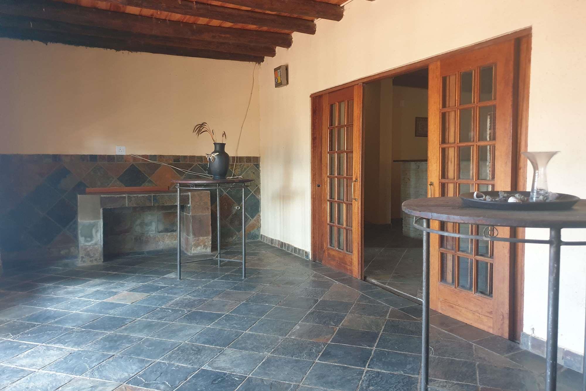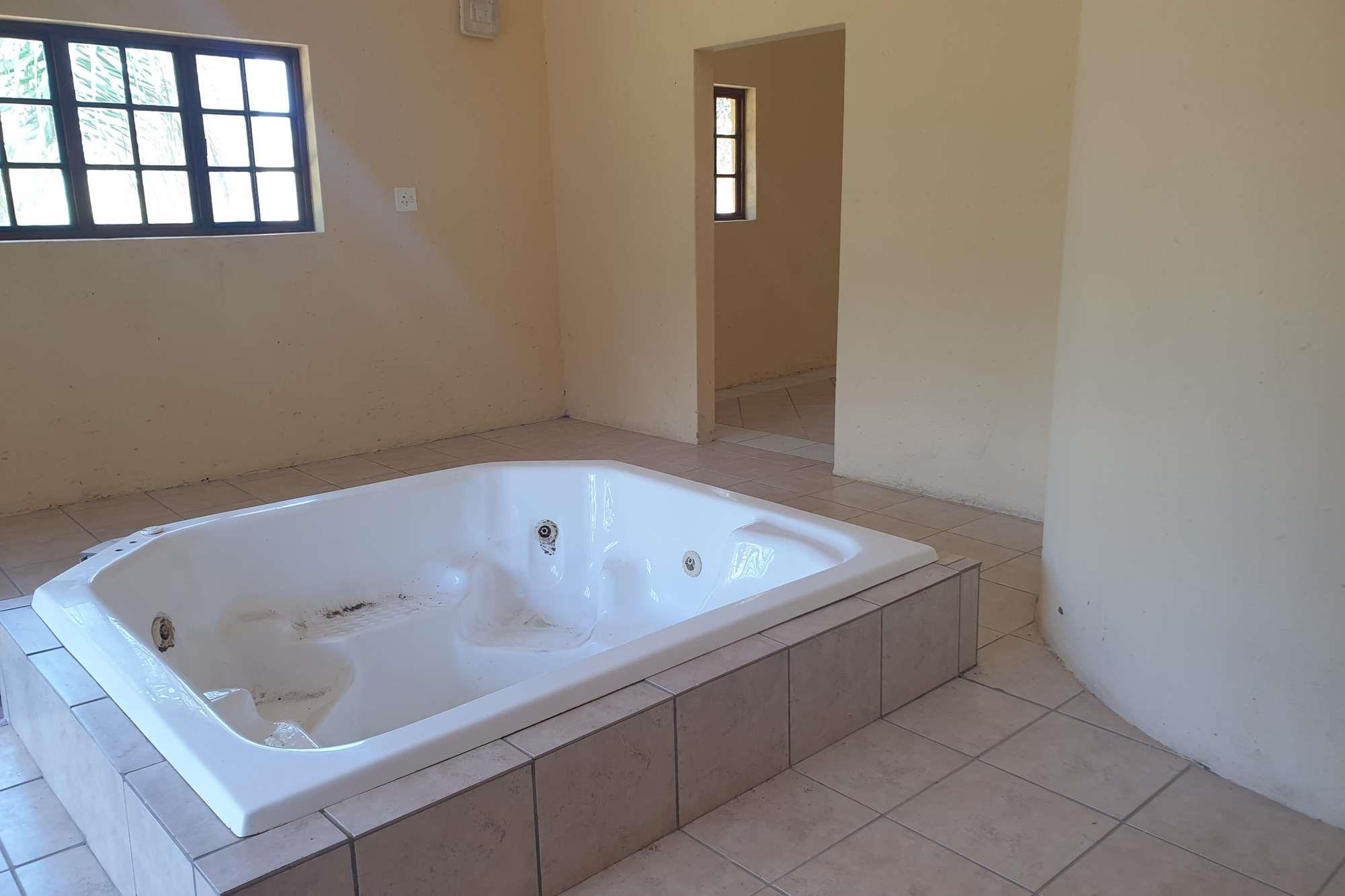 A natural water stream feeds into an earth dam, adding to the scenic charm of the farm. In addition to the main house, there`s a 2-bedroom dwelling, a borehole, and various outdoor structures, including a swimming pool and a thatched lapa. While the 4-bedroom house requires some attention, the farm holds promise for macadamia tree cultivation and is well-suited for cattle farming.