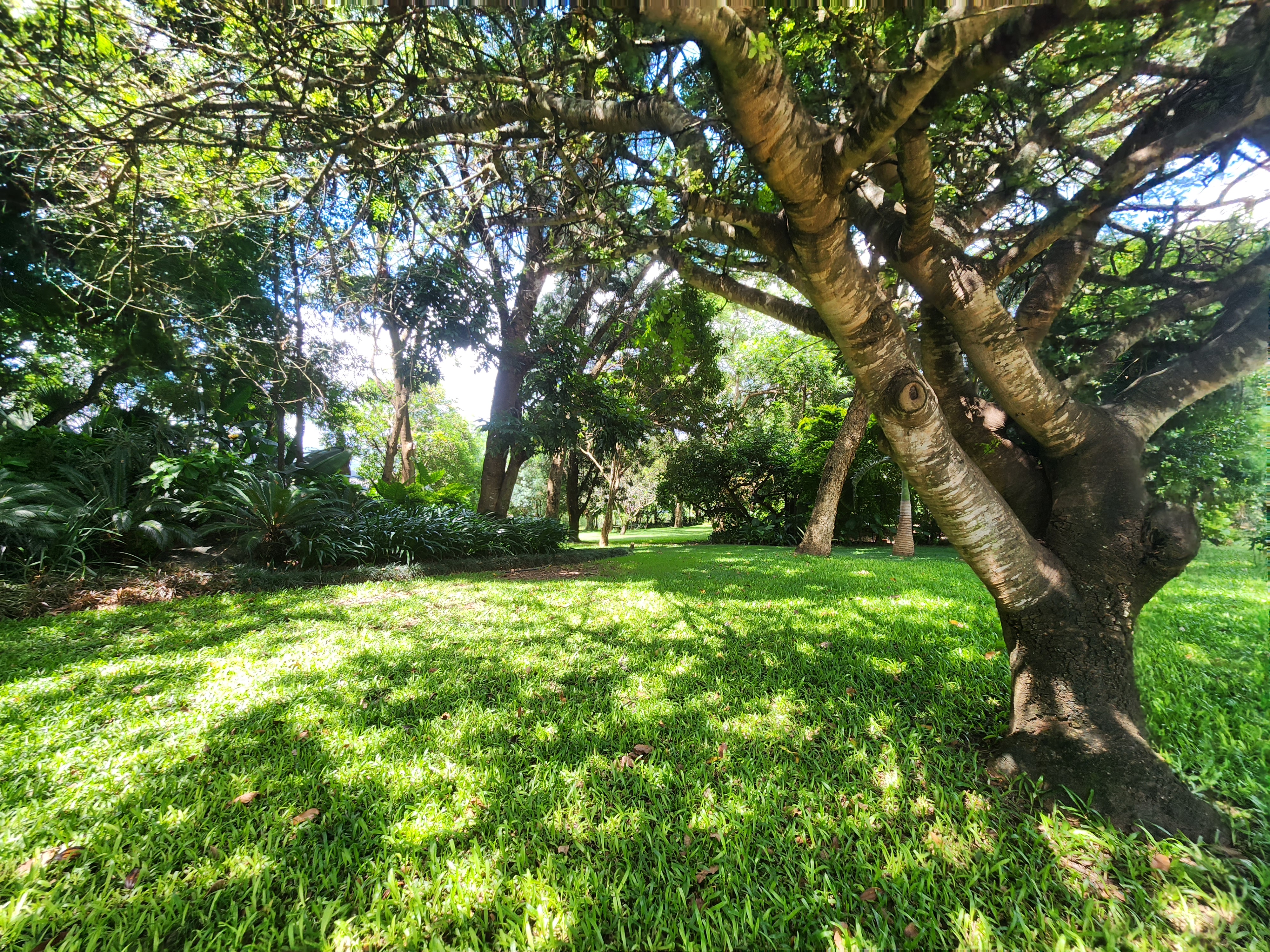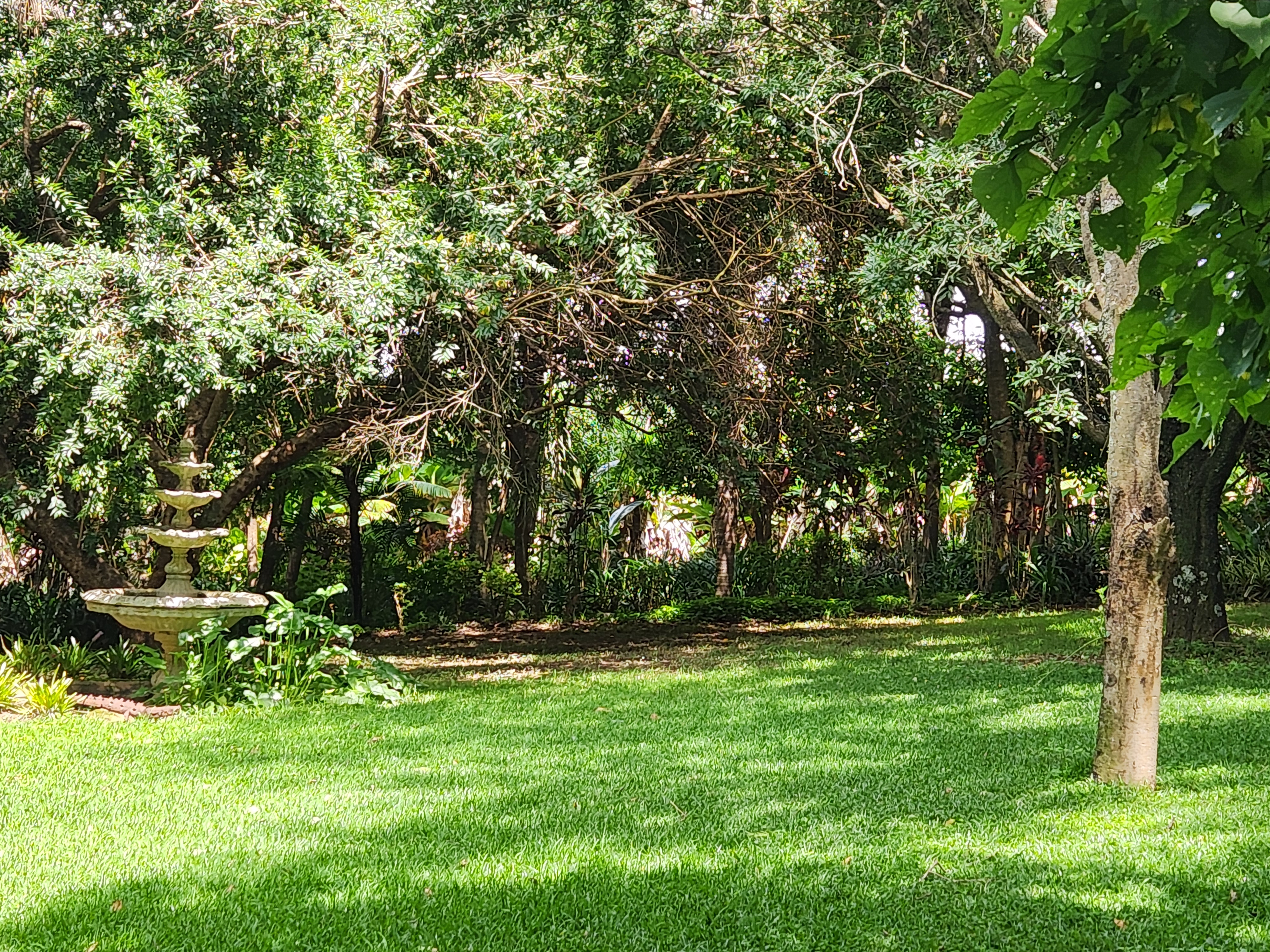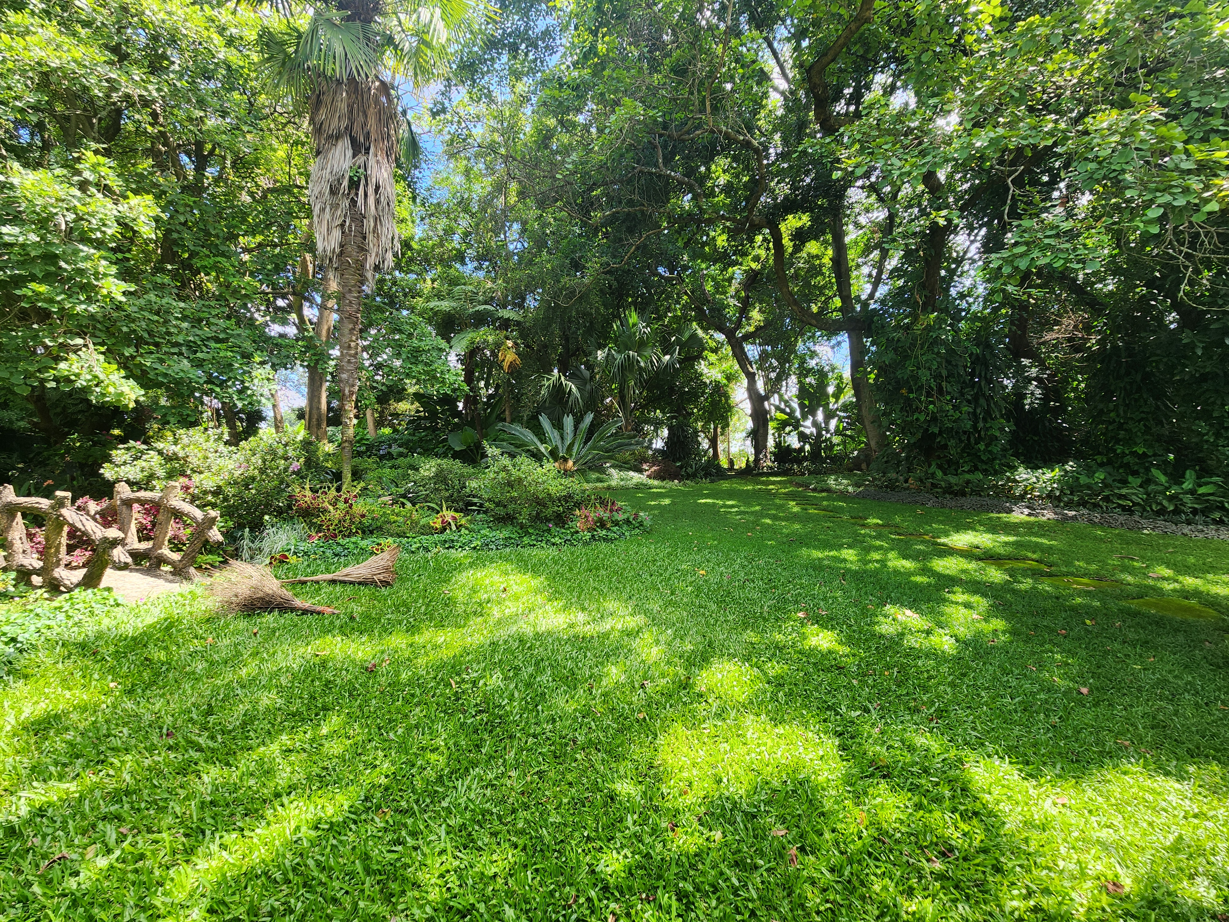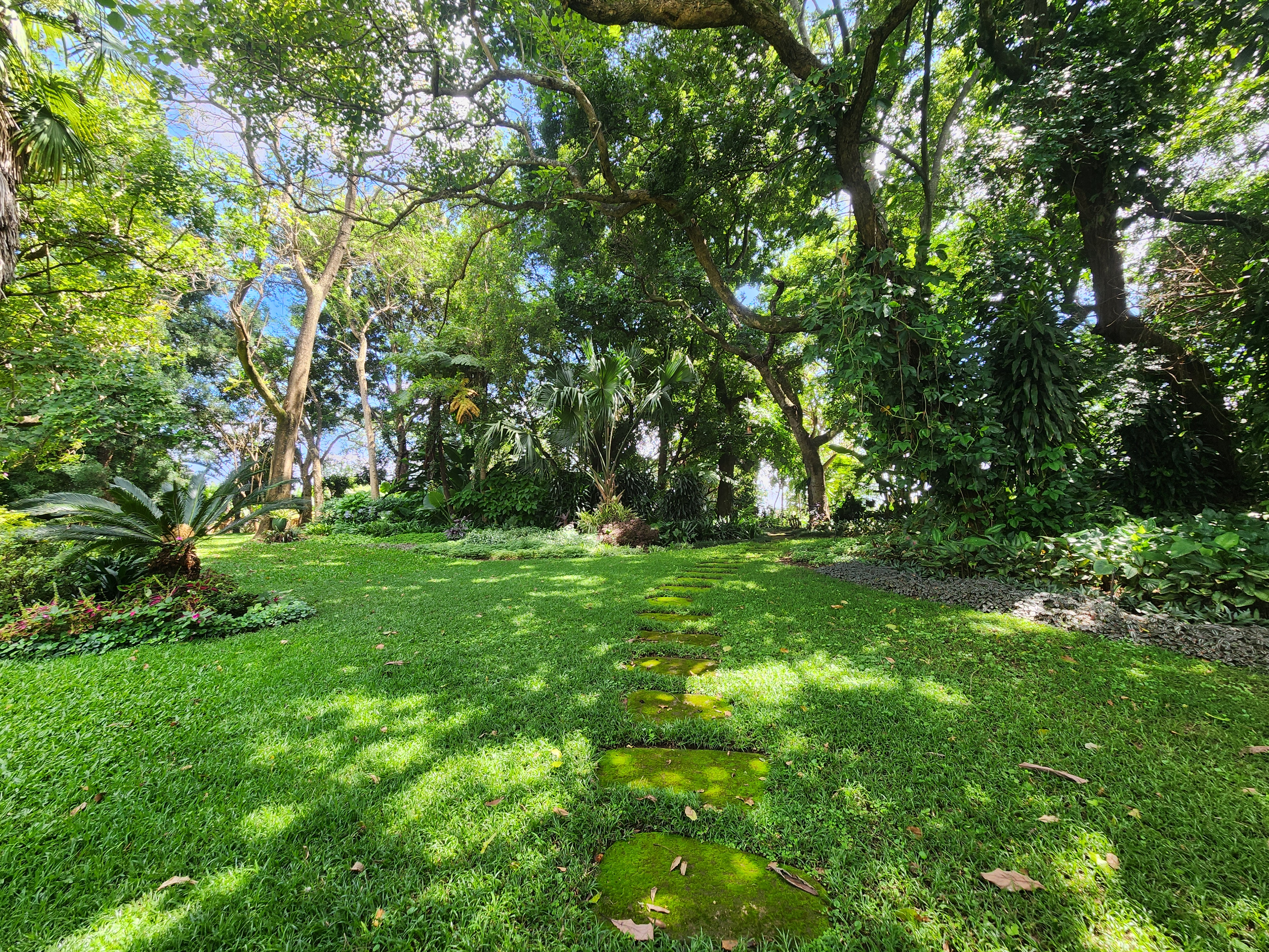 The garden is a breathtaking fairytale featuring large, shady trees.