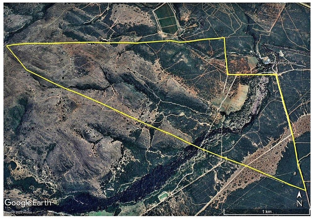 Portion 2 is measuring 42.8568 Hectare and was used by the Nelson Mandela University as their Addo Campus up to last year where the students were trained in Game Ranch Management. The 900 square meter prefabricated buildings then housed 50 students with a bar, restaurant area with fully fitted kitchen and catering equipment plus a lecture hall. These structures now lend itself to the perfect backpackers next to the Wilger River. This portion also produce 60Kw of power through the solar panels on the roof and on the side of the building and can be seen via Google Earth. There is also an old farmhouse with two bedrooms and one bathroom on this portion which can be used should you wish to convert the space into a Backpackers. There are two boreholes about 100 meters deep on this portion of which one is salty water and the other with fresh drinking water pumping approx. 4500 litres of water per hour with 2 Hectare water rights which is fenced lands where you can grow Luzern or vegetables with drip irrigation in place already. Theres also a cement dam and another waterhole for the animals on this portion.