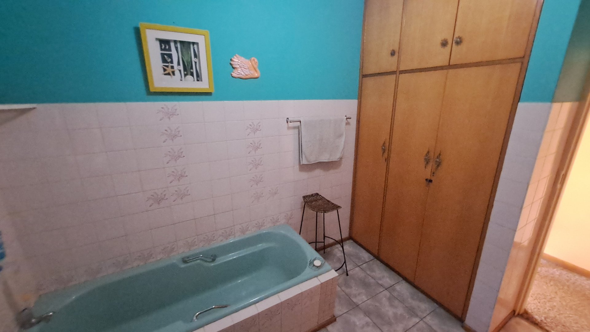 -A second bathroom with a bath, basin, toilet and built-in cupboards