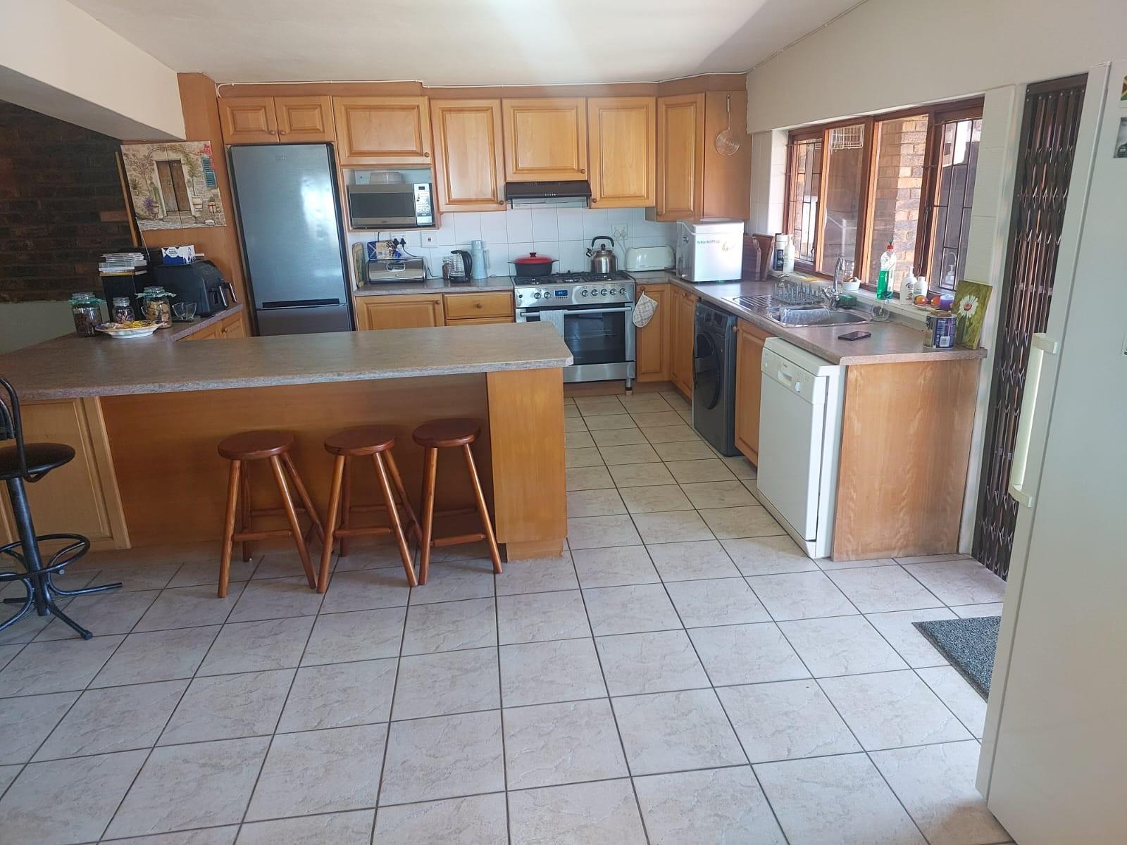 With two dining rooms and two lounges, you`ll have ample space to host gatherings or enjoy quiet family evenings. The two kitchens, equipped with modern appliances including a gas hob and gas oven, are designed with granite tops and a breakfast nook for casual dining. A scullery adds convenience, while additional storage is provided by a storeroom and pantry.