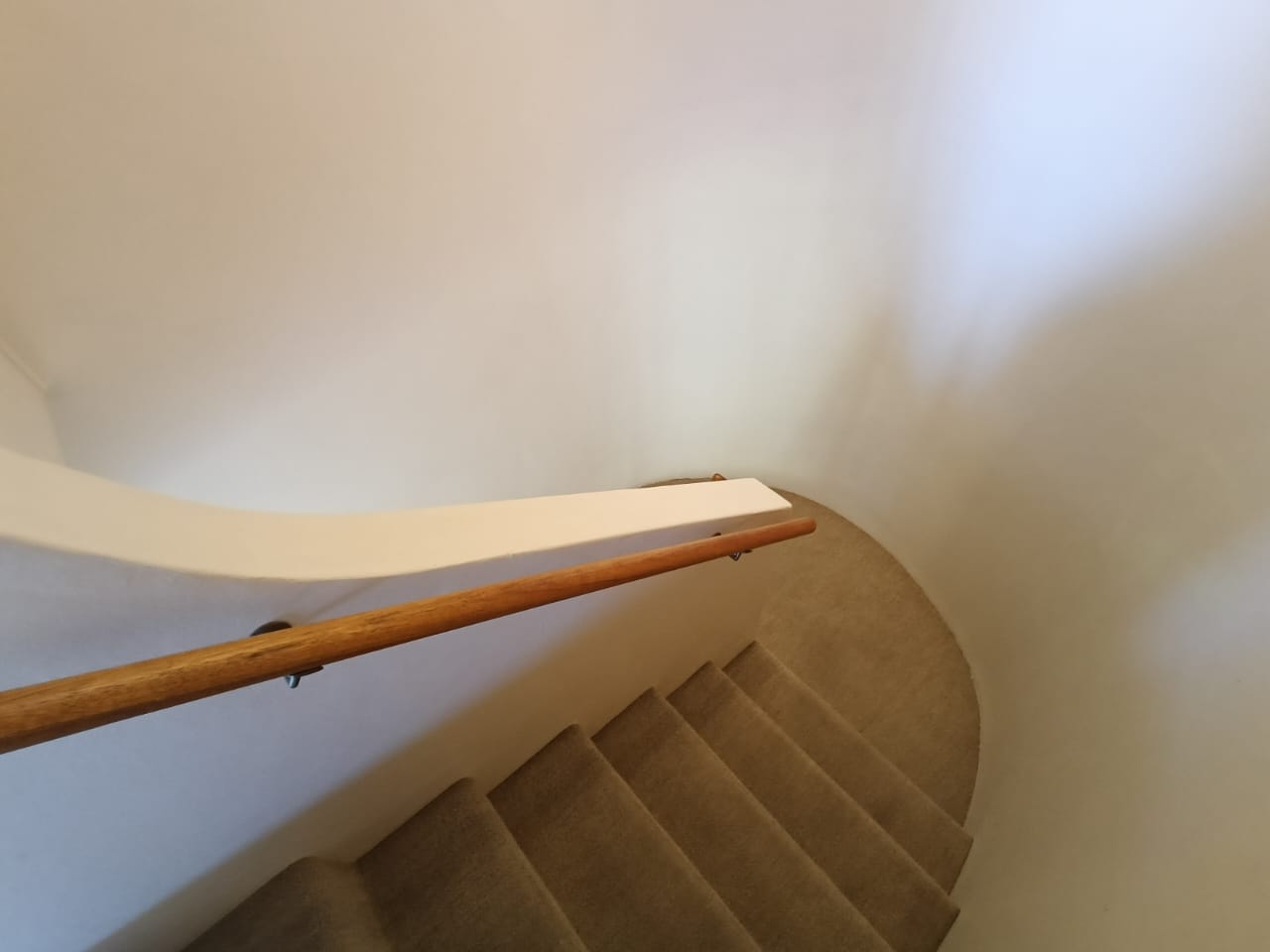 Set back from the road in peaceful surroundings. The spacious open plan, airconditioned lounge and dining room opens via a large sliding door to a private patio and small garden with stunning views. A kitchen off the dining room has a stove, space for a washing machine, fridge and ample cupboard space. A laundry courtyard with a washline is outside the kitchen. There is a guest toilet off the entrance. The bedrooms are located upstairs, two of which are air conditioned. The main bedroom is en suite and has a balcony offering sea views. The other rooms share the family bathroom which has a bath, basin and toilet.