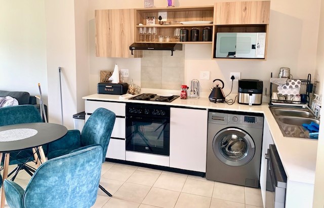 The open plan Kitchen Lounge opens up onto private balcony with an amazing view of the greenbelt and sugarcane plantations.