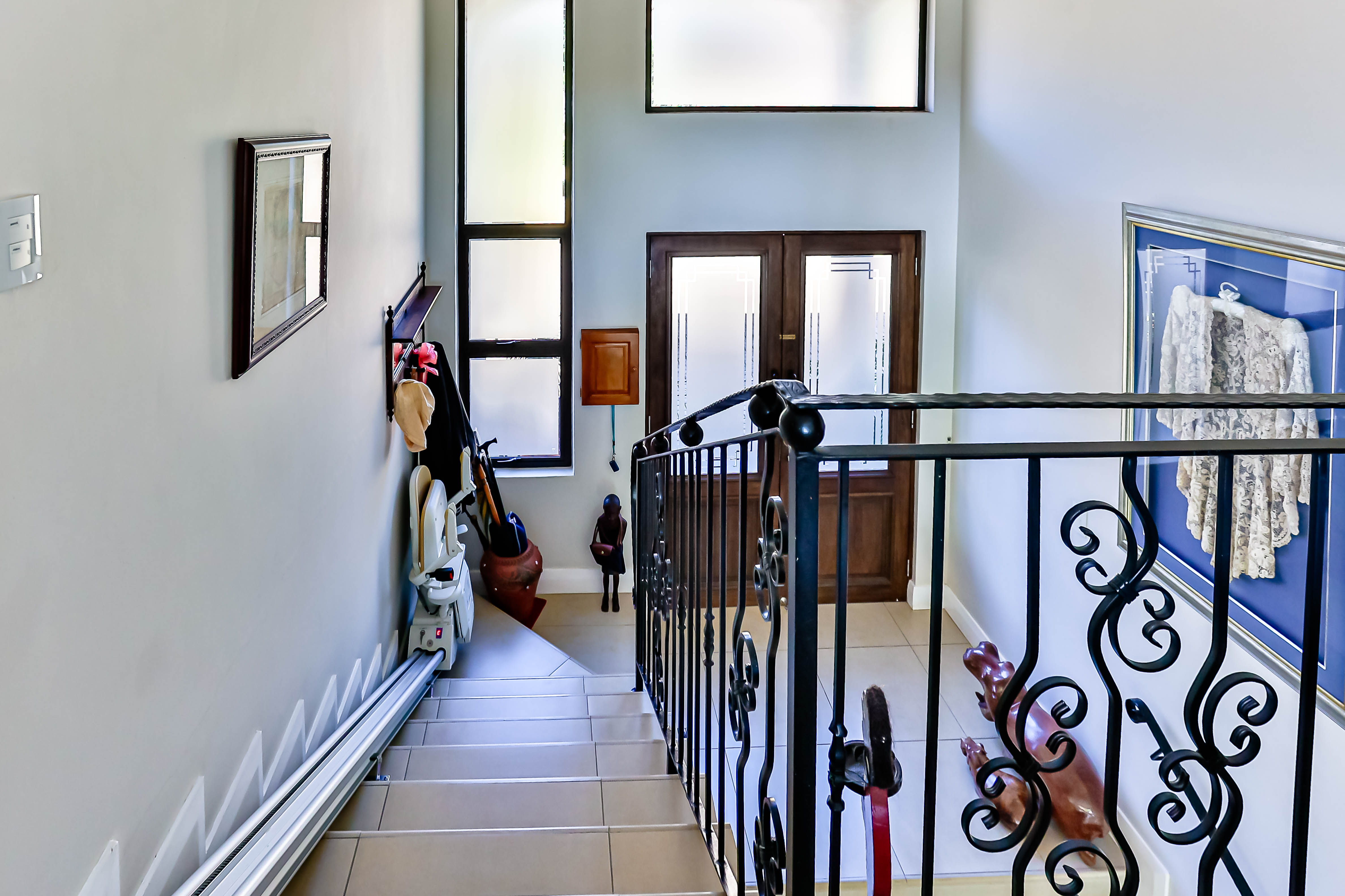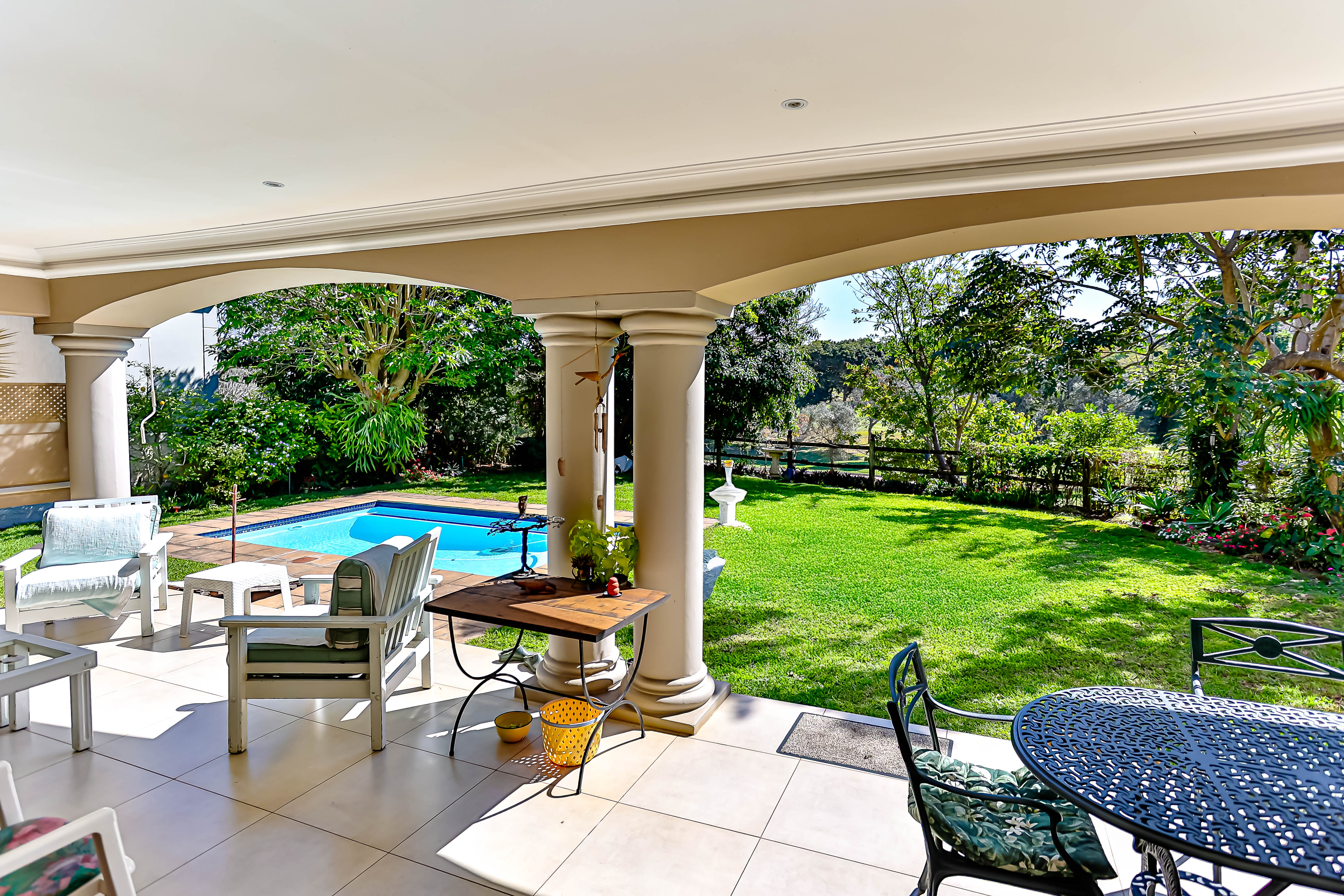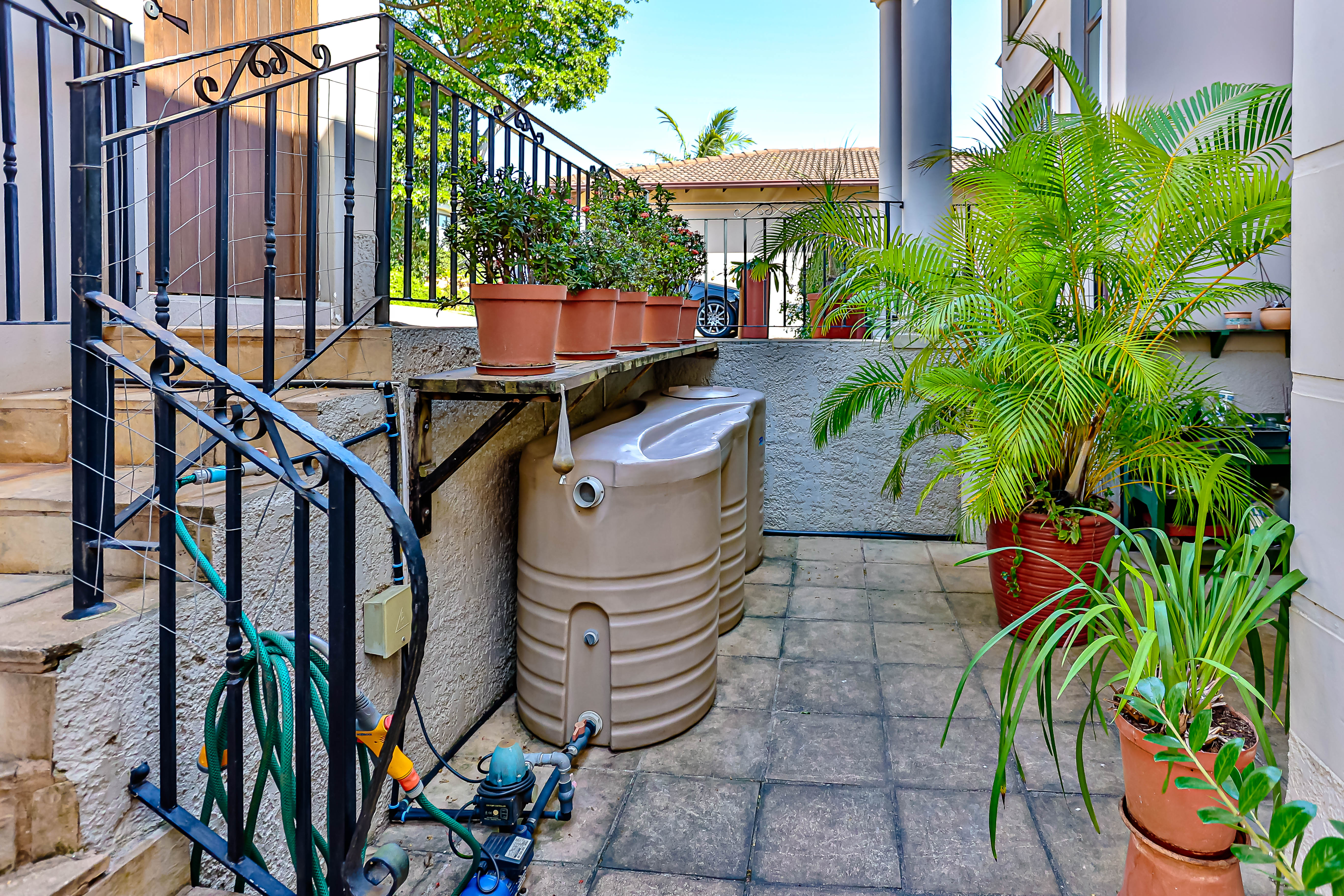 This home further includes a garage with a designated space for a golf cart and additional storage. Notable features include solar panels, a cutting-edge inverter system and two water tanks that facilitate garden irrigation and pool maintenance. Wide driveway for extra guest parking. The Springwood estate is also equipped with a borehole water system.