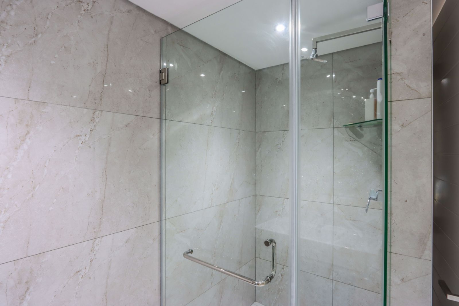 Each bedroom is thoughtfully designed with built-in cupboards and large windows that fill the space with natural light. Bathrooms are sleek and modern, with the main en-suite serving as a private sanctuary. The living and dining areas open onto a balcony with incredible sea views—ideal for relaxation or hosting guests.