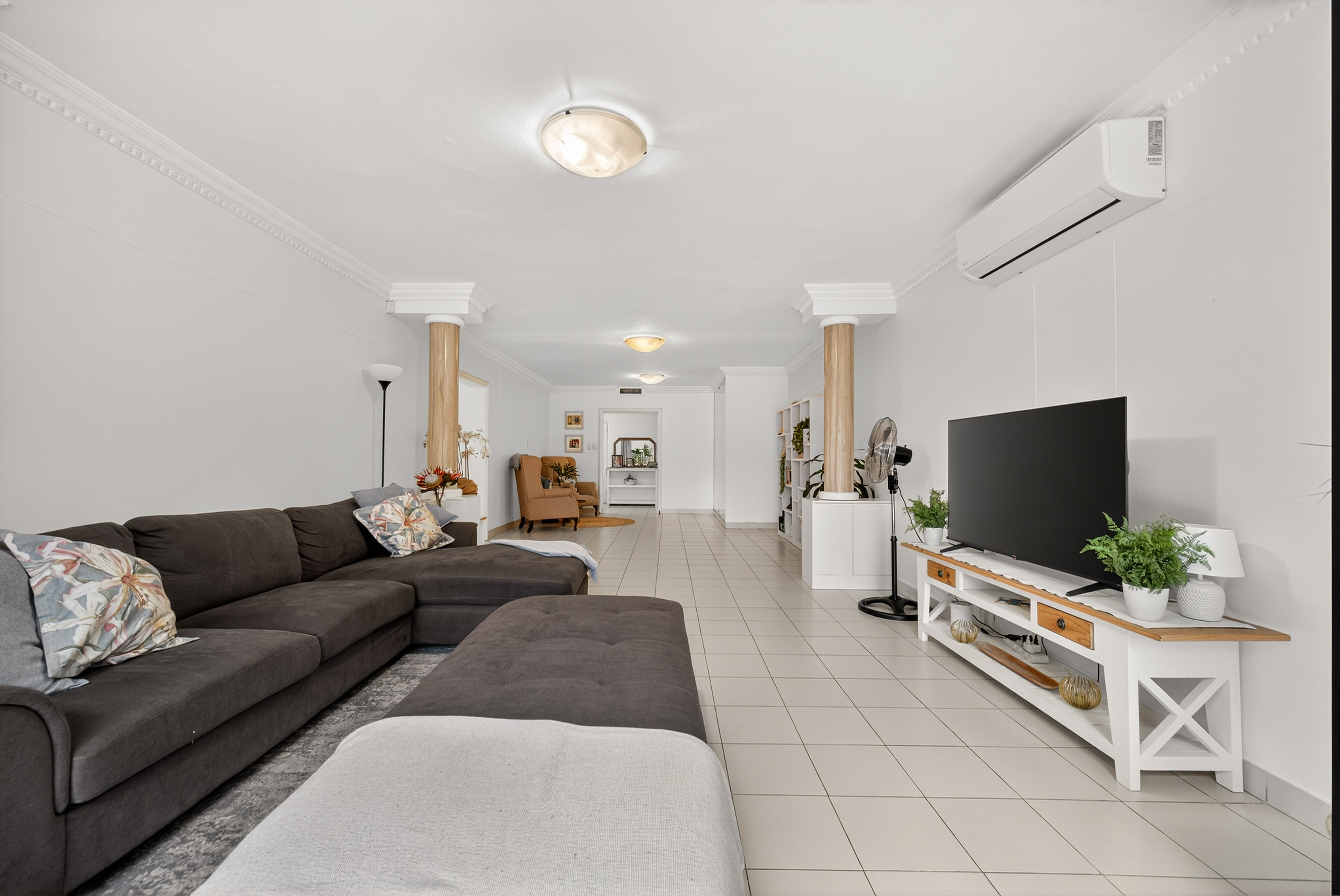The house has lounge and dining areas, a TV lounge and a kitchen with plenty of space for all appliances.