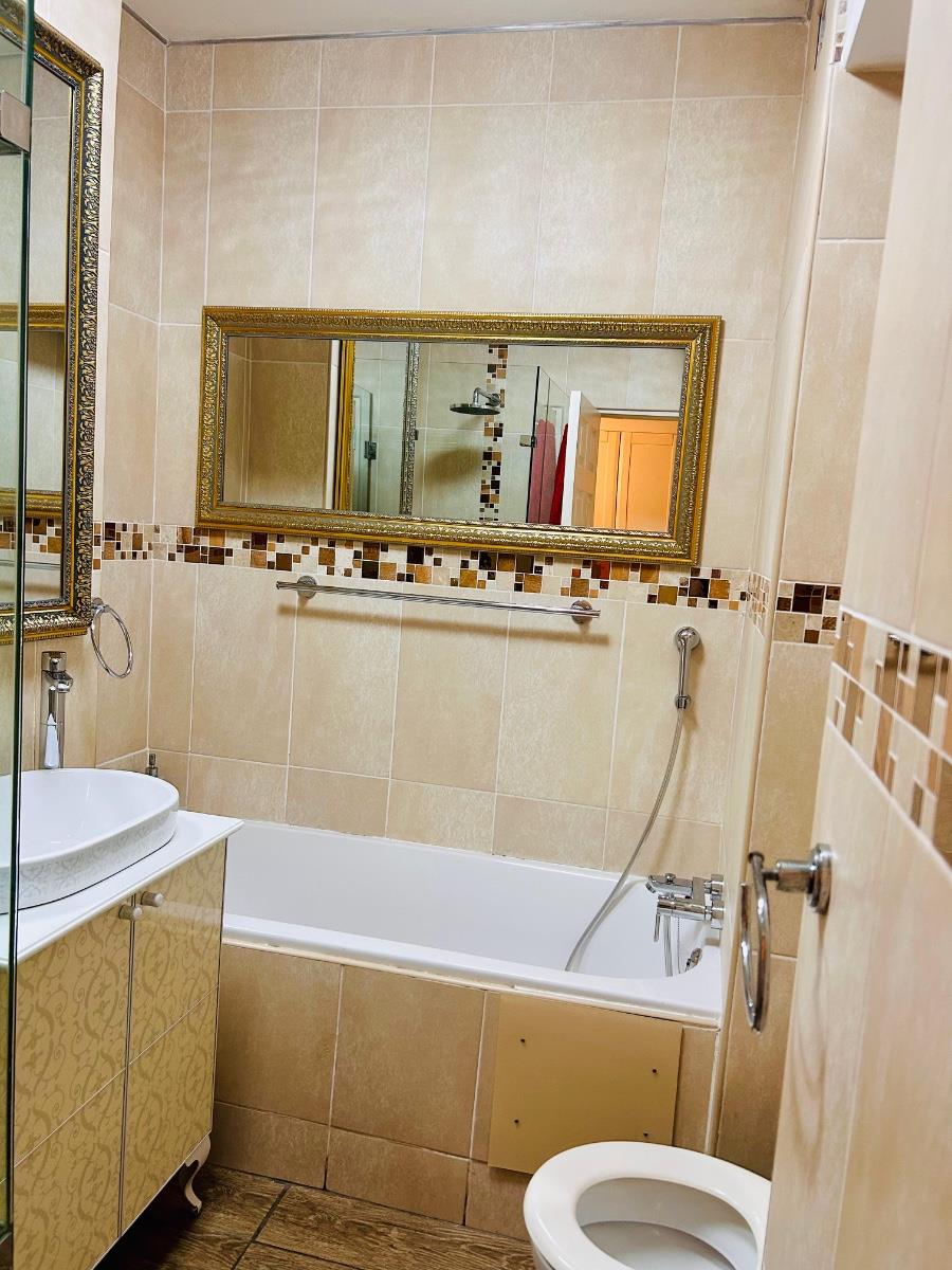 The kitchen is equipped with modern amenities, including an under-counter oven and convenient washing machine connection. Both bedrooms are well-appointed, featuring built-in cupboards and laminated floors, while the main bedroom includes an en-suite bathroom for added privacy. The apartment offers a total of 2 bathrooms, ensuring convenience for both residents and guests.