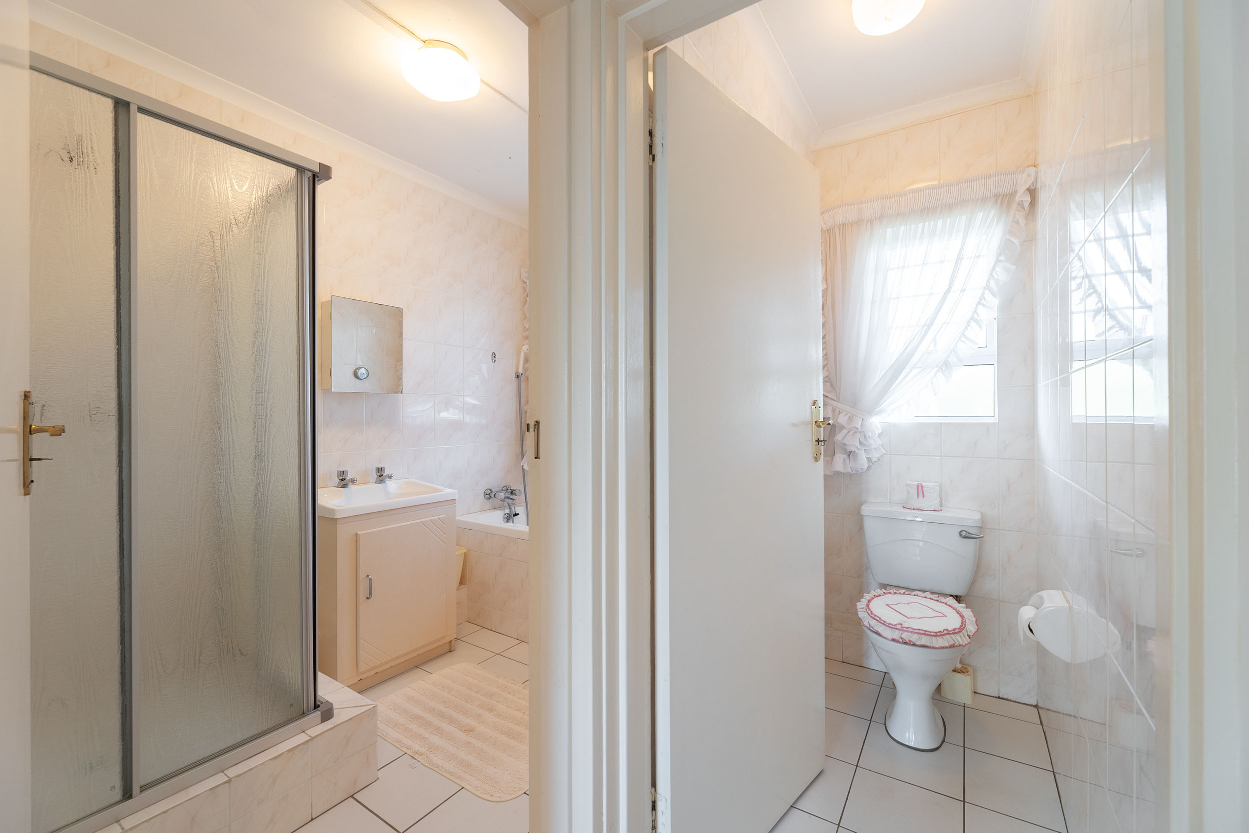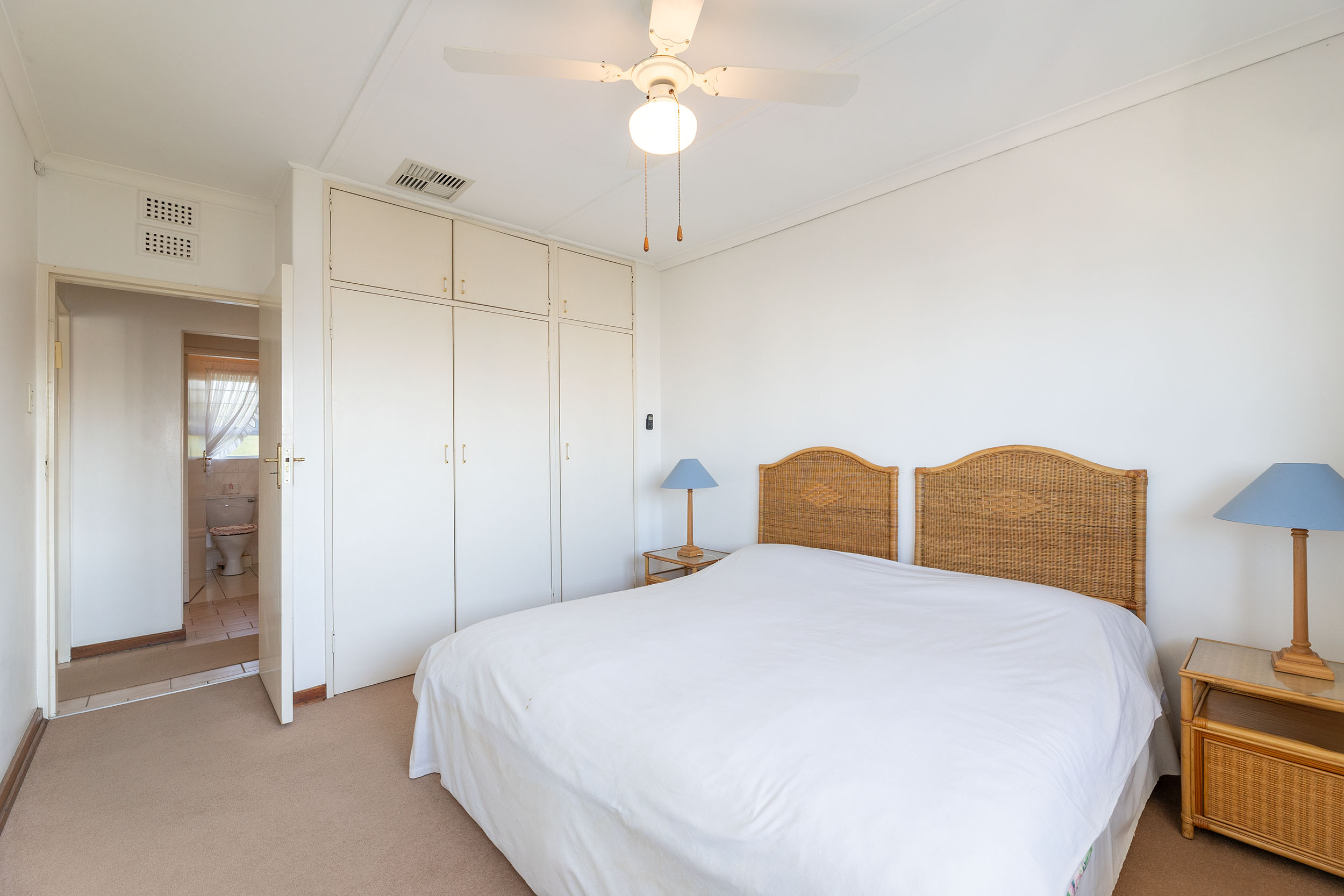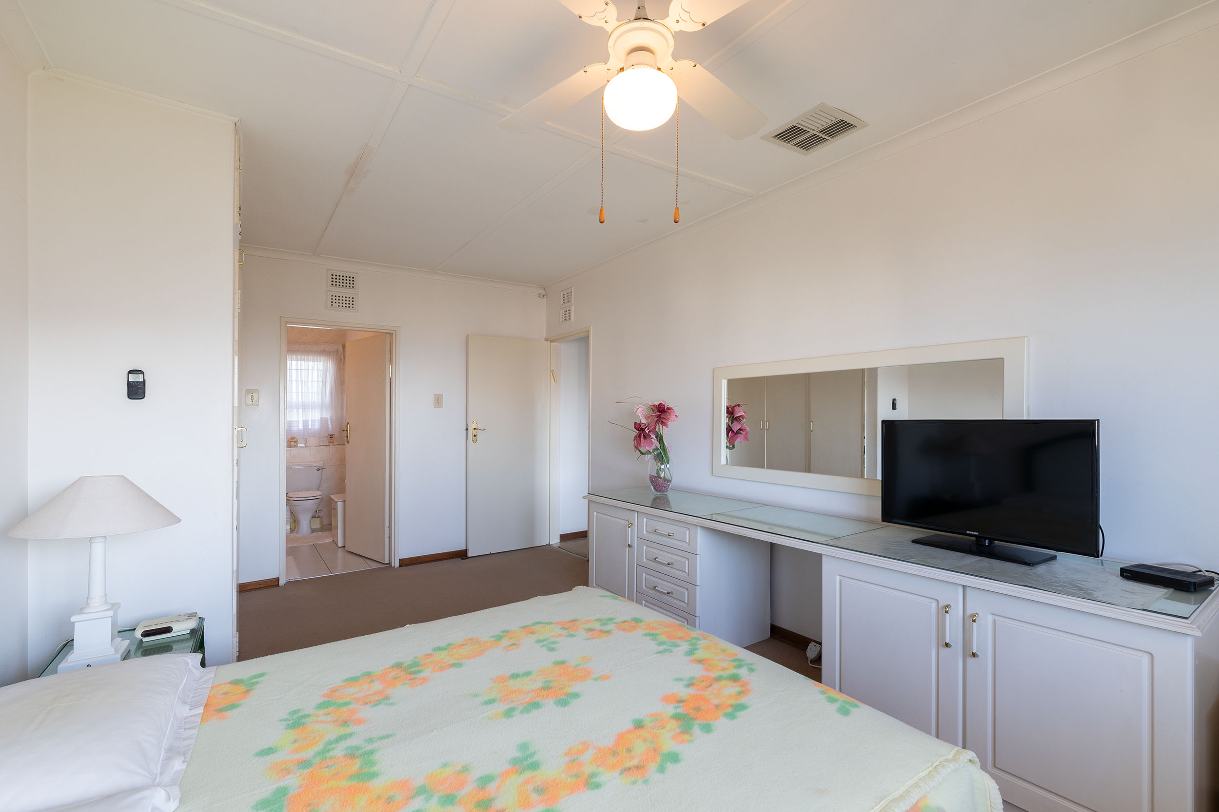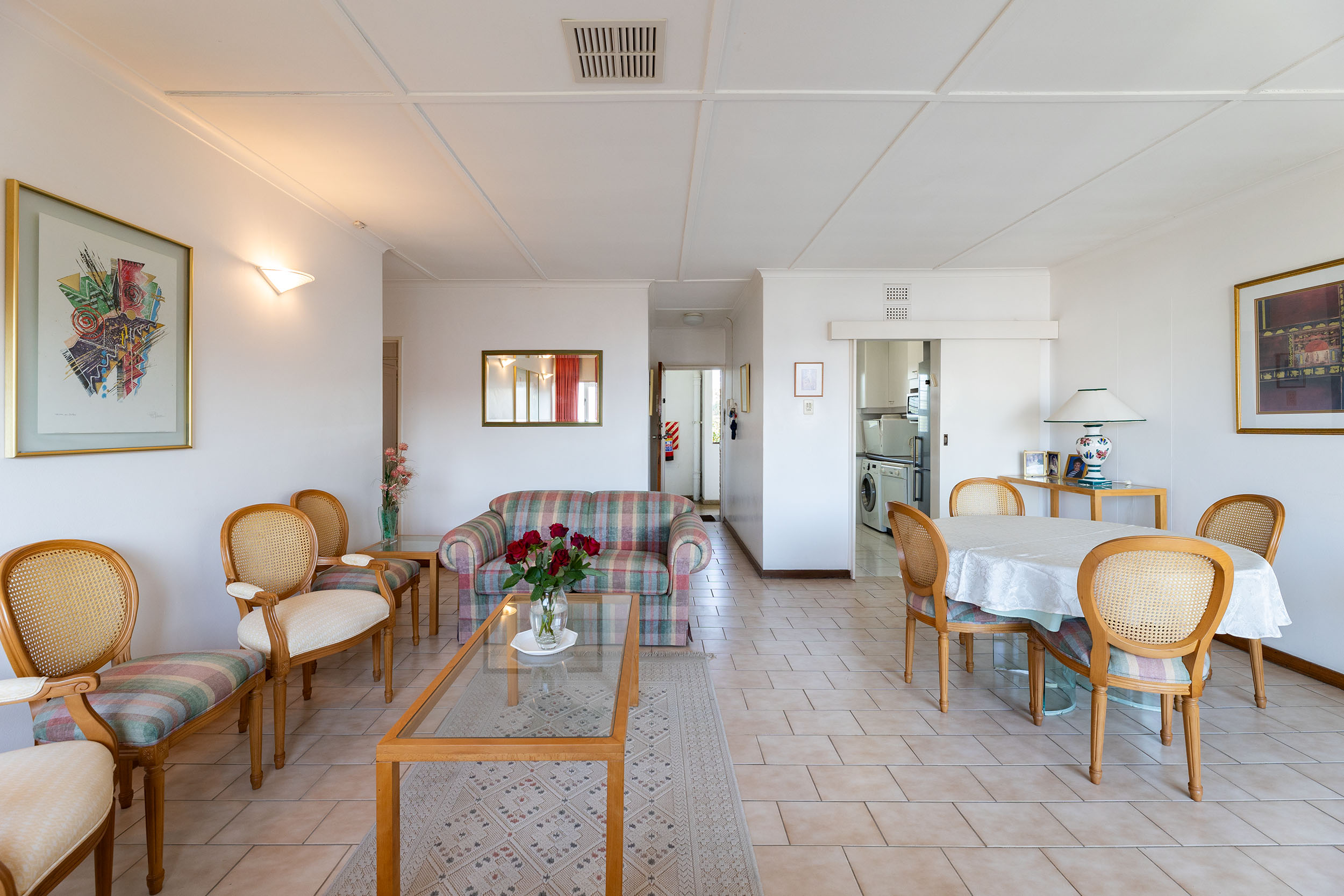The spacious 3 bedrooms are impressive in size and the primary has an en-suite bathroom with a shower over tub. The shared bathroom has both shower and bathtub. This apartment has ducted airconditioning throughout and two geysers! One auto single garage and there are plenty of visitors parking bays.