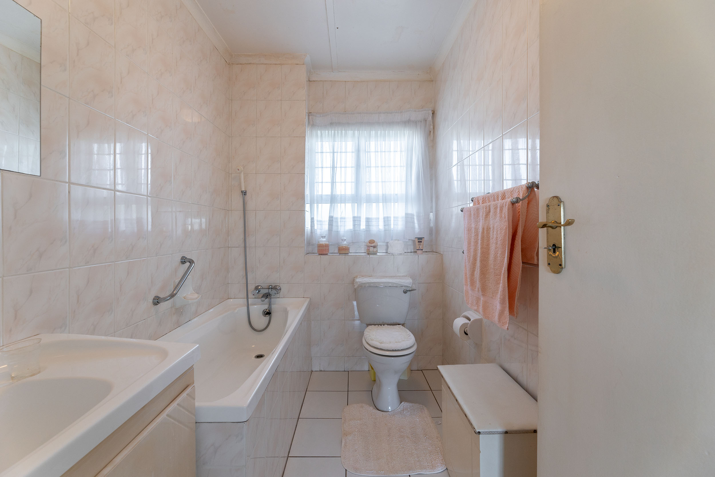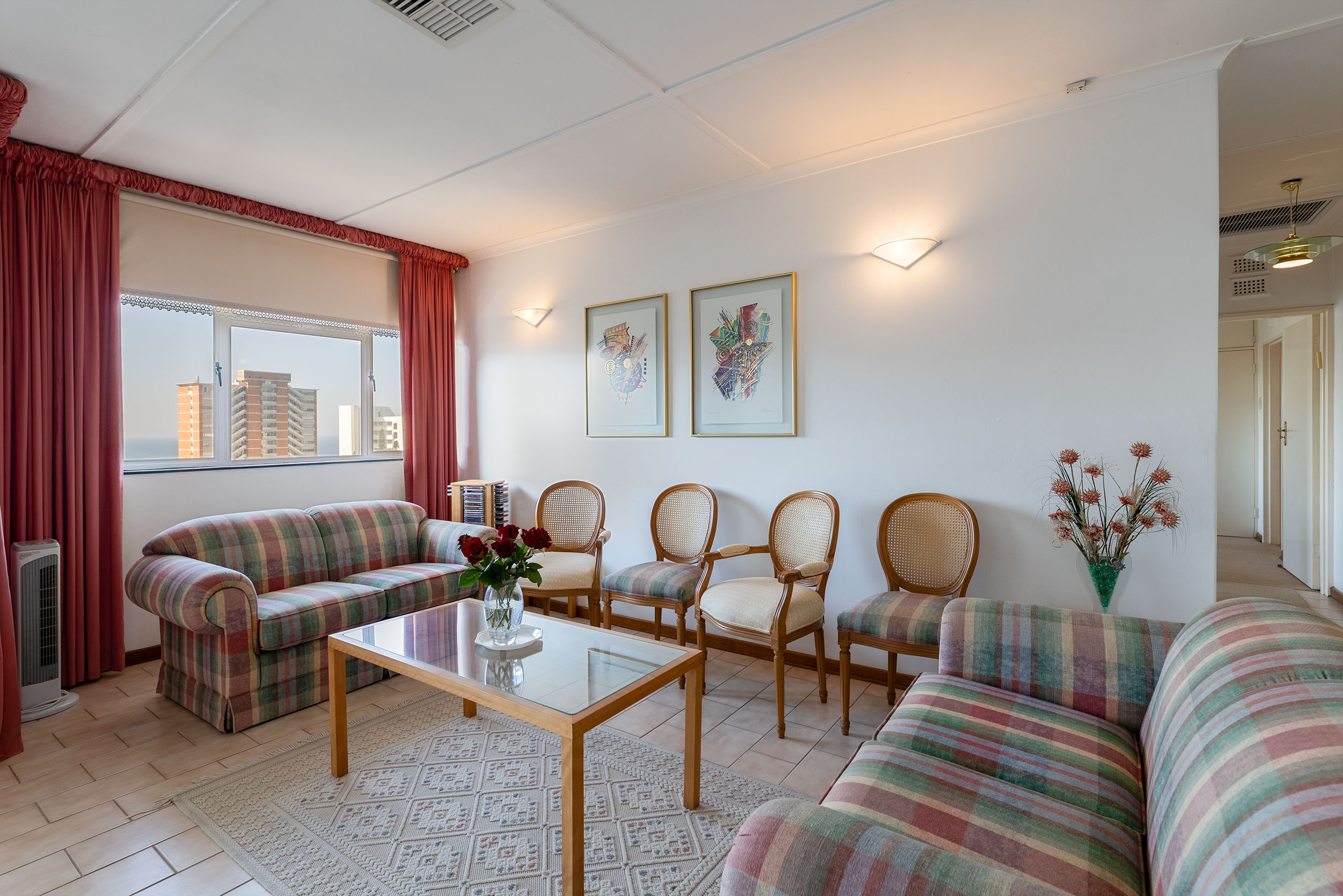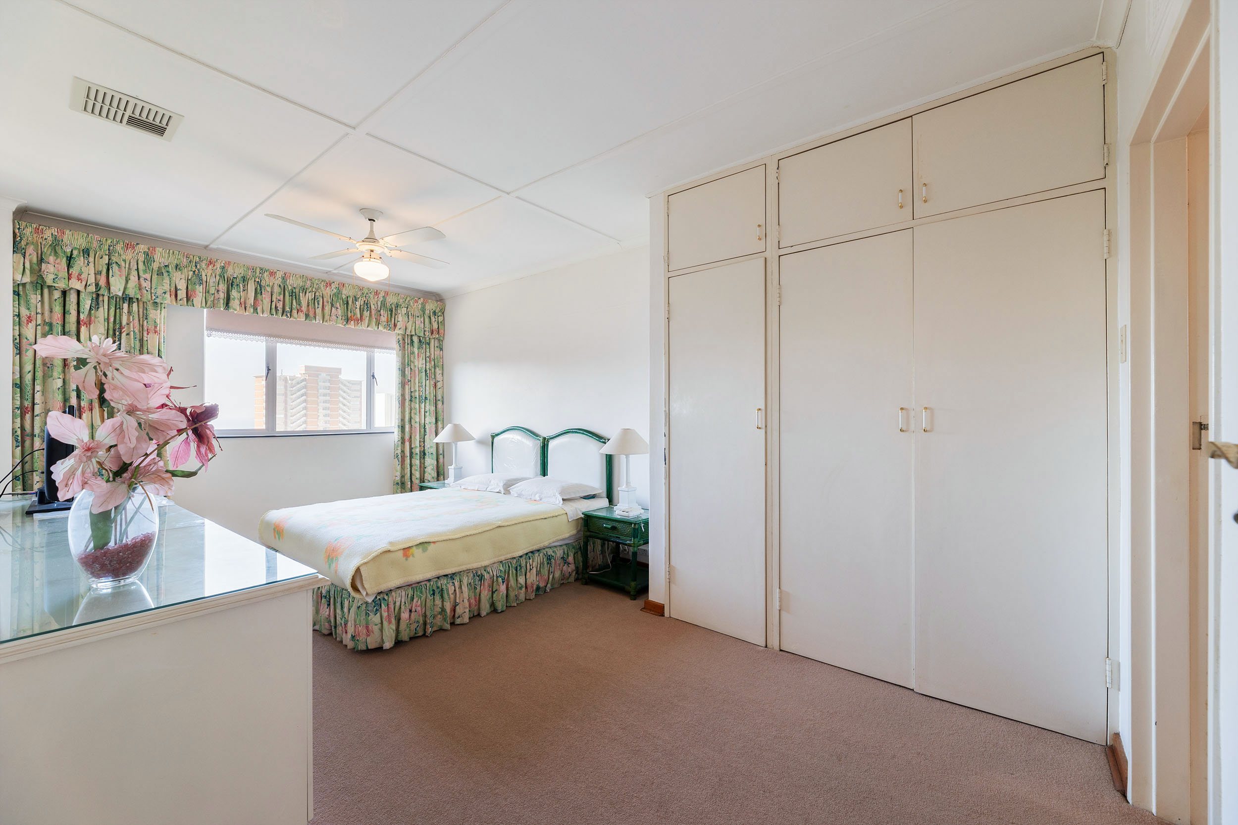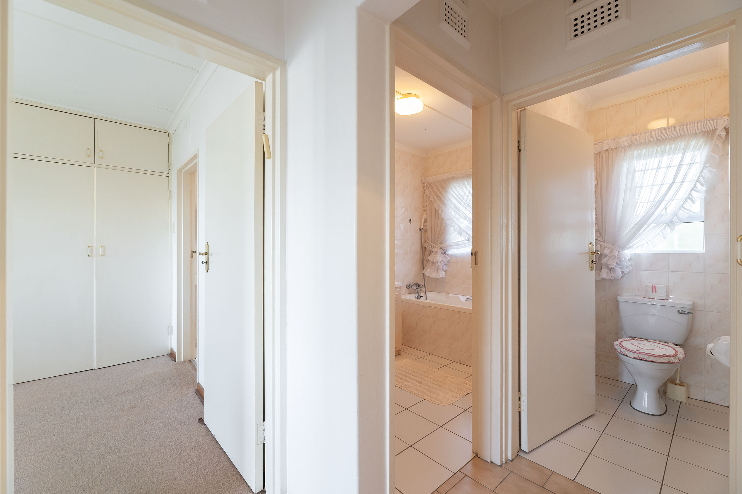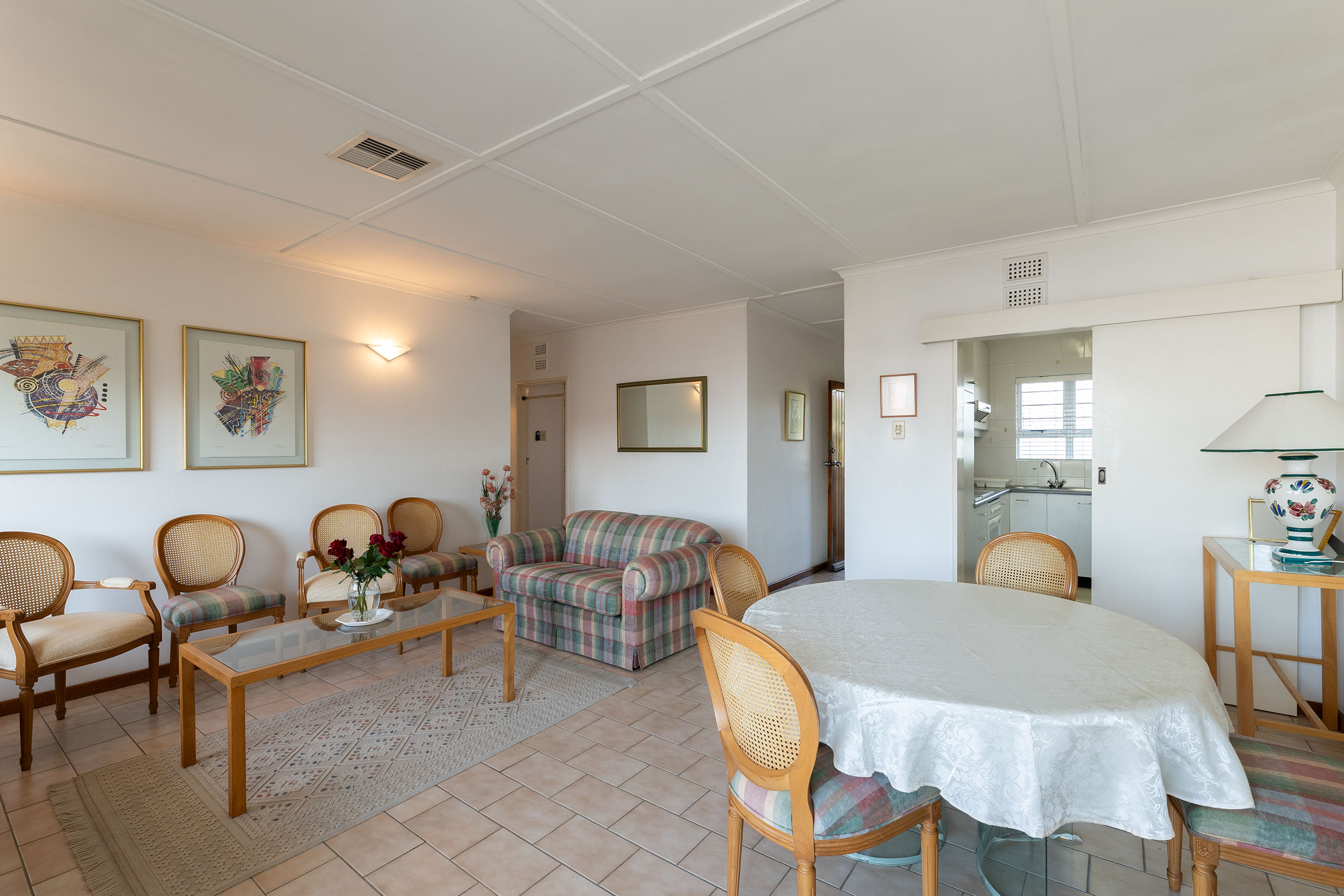 The spacious 3 bedrooms are impressive in size and the primary has an en-suite bathroom with a shower over tub. The shared bathroom has both shower and bathtub. This apartment has ducted airconditioning throughout and two geysers! One auto single garage and there are plenty of visitors parking bays.