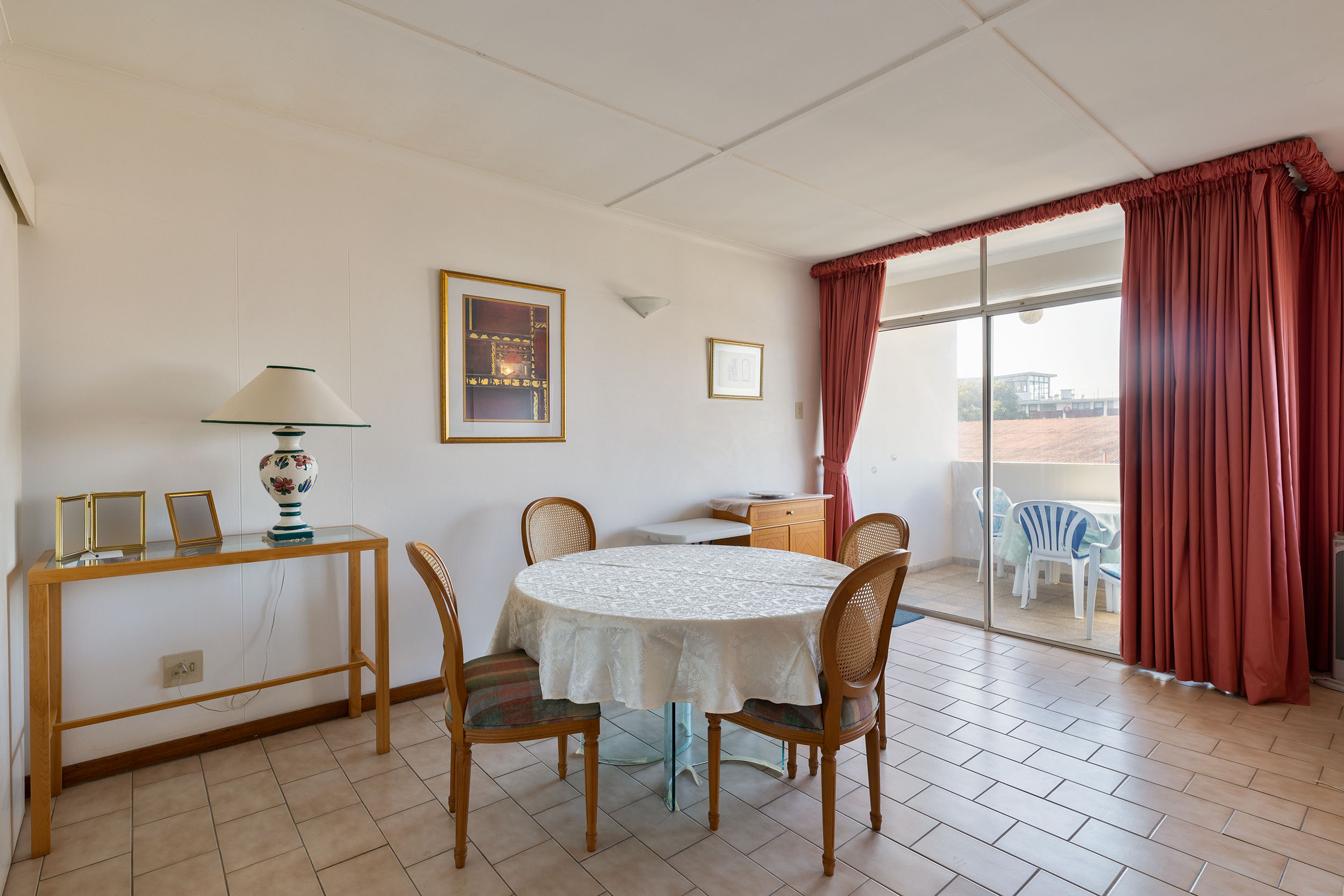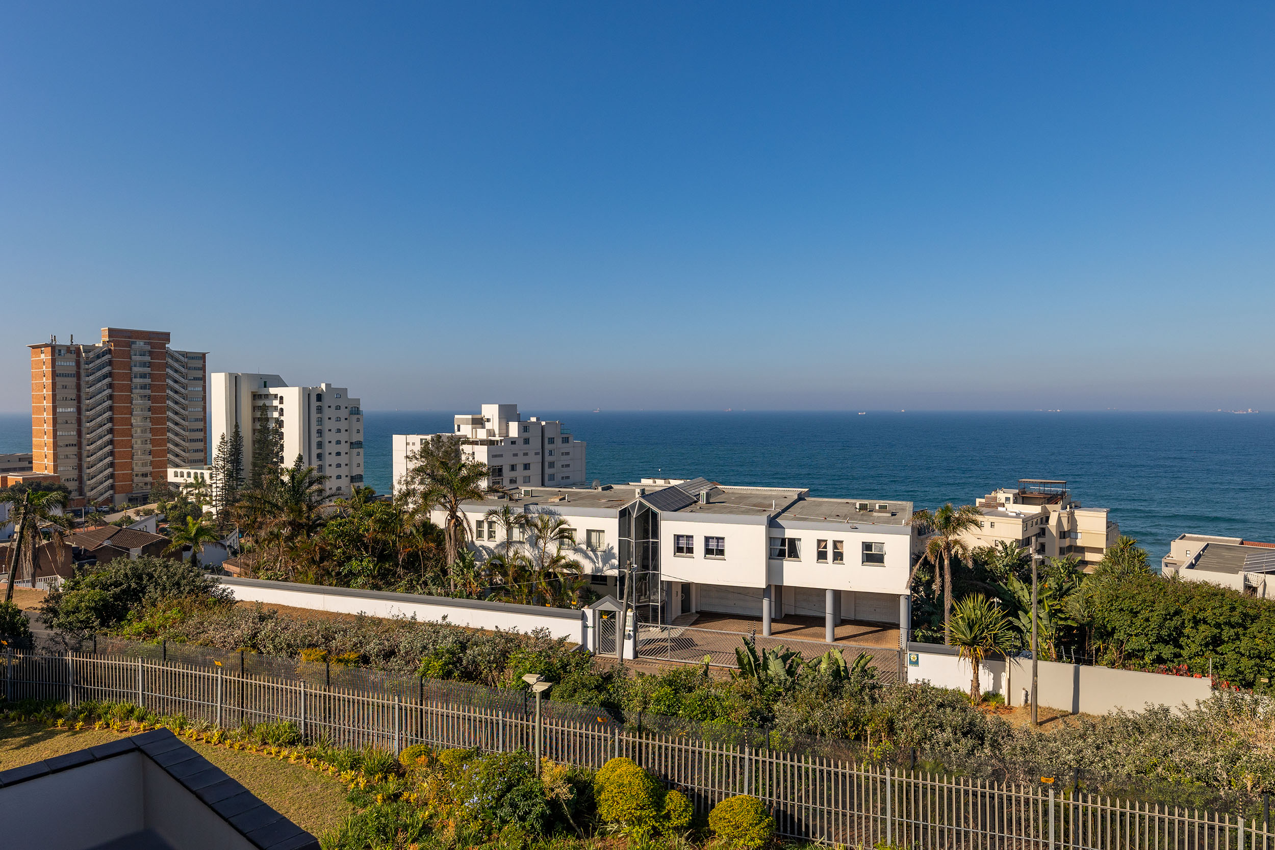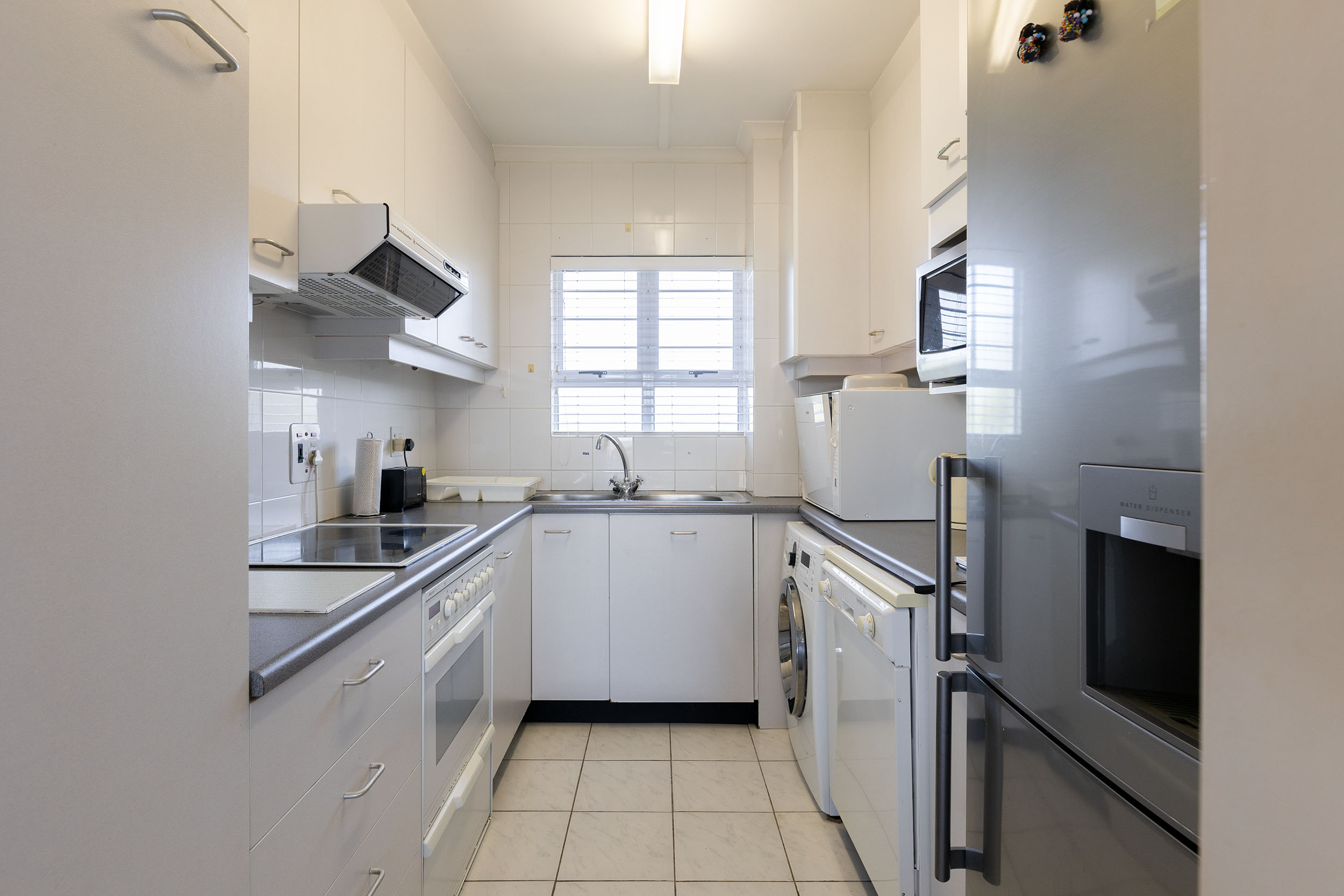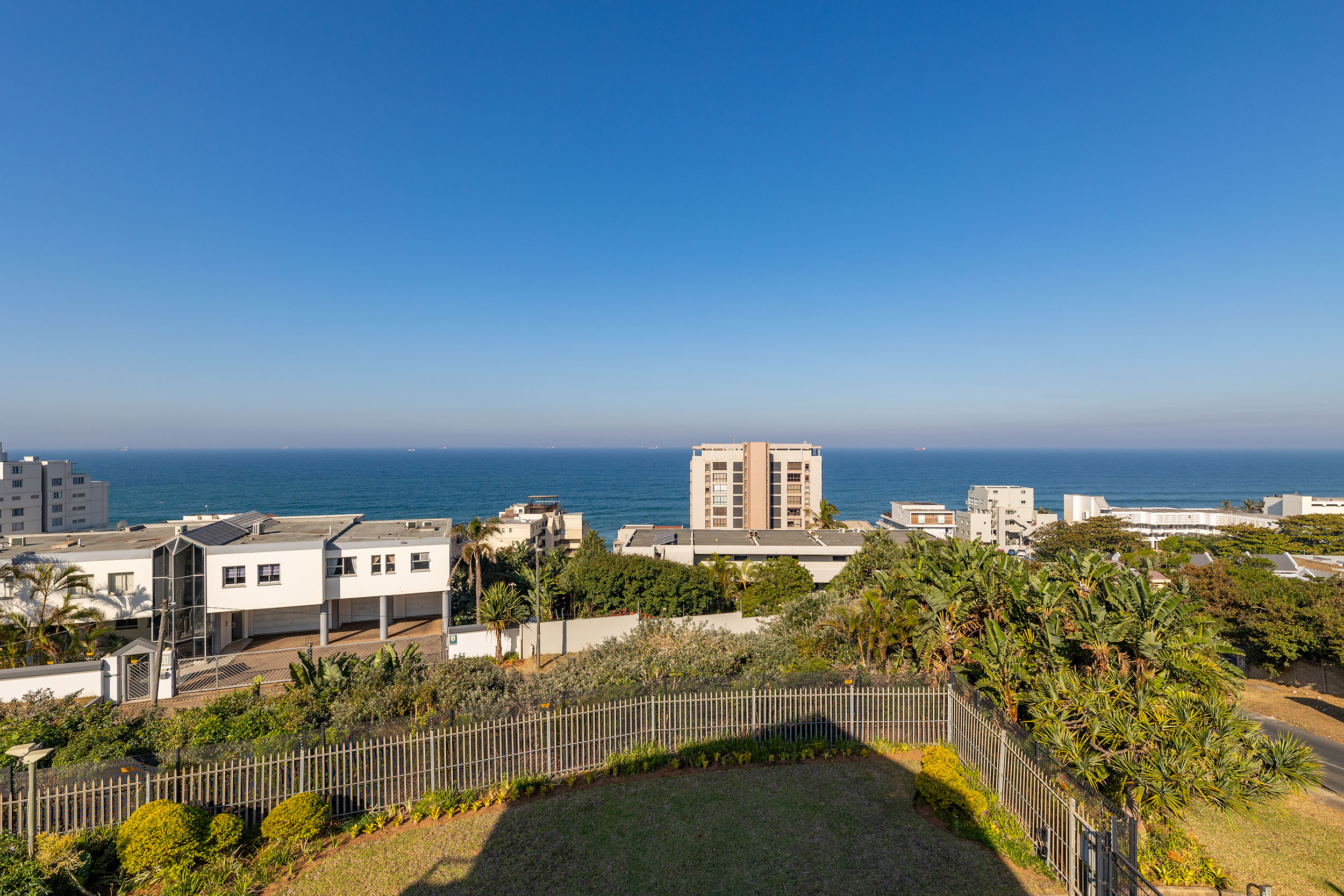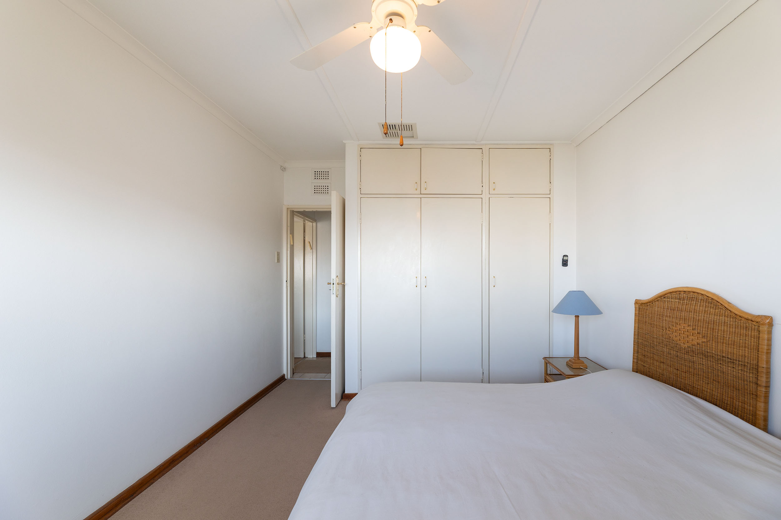 This north facing, sunny apartment is on the top floor with beautiful views of the ocean and near enough that you can hear the waves washing on the shore. Open plan living leads out to the balcony, which is an ideal spot for morning tea or refreshing sundowners at the end of the day! The kitchen has plenty cupboards, a double sink, plumbing for both washing machine and dishwasher and has an electric stove top and oven.