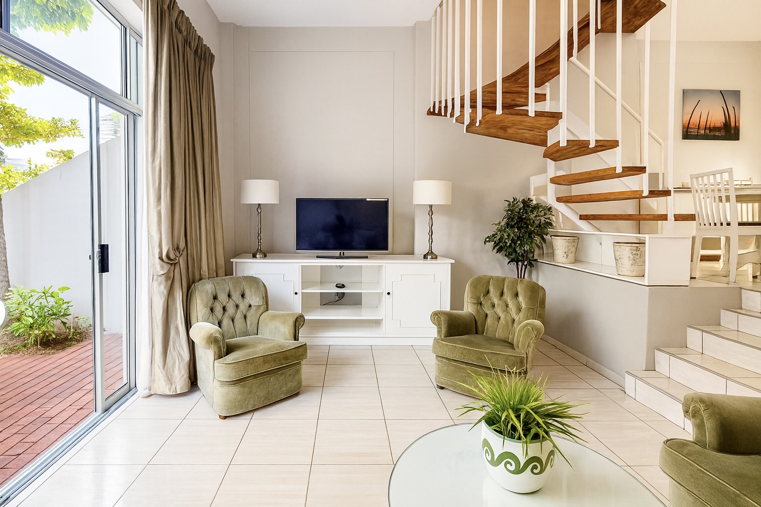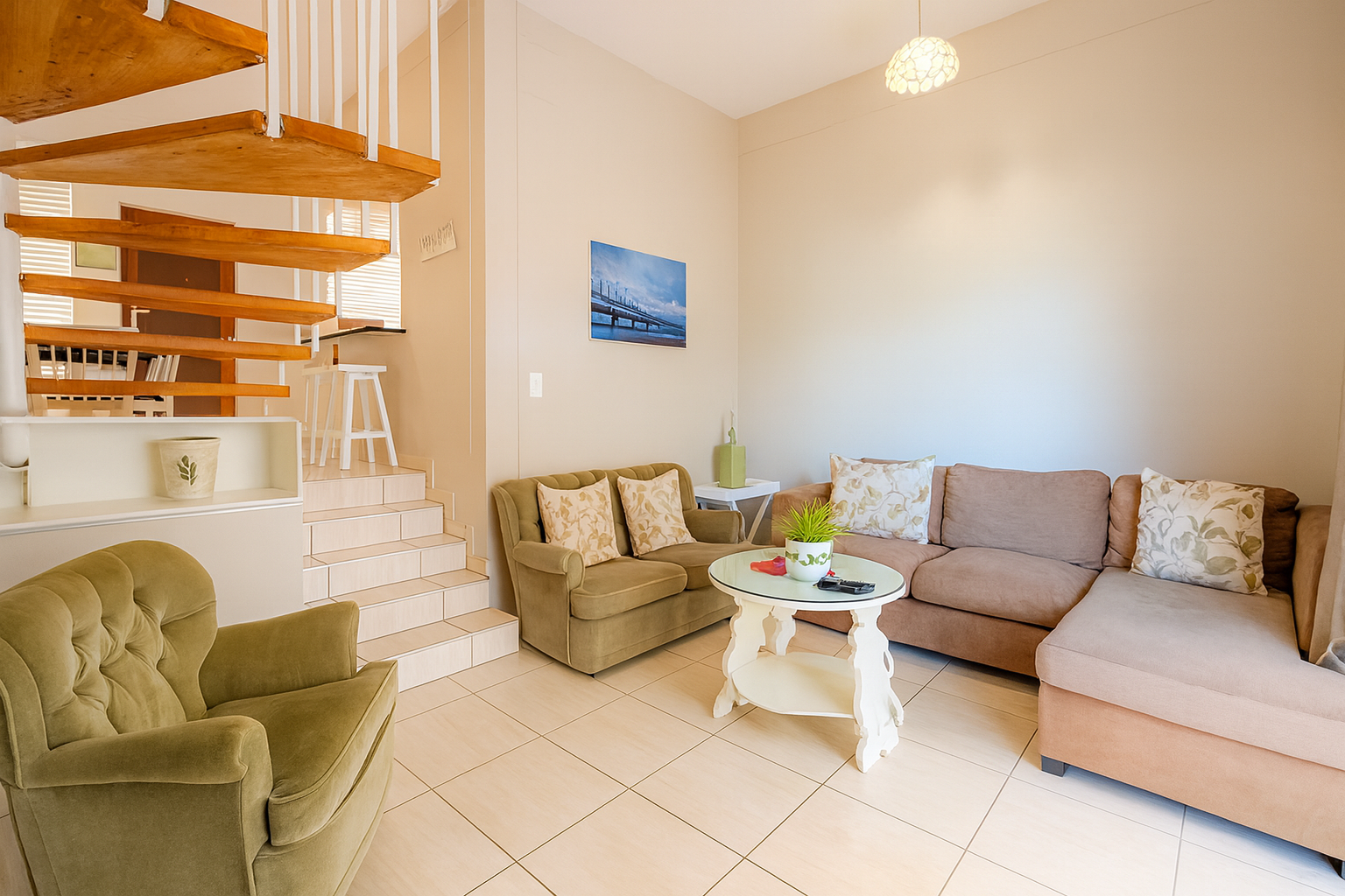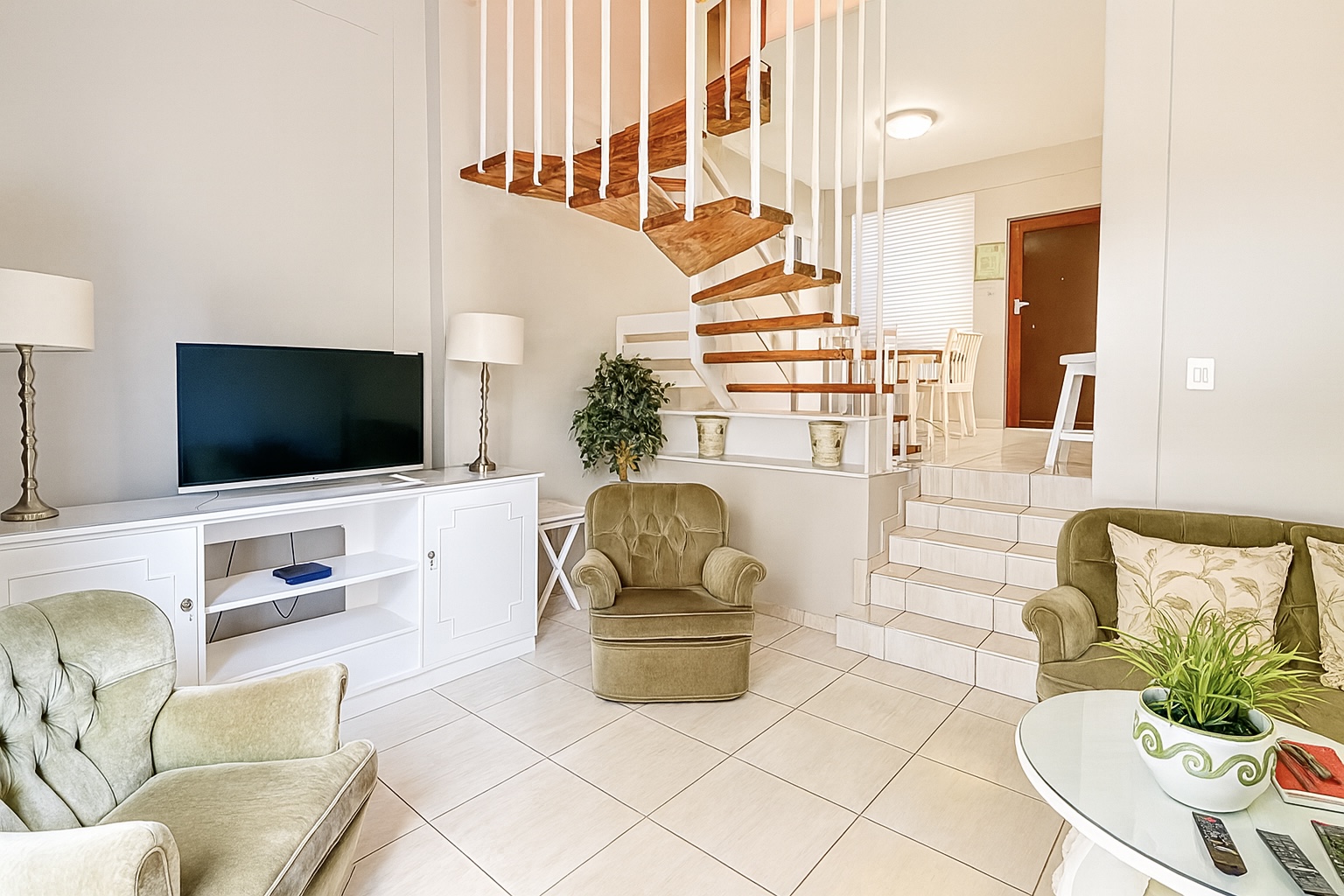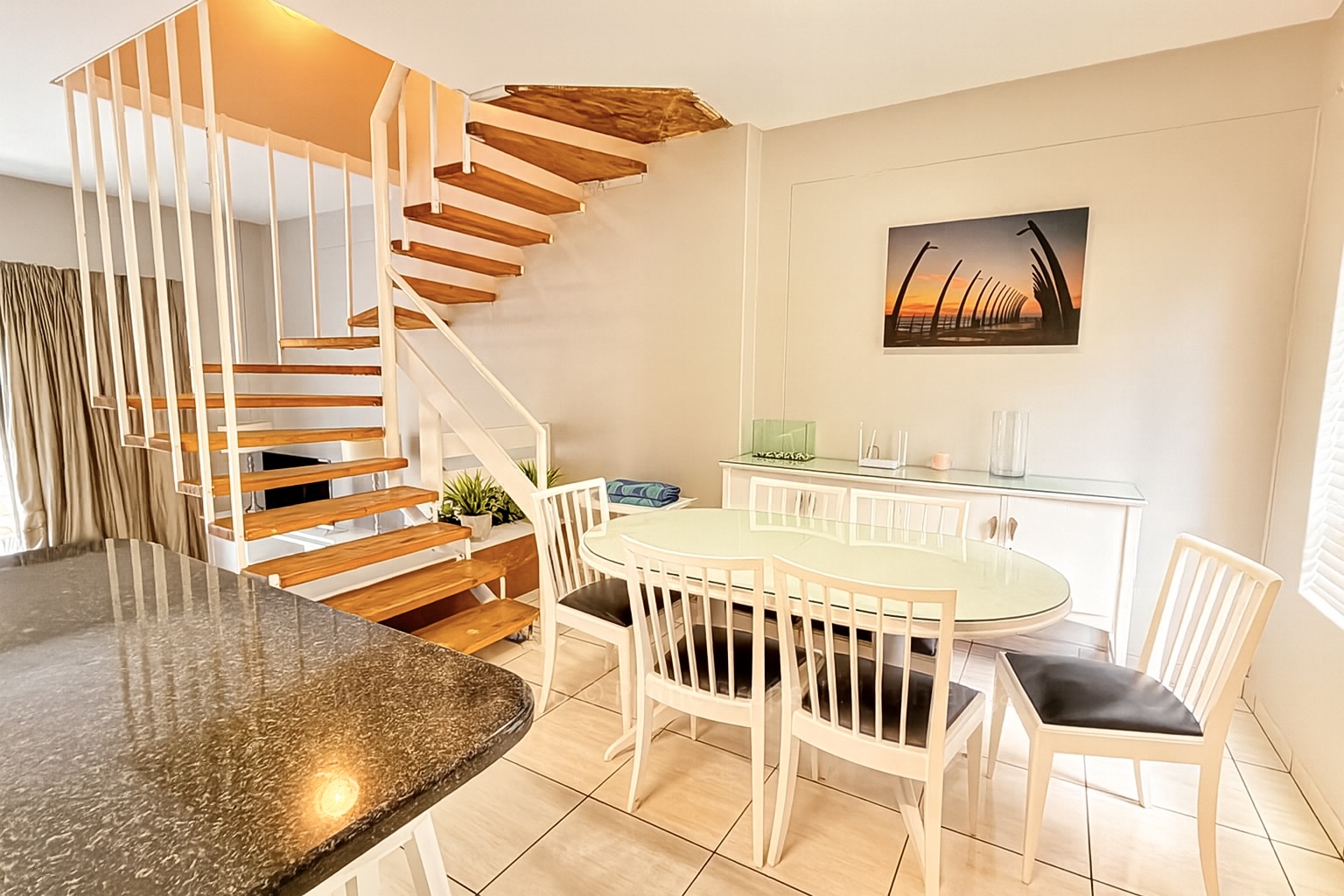 This two-bedroom, two-story apartment is set on the ground floor of a secure complex in the heart of Umhlanga Rocks. It comes with a private ground-floor patio that’s great for outdoor dining, relaxing, or entertaining.