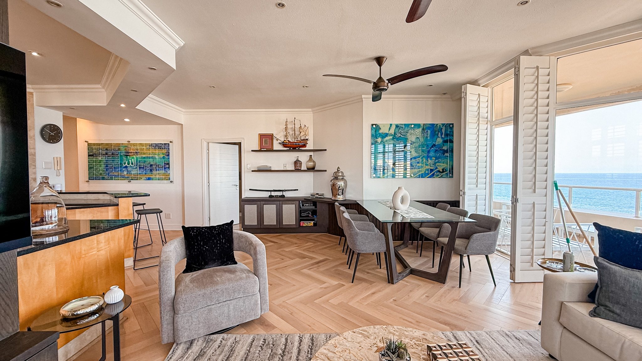 From the moment you step inside, the atmosphere feels different — airy, expansive, and deliberately understated, letting the ocean take centre stage. Walls of glass open onto a broad balcony where endless sea views become part of daily life. Morning coffee, sundowners, quiet reflection — it all happens here.