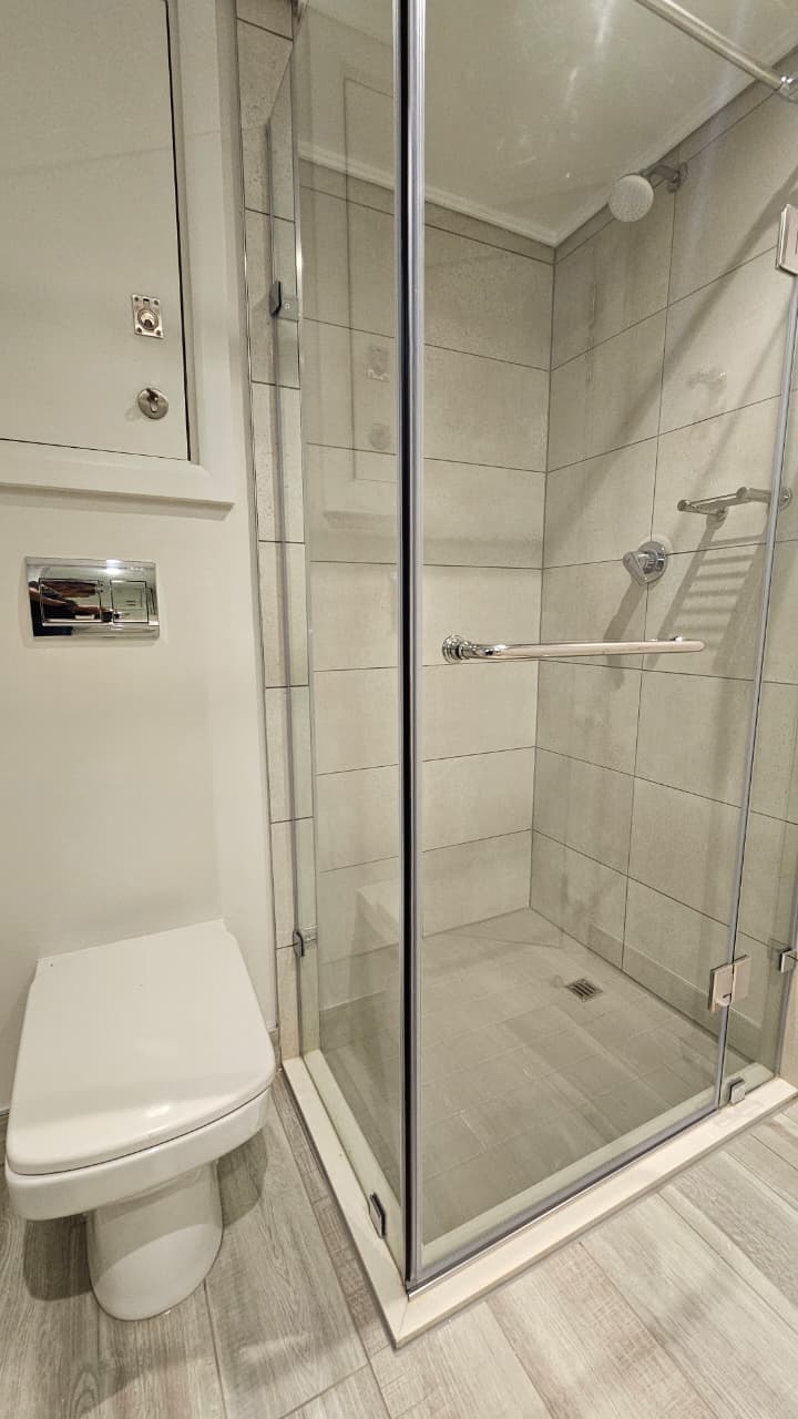 Sleek, stylish bathroom with contemporary fittings and finishes.