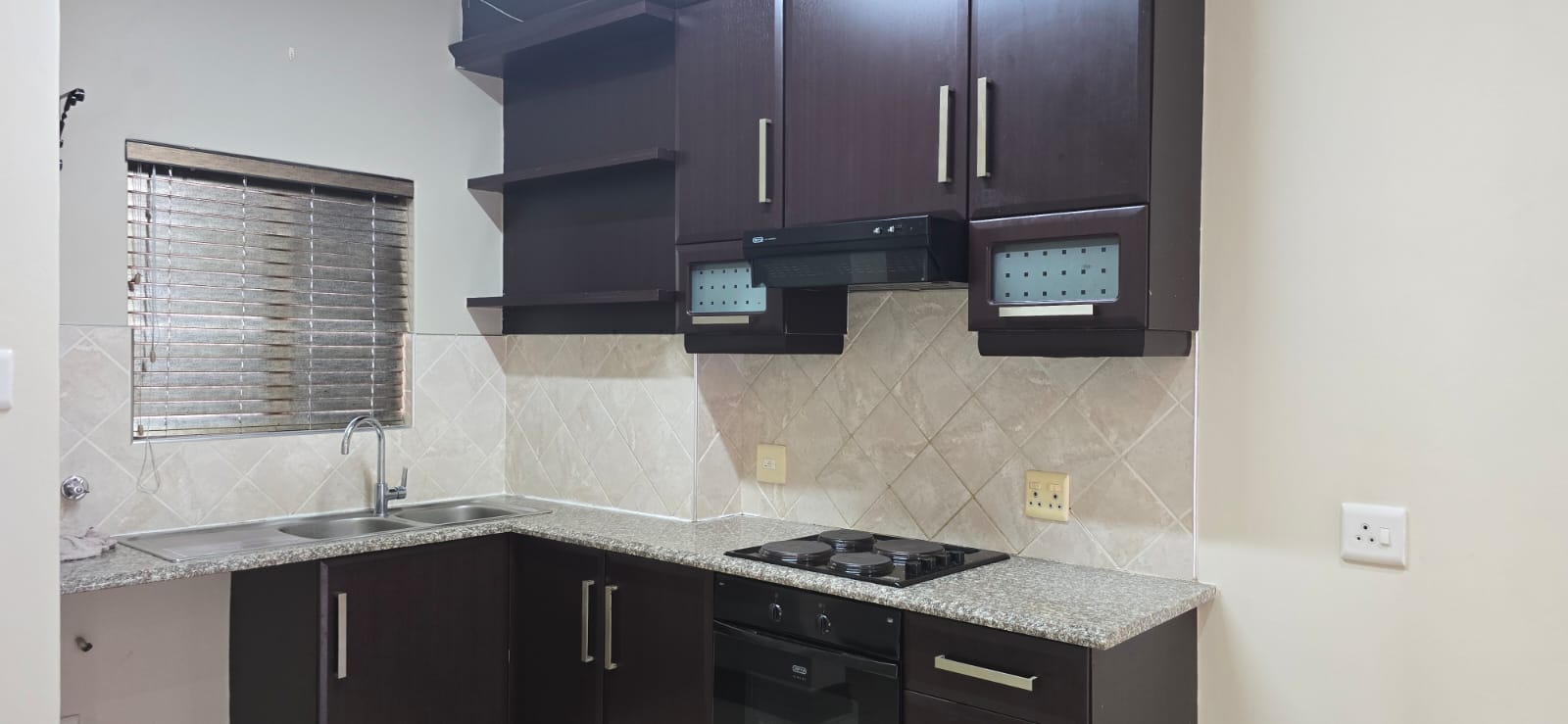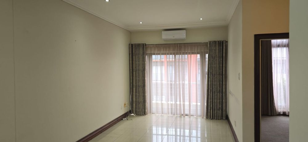 An open-plan living and dining space creates a welcoming atmosphere, with large windows that fill the apartment with natural light.